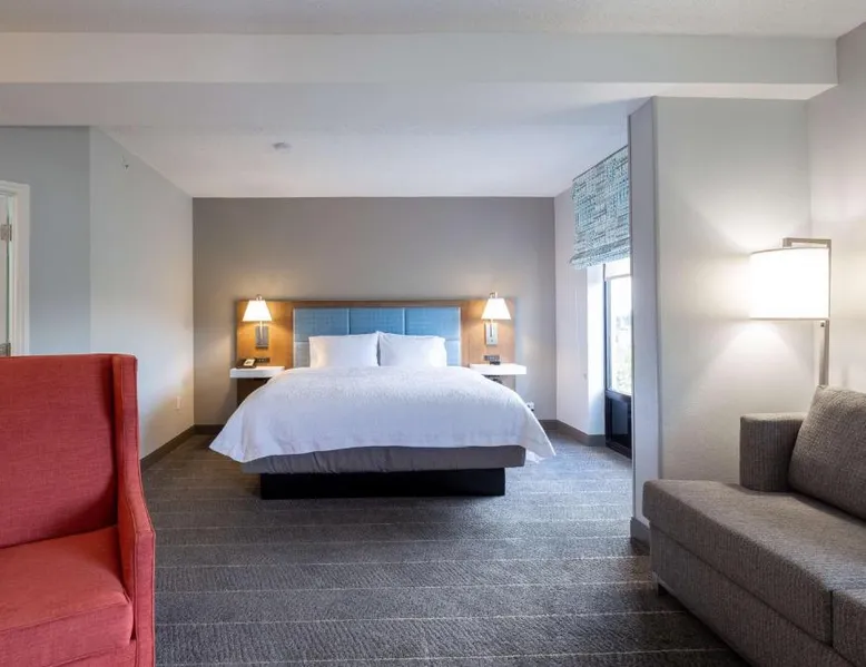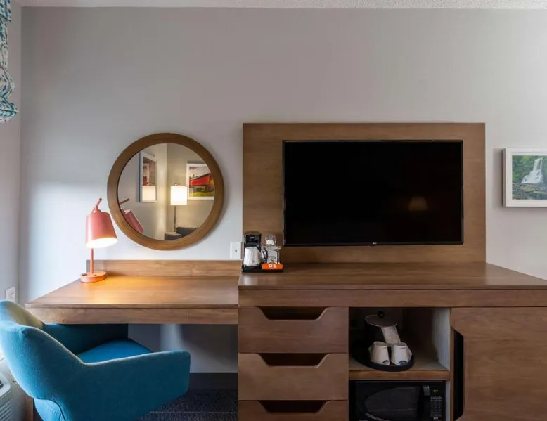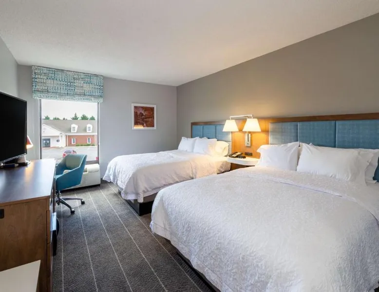 Comfortable Accommodations: Hampton Inn Christiansburg/Blacksburg in Christiansburg offers family rooms with private bathrooms, work desks, and free WiFi. Each room includes a tea and coffee maker, hairdryer, refrigerator, microwave, shower, and TV. Leisure Facilities: Guests can enjoy a fitness center, sun terrace, and seasonal outdoor swimming pool. Additional amenities include an outdoor fireplace, fitness room, elevator, 24-hour front desk, minimarket, and sofa bed. Dining Experience: A buffet breakfast is served daily, featuring warm dishes, fresh pastries, and juice. Private check-in and check-out services ensure a smooth arrival and departure. Location and Attractions: Located 33 mi from Roanoke Airport, the hotel is near Lane Stadium (5.6 mi), English Field (6.2 mi), and Virginia Tech (6.8 mi). Other attractions include Radford University (11 mi) and Women’s Softball Field (5.6 mi). This triple room features a tea and coffee maker, heating and a flat-screen TV. The unit offers 1 bed.