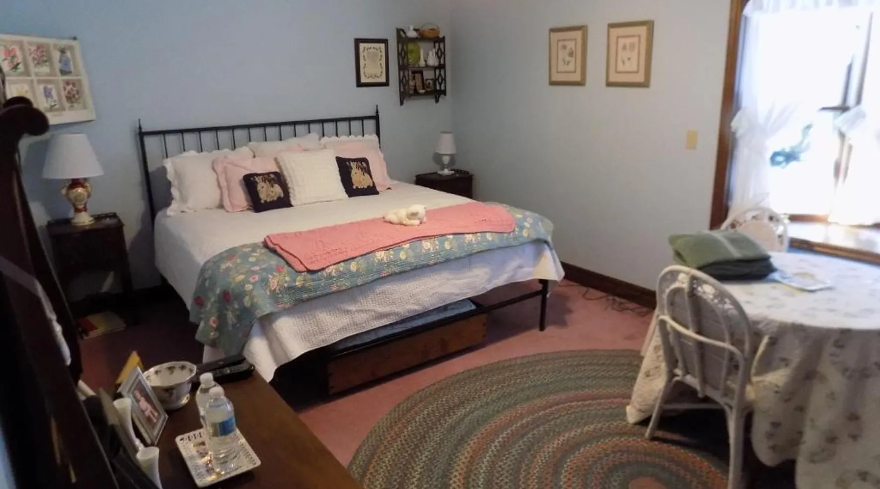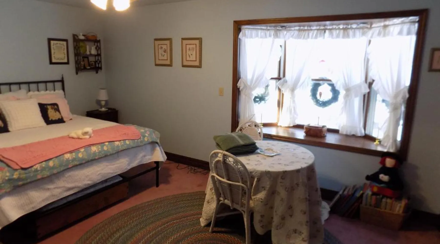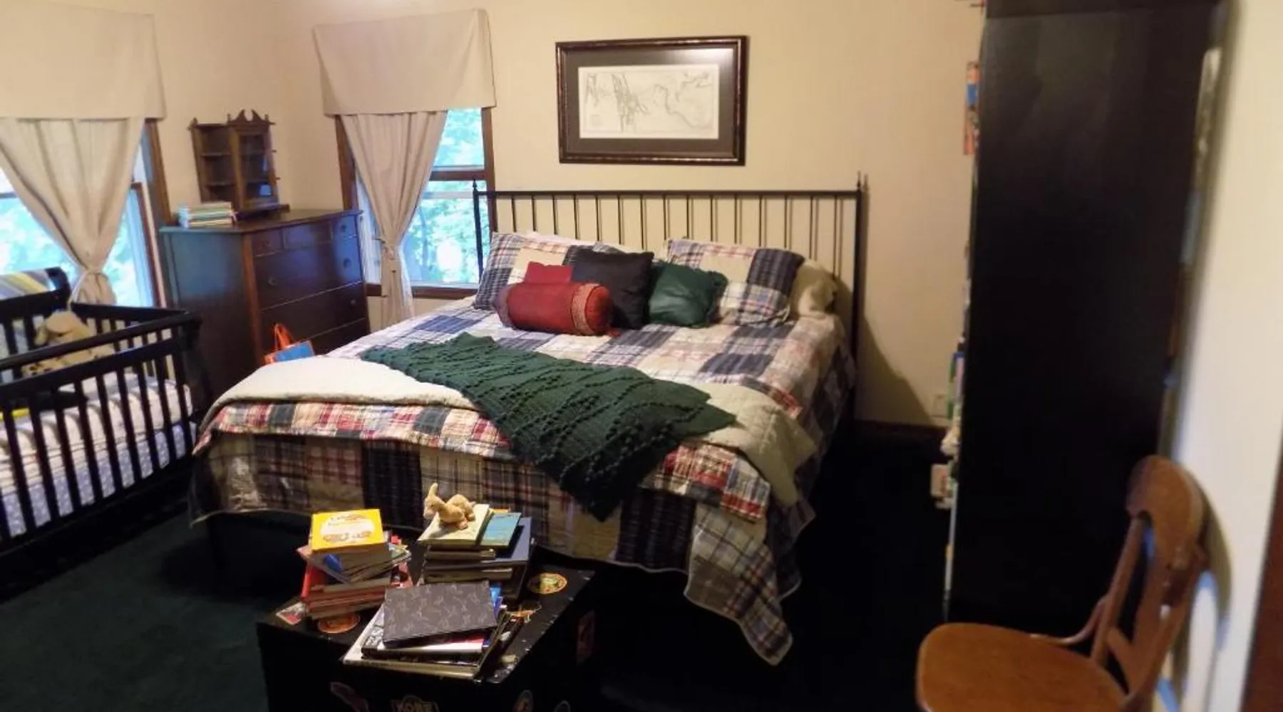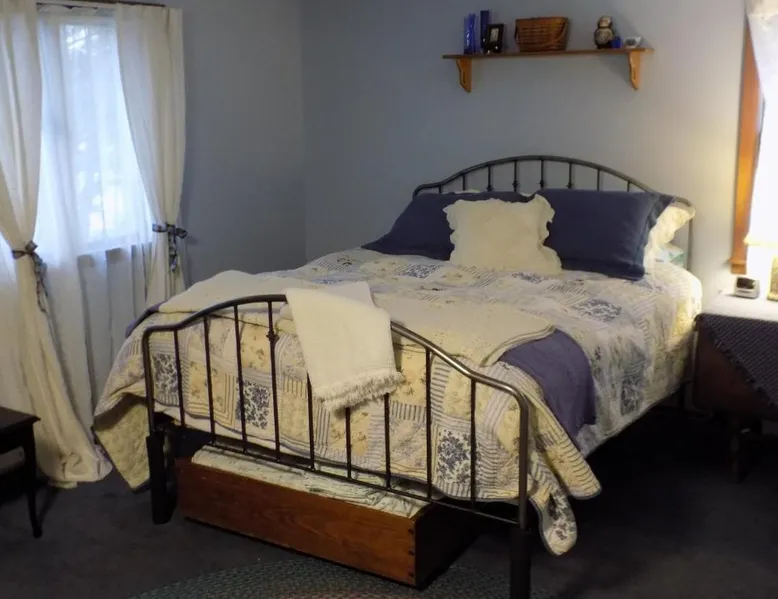 Beachfront Location: StoneWall House in Lake Elmo offers a private beach area and beachfront access. Guests can relax on the sun terrace or in the garden, enjoying stunning lake views. Comfortable Accommodations: The homestay features family rooms with private bathrooms, air-conditioning, and free WiFi. Additional amenities include a lounge, outdoor fireplace, and outdoor seating areas. Local Attractions: Located 19 mi from Minneapolis-Saint Paul International Airport, StoneWall House is near Marcus Oakdale Cinema (2.2 mi) and Lake Elmo Park Reserve (6.8 mi). An ice-skating rink is also nearby. Guest Favorites: Guests highly rate the lakeside location, scenic views, and friendly host. Activities such as fishing, skiing, and hiking are available. This is a room with a queen bed with single bed trundle underneath the bed.