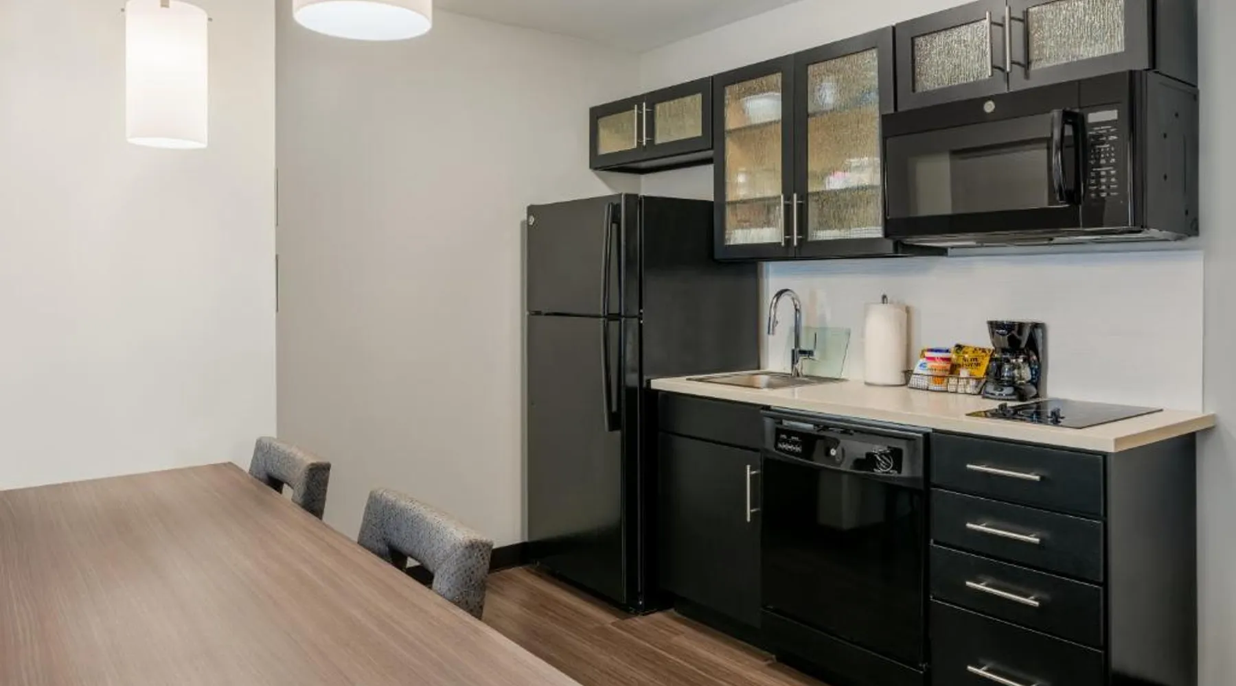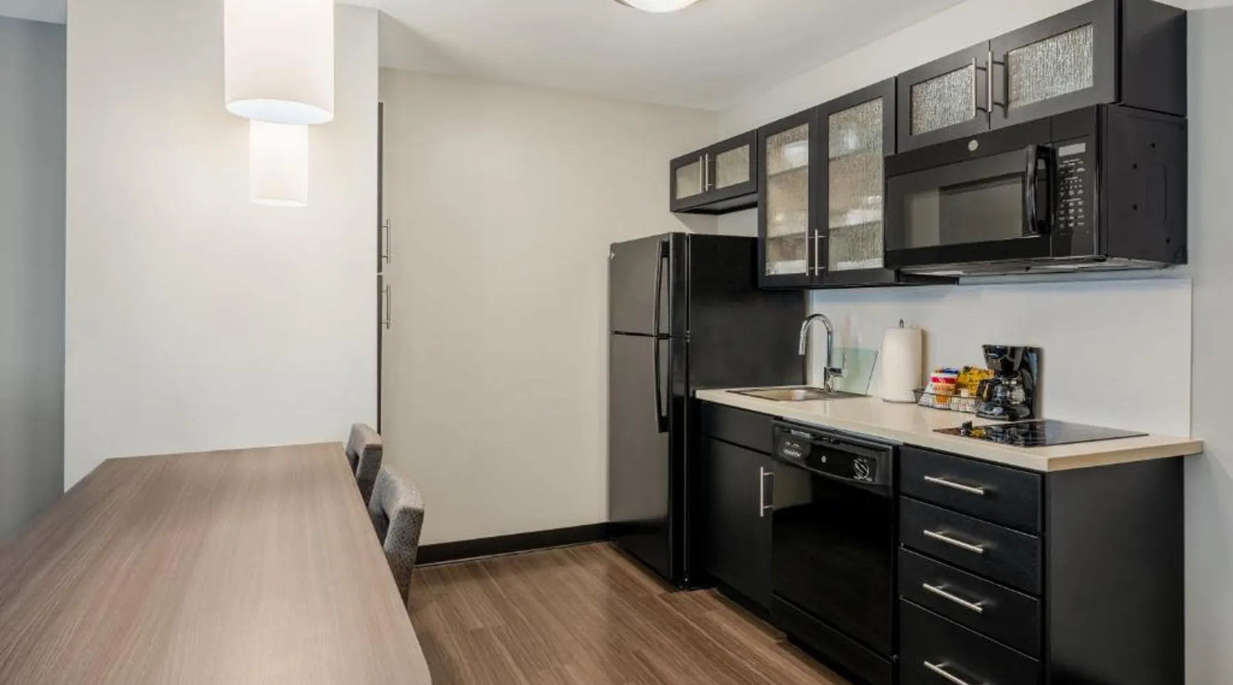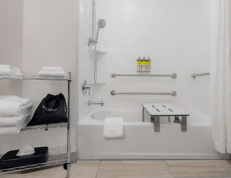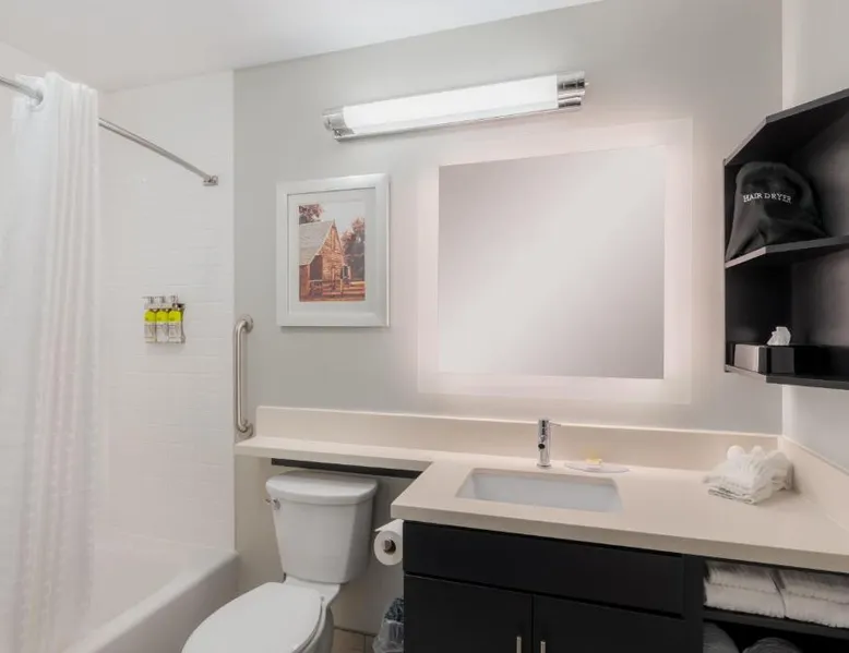 Comfortable Accommodations: Candlewood Suites Cookeville by IHG in Cookeville offers family rooms with air-conditioning, private bathrooms, and kitchenettes. Each room includes a work desk, free WiFi, and a TV. Exceptional Facilities: Guests can enjoy a fitness center, indoor swimming pool, terrace, and outdoor seating area. Additional amenities include a lounge, business area, and barbecue facilities. Convenient Location: Located 76 mi from Nashville International Airport, the hotel is near attractions such as Cookeville History Museum (2.5 mi) and Dogwood Park (2.5 mi). Hiking opportunities are available nearby. Guest Satisfaction: Highly rated for room cleanliness, attentive staff, and well-equipped kitchens. Featuring free toiletries, this suite includes a private bathroom with a bath, a shower and a hairdryer. In the fully equipped kitchen, guests will find a stovetop, a refrigerator, a dishwasher and kitchenware. The air-conditioned suite features a flat-screen TV with cable channels, soundproof walls, a tea and coffee maker, a dining area as well as mountain views. The unit has 1 bed.