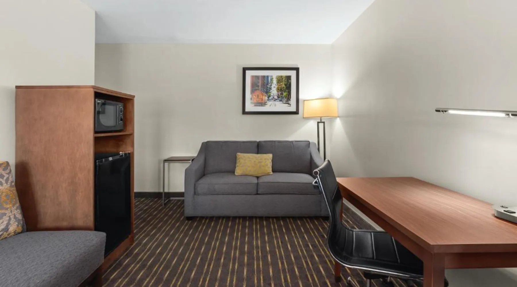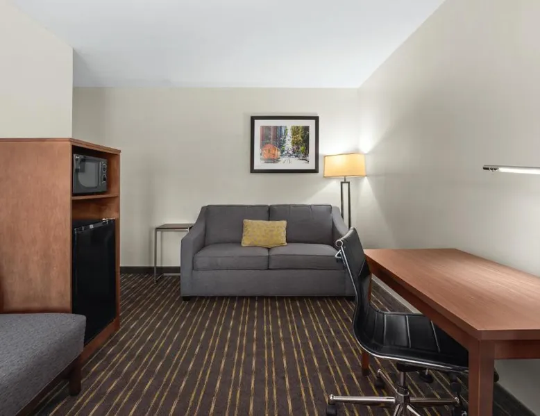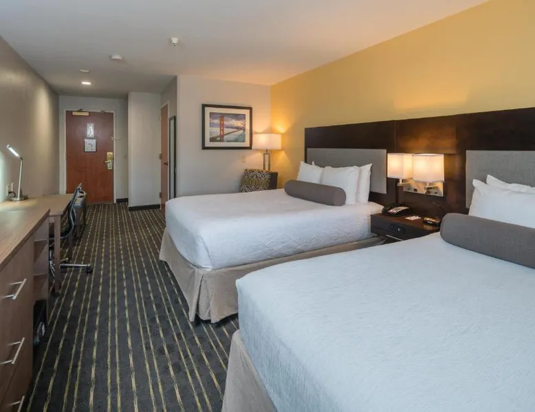 Located 3 mi from San Francisco International Airport, The Hotel Aura SFO Airport FREE SHUTTLE is completely nonsmoking hotel. Each guest room features free WiFi. Guest rooms at Hotel Aura SFO Airport FREE SHUTTLE include a flat-screen cable TV with extended channels, a microwave and a refrigerator. Long stay suites with a sofa bed are also available. The front desk at the property can provide guests with everything from maps of San Francisco to transportation schedules and itineraries for local day trips. Offering rail service to Central San Francisco, San Bruno BART Station is 7 minutes’ drive from this hotel. The Shops at Tanforan Mall are 1.9 mi away. South San Francisco Conference Center is 10 minutes’ drive away. The Hotel Aura SFO Airport FREE SHUTTLE now provides all guests with a Deluxe Continental Breakfast, served daily from 6:30am - 9:30am. Offering free WiFi and a sofa bed, this air-conditioned suite has a flat-screen cable TV, a microwave, a refrigerator and a coffee machine.