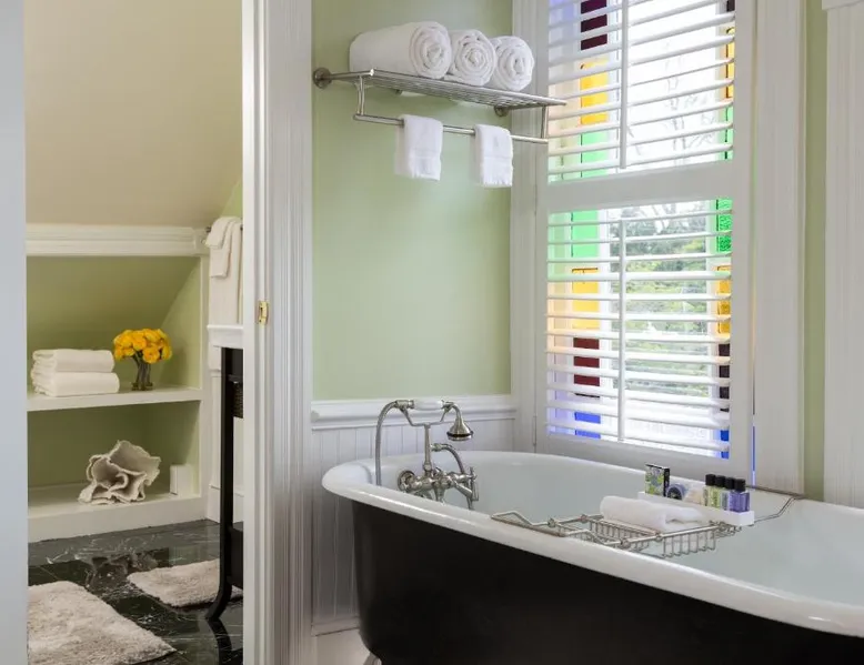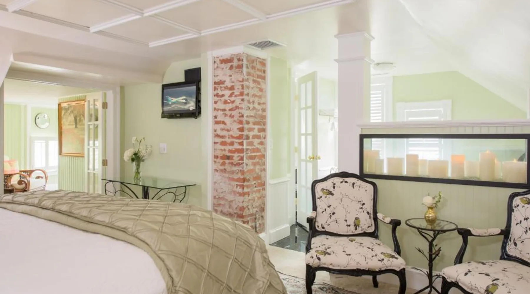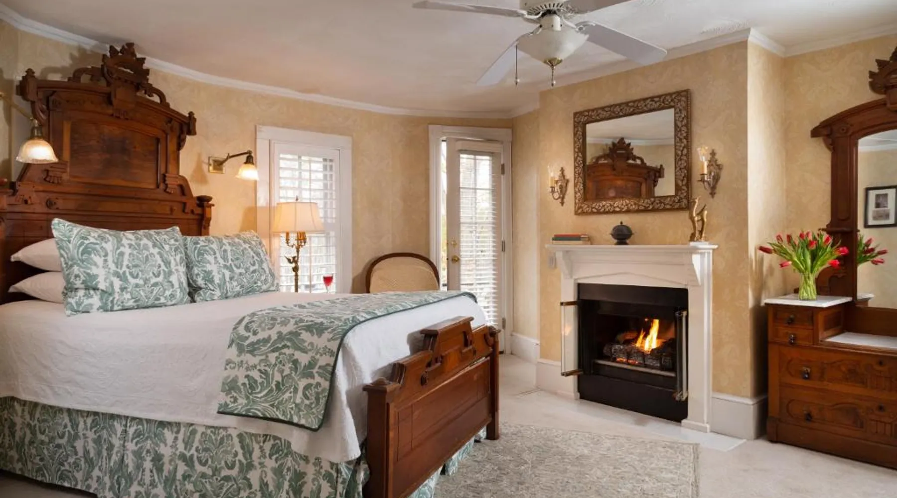 Elegant Accommodations: White Doe Inn Bed & Breakfast in Manteo offers adults-only 4-star comfort with a sun terrace, garden, and free WiFi. Guests enjoy private check-in and check-out, an outdoor fireplace, and concierge services. Comfortable Amenities: The property features air-conditioning, balconies, and private bathrooms with walk-in showers. Additional amenities include streaming services, spa baths, and free on-site parking. Delicious Breakfast: A variety of breakfast options are available, including American, vegetarian, and gluten-free. Fresh pastries, pancakes, and local specialties enhance the morning experience. Outdoor Activities: Guests can enjoy hiking and cycling in the surrounding area. The property also offers an indoor play area and picnic spots for leisure. This double room features a balcony, fireplace, and air conditioning.