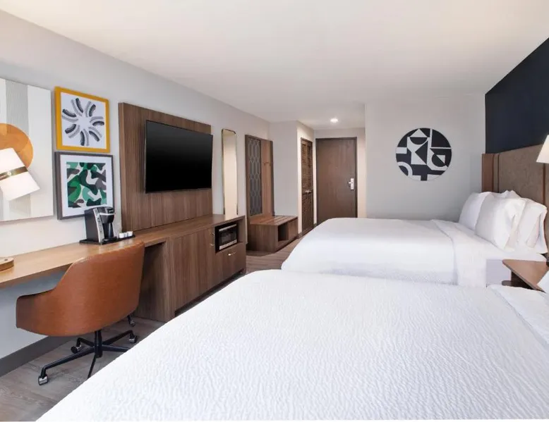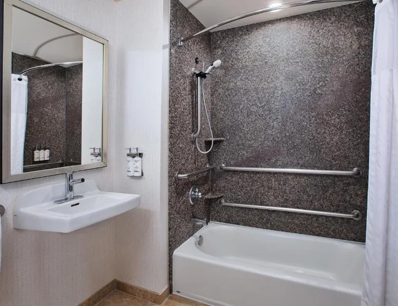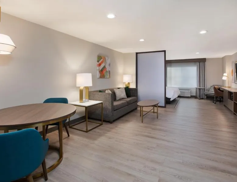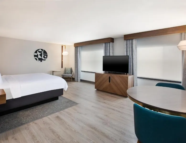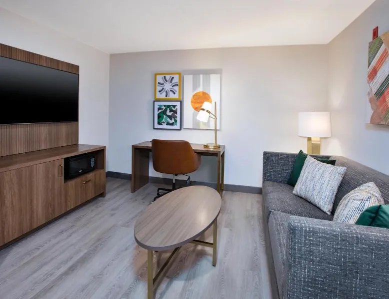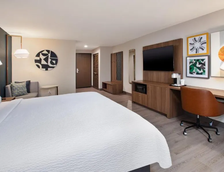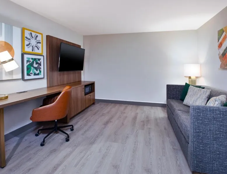 Located just off the San Bernardino Freeway, Holiday Inn Ontario Airport - California offers shuttle service from Ontario International Airport. Free Wi-Fi and an outdoor pool are also available. A flat-screen TV, a microwave and a small refrigerator are found in each modern room. Coffee-making facilities and a work desk are also included. Guests of the Holiday Inn Ontario Airport - California can enjoy the on-site hot tub and fitness room. A business center and laundry facilities are also provided. Landings Restaurant and Bar at the Holiday Inn Ontario Airport - California serves an American menu throughout the day. The Ontario Convention Center is less than 5 minutes’ walk from the Holiday Inn. Los Angeles city center is less than 40 miles away. Shuttle service available to guests during these hours: M-F 4am to 9:30am Sat-Sun 5am to 10:30am - every 30 minutes. Airport pick up is also available upon request, contact Front desk prior to check-in date. This suite includes a flat-screen TV, a microwave and a small refrigerator.