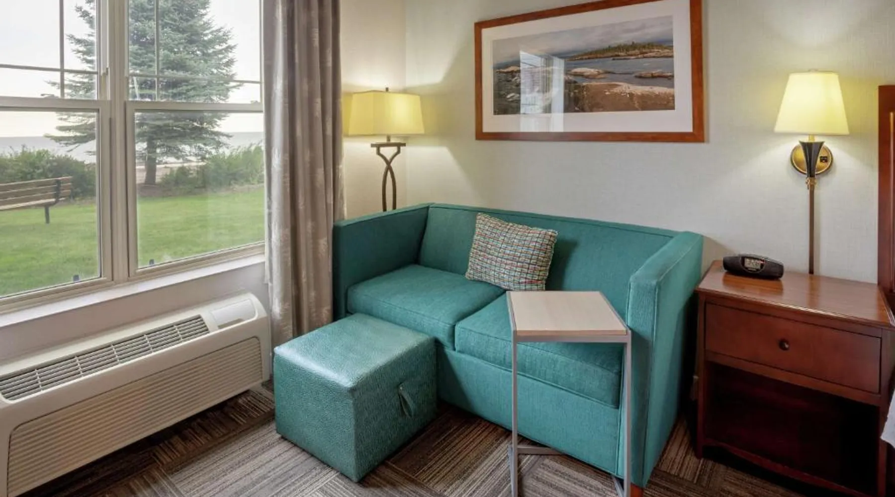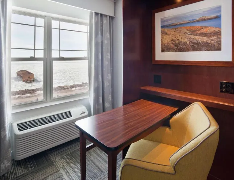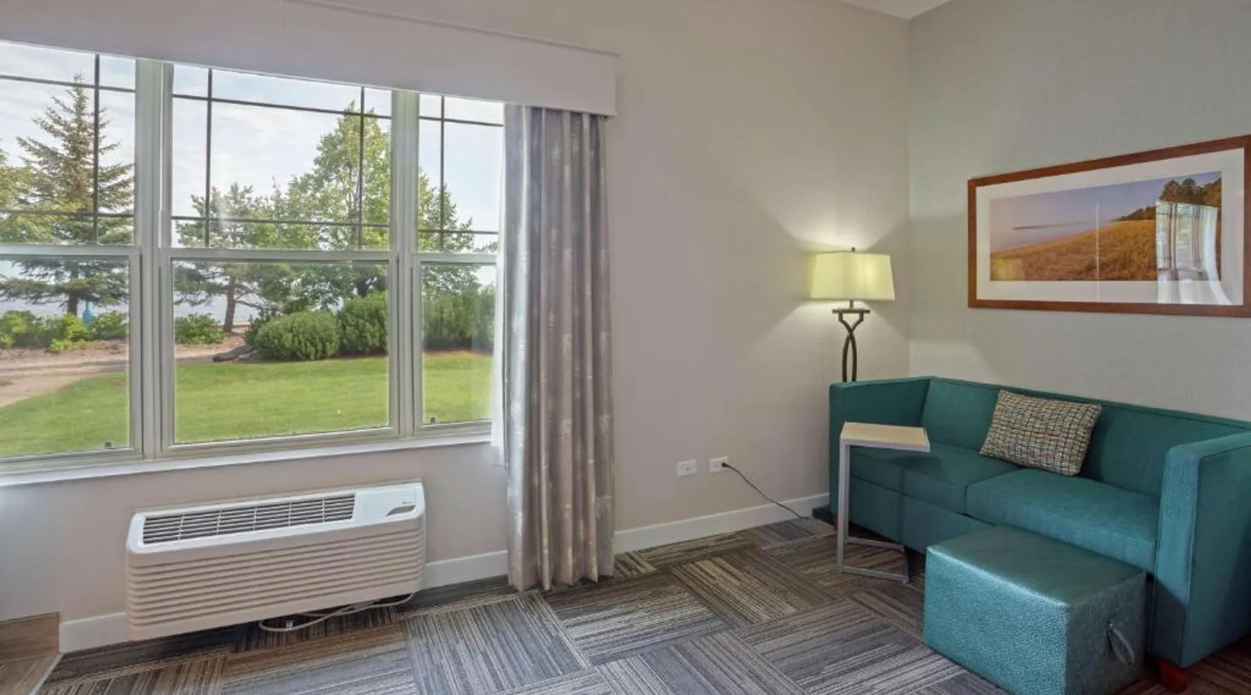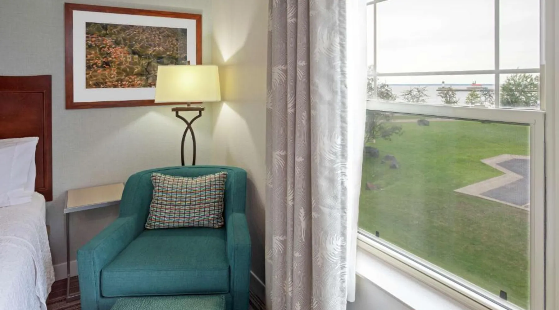 Along the shore of Lake Superior, just minutes from downtown Duluth, Minnesota and attractions such as the Great Lakes Aquarium, this hotel offers a free hot daily breakfast. Hampton Inn Duluth-Canal Park is only steps from the Duluth Lakewalk and Canal Park. Guests can also go on a scenic train ride or explore the Lake Superior Zoo only minutes from the hotel. While staying at the Duluth Hampton Inn, guests can go for a swim in the indoor pool or take advantage of the fitness room. Guestrooms feature amenities including mini-refrigerators, coffeemakers and free high-speed internet access. This suite features a tea and coffee maker, a seating area, a TV and sea views. The unit offers 2 beds.