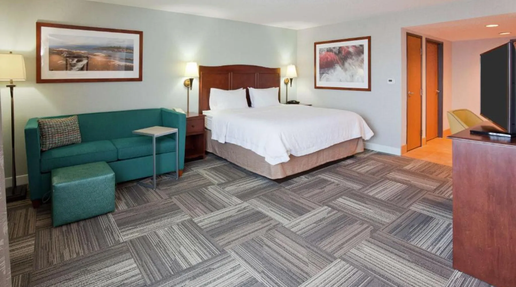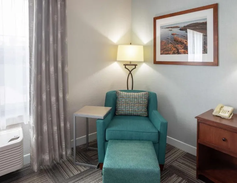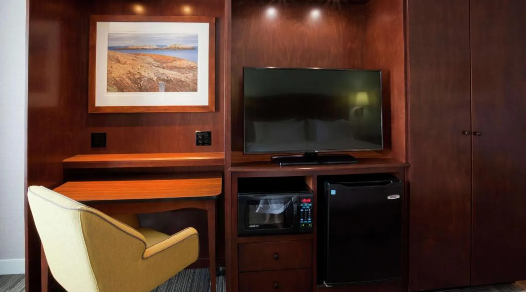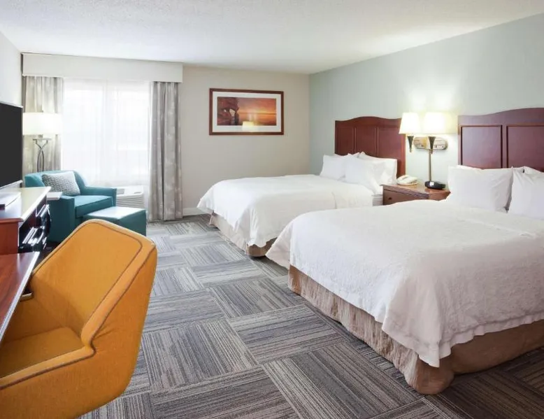 Along the shore of Lake Superior, just minutes from downtown Duluth, Minnesota and attractions such as the Great Lakes Aquarium, this hotel offers a free hot daily breakfast. Hampton Inn Duluth-Canal Park is only steps from the Duluth Lakewalk and Canal Park. Guests can also go on a scenic train ride or explore the Lake Superior Zoo only minutes from the hotel. While staying at the Duluth Hampton Inn, guests can go for a swim in the indoor pool or take advantage of the fitness room. Guestrooms feature amenities including mini-refrigerators, coffeemakers and free high-speed internet access. This suite features a tea and coffee maker, a seating area, a TV and sea views. The unit offers 2 beds.