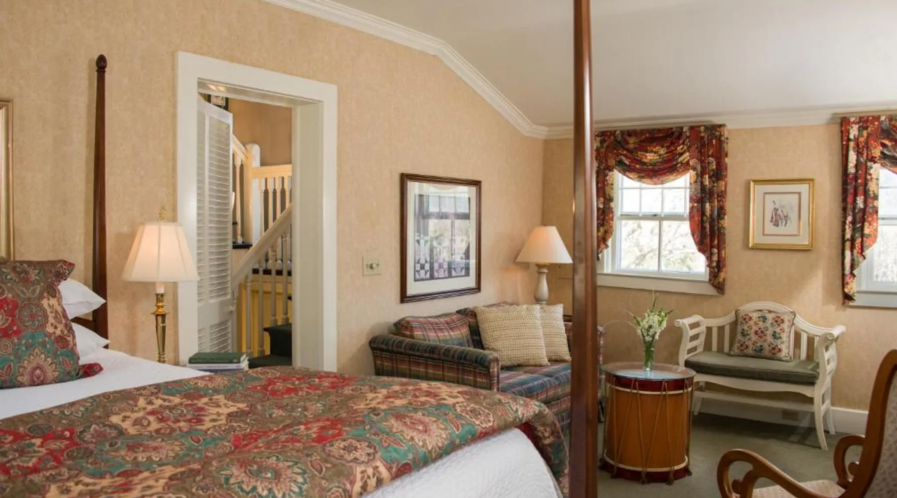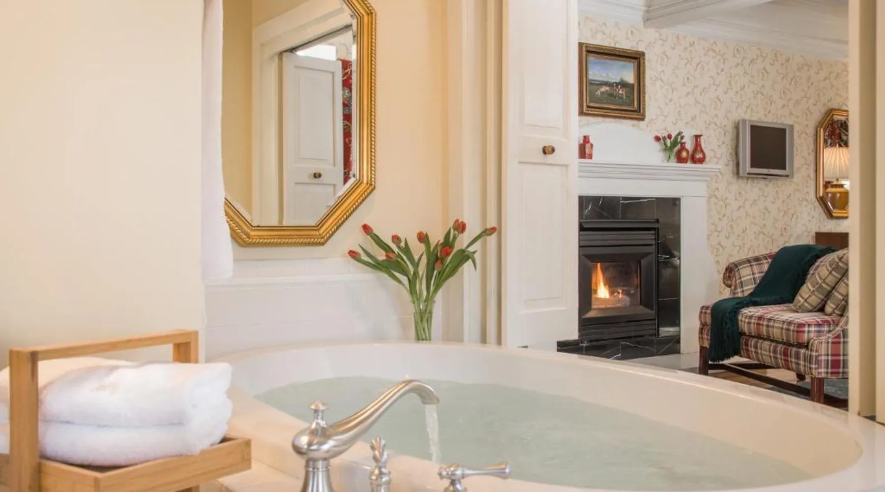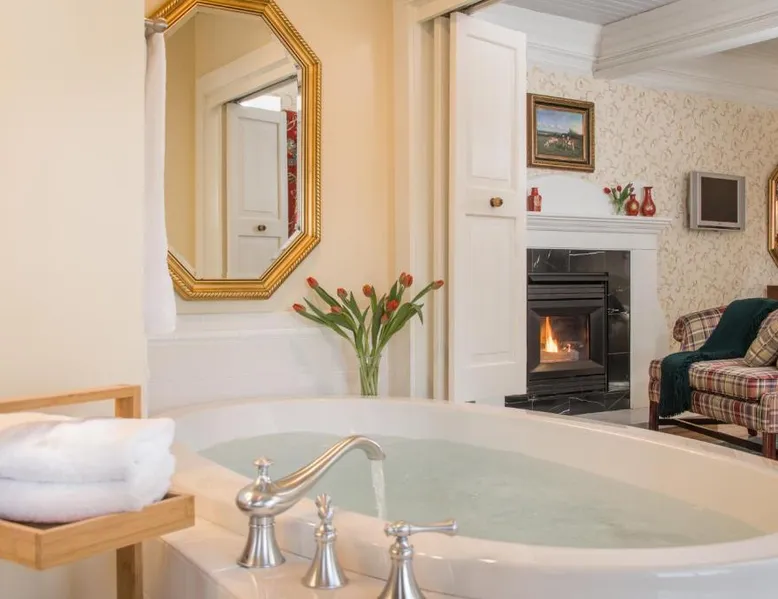 Historic Setting: The INN at Ormsby Hill in Manchester offers a unique stay within a historic building. Guests enjoy a beautiful garden and terrace, complemented by free WiFi throughout the property. Comfortable Accommodations: Rooms feature air-conditioning, private bathrooms with walk-in showers, and modern amenities such as flat-screen TVs and free toiletries. Additional comforts include bathrobes, spa baths, and balconies with mountain views. Delicious Breakfast: A hearty American breakfast is served each morning, including warm dishes, pancakes, cheese, fruits, and juice. Guests appreciate the quality and variety of the morning meal. Local Attractions: Located 5 mi from Skyline Overlook and 19 mi from Stratton Mountain, the property is also close to Bennington Battle Monument (25 mi) and Mount Equinox (5 mi). Rutland State Airport is 30 mi away. This suite features a fireplace. The air-conditioned suite has 1 bedroom and 1 bathroom with a walk-in shower and a bath. This suite features a seating area, a wardrobe, flat-screen TV with cable channels, as well as wine/champagne for guests. The unit has 1 bed.