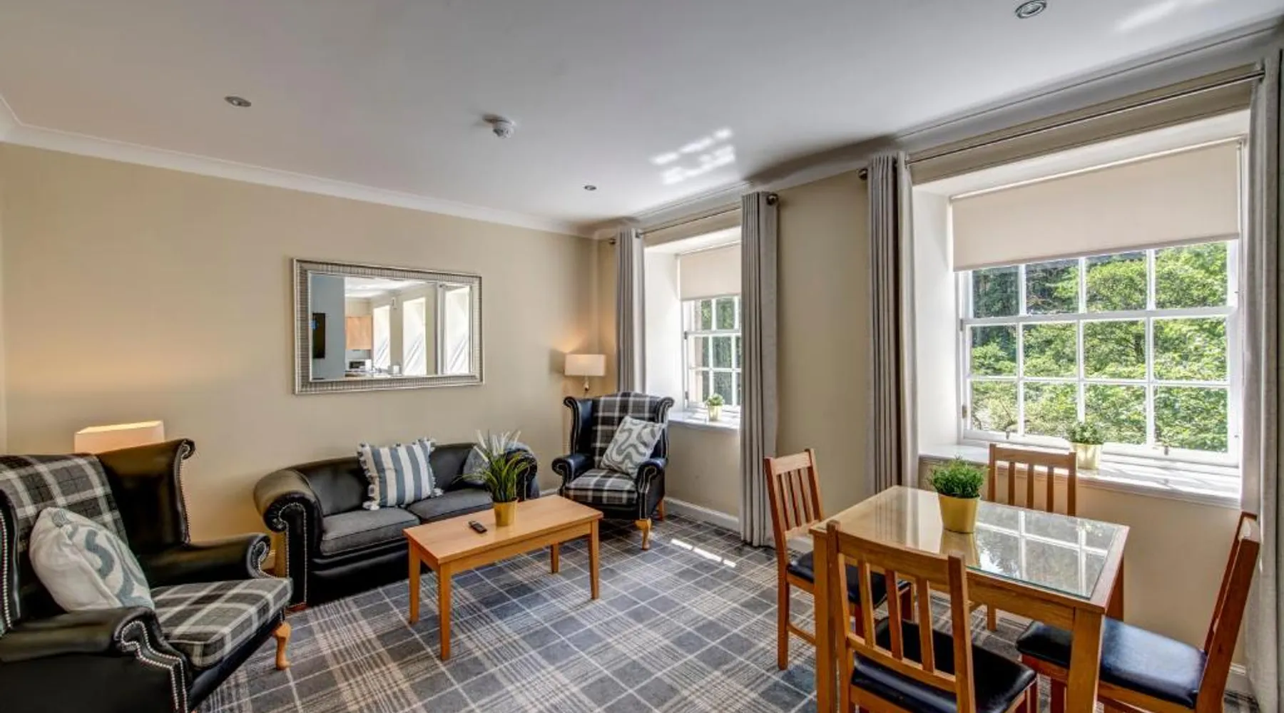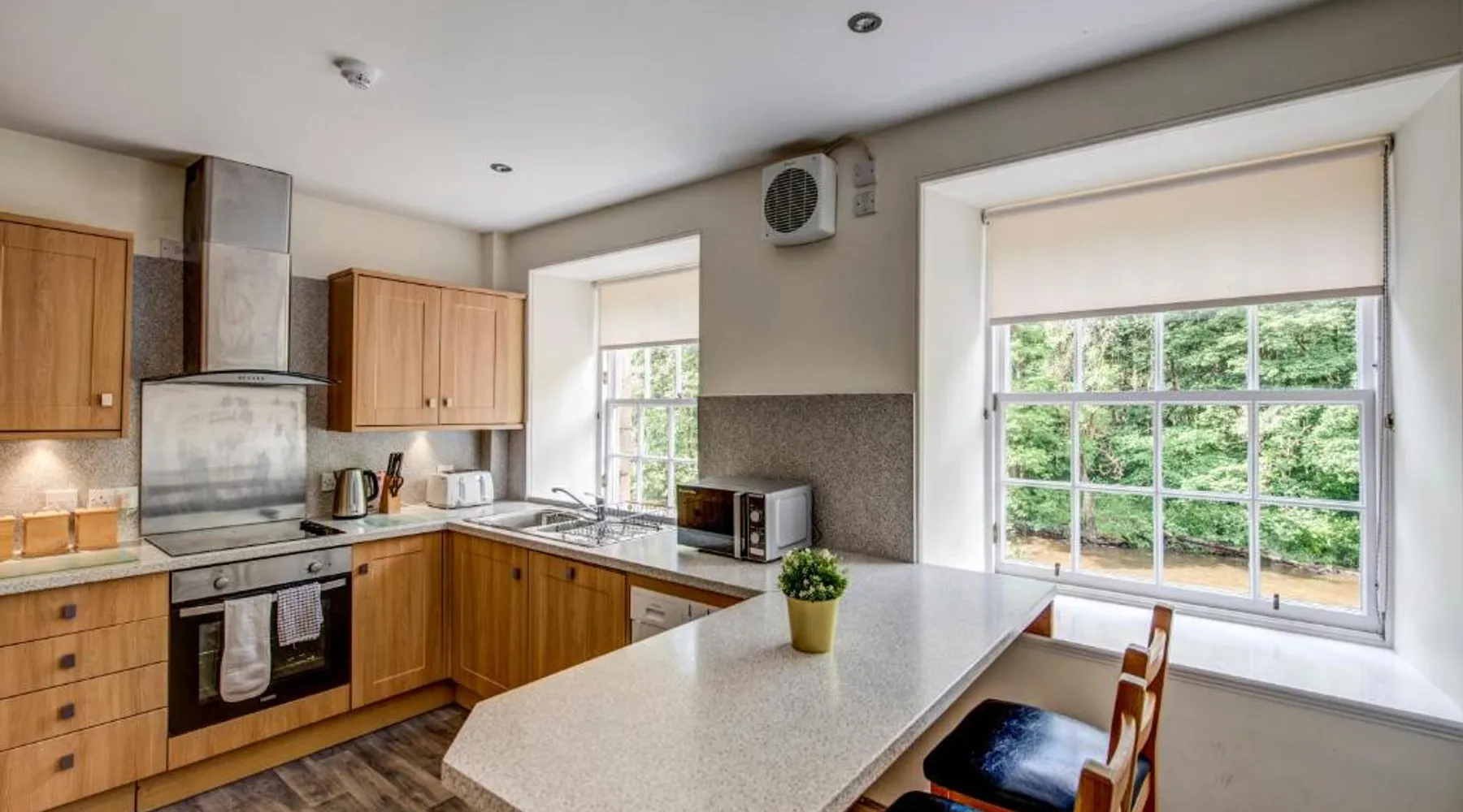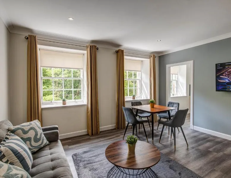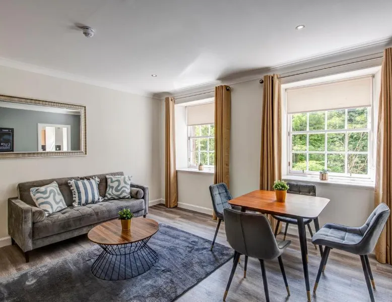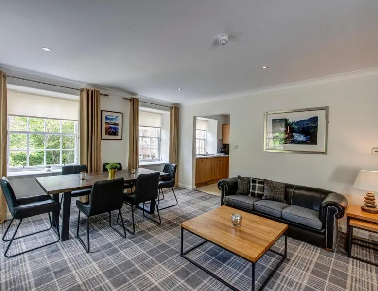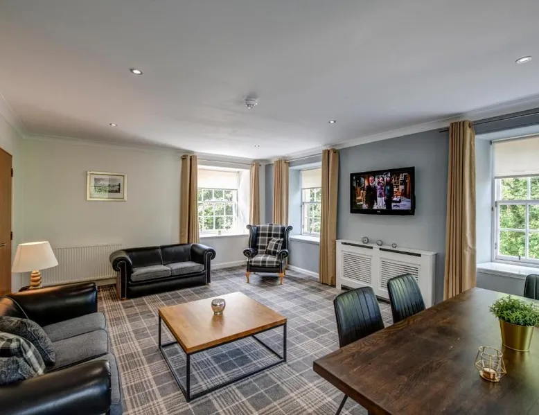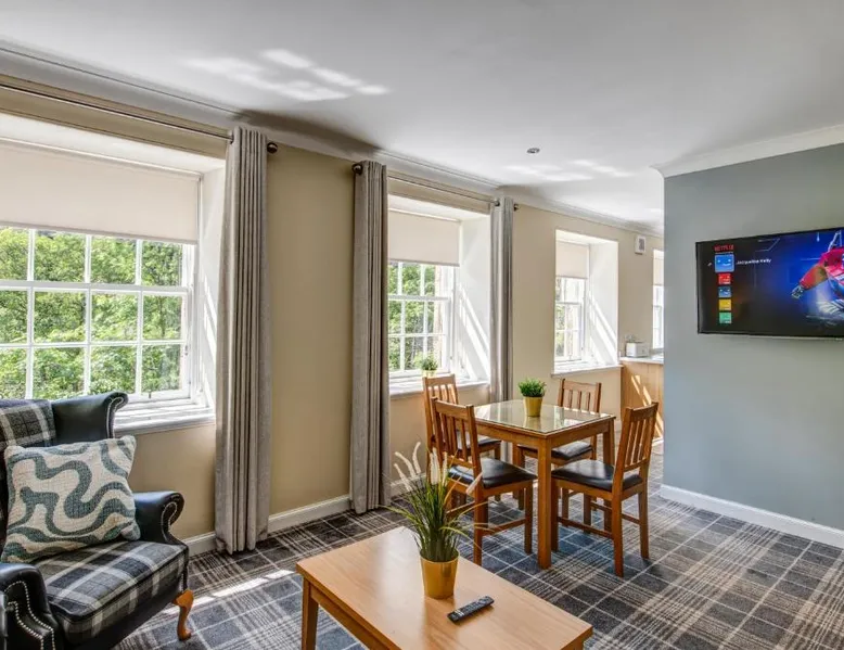 Comfortable Accommodations: New Lanark Self Catering Waterhouses in Lanark offers 4-star apartments with family rooms. Each unit features a private bathroom, kitchen, and free WiFi. Leisure Facilities: Guests can enjoy a sauna, indoor swimming pool, and free on-site parking. Additional amenities include streaming services, washing machine, and a work desk. Prime Location: Located 30 mi from Edinburgh Airport, the property is near attractions such as Sir Chris Hoy Velodrome (23 mi) and Glasgow Cathedral (27 mi). Guests appreciate the convenient location and scenic views. Featuring a private entrance, this spacious apartment also consists of 2 bedrooms, a seating area and 1 bathroom with a bath and a hairdryer. Meals can be prepared in the kitchen, which comes with a stovetop, a refrigerator, a dishwasher and kitchenware. The apartment provides a washing machine, a dining area, a wardrobe, a flat-screen TV with streaming services, as well as river views. The unit offers 3 beds.
