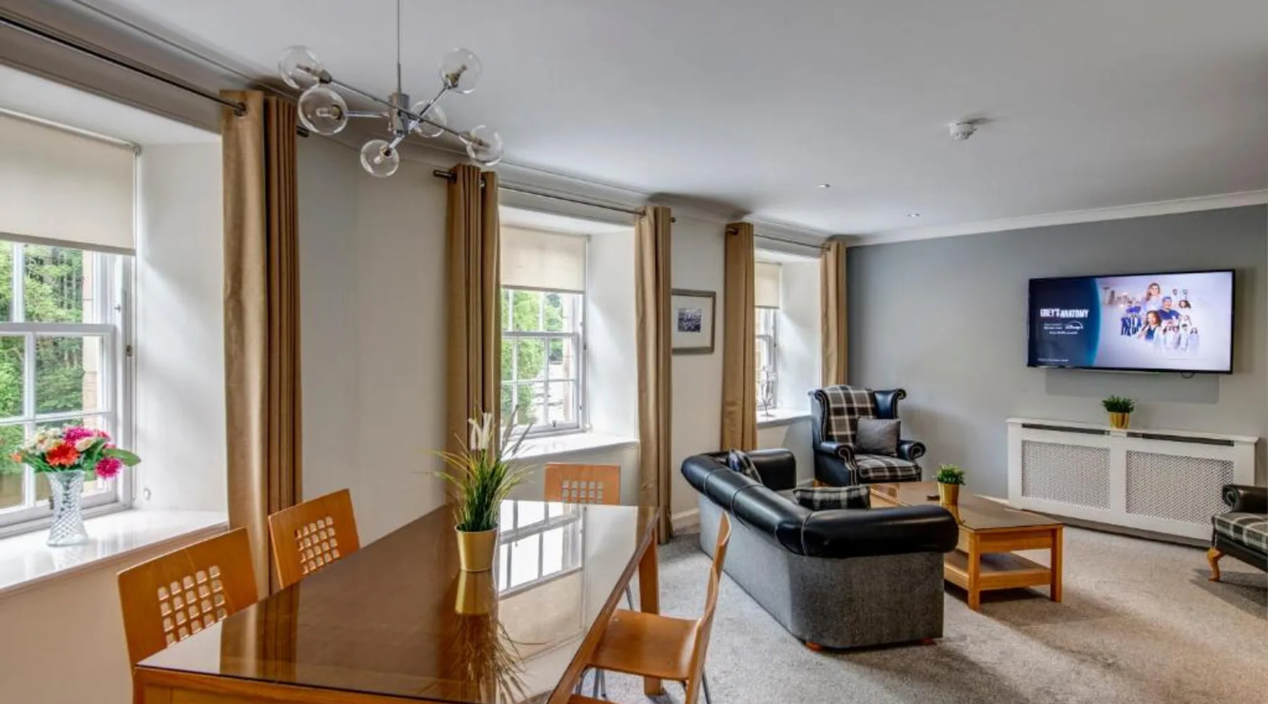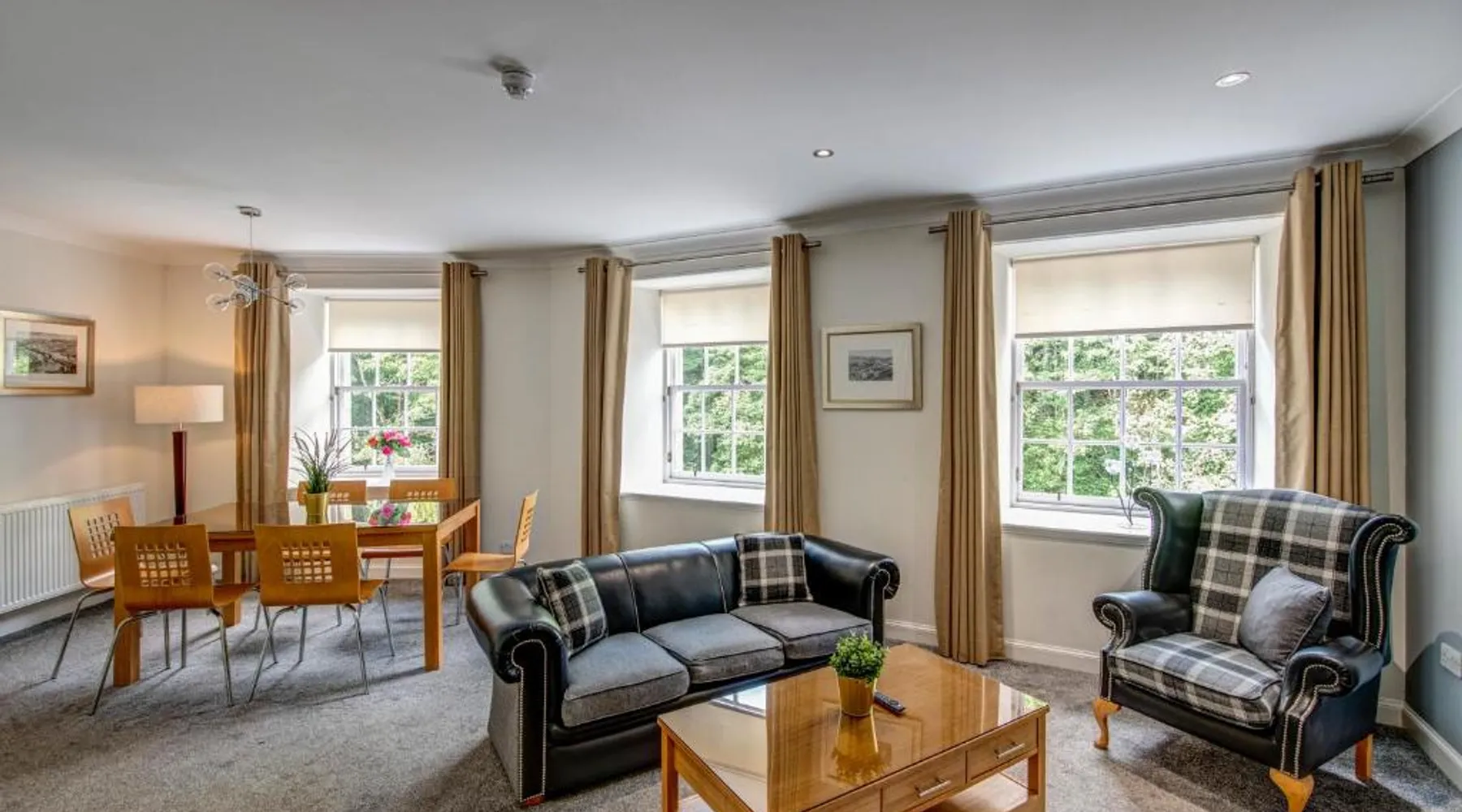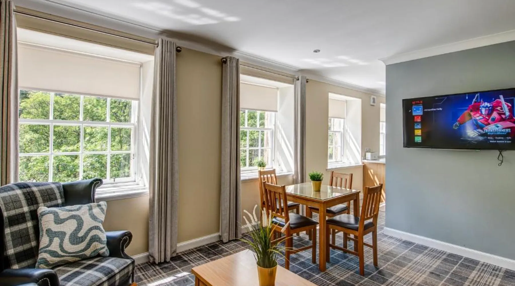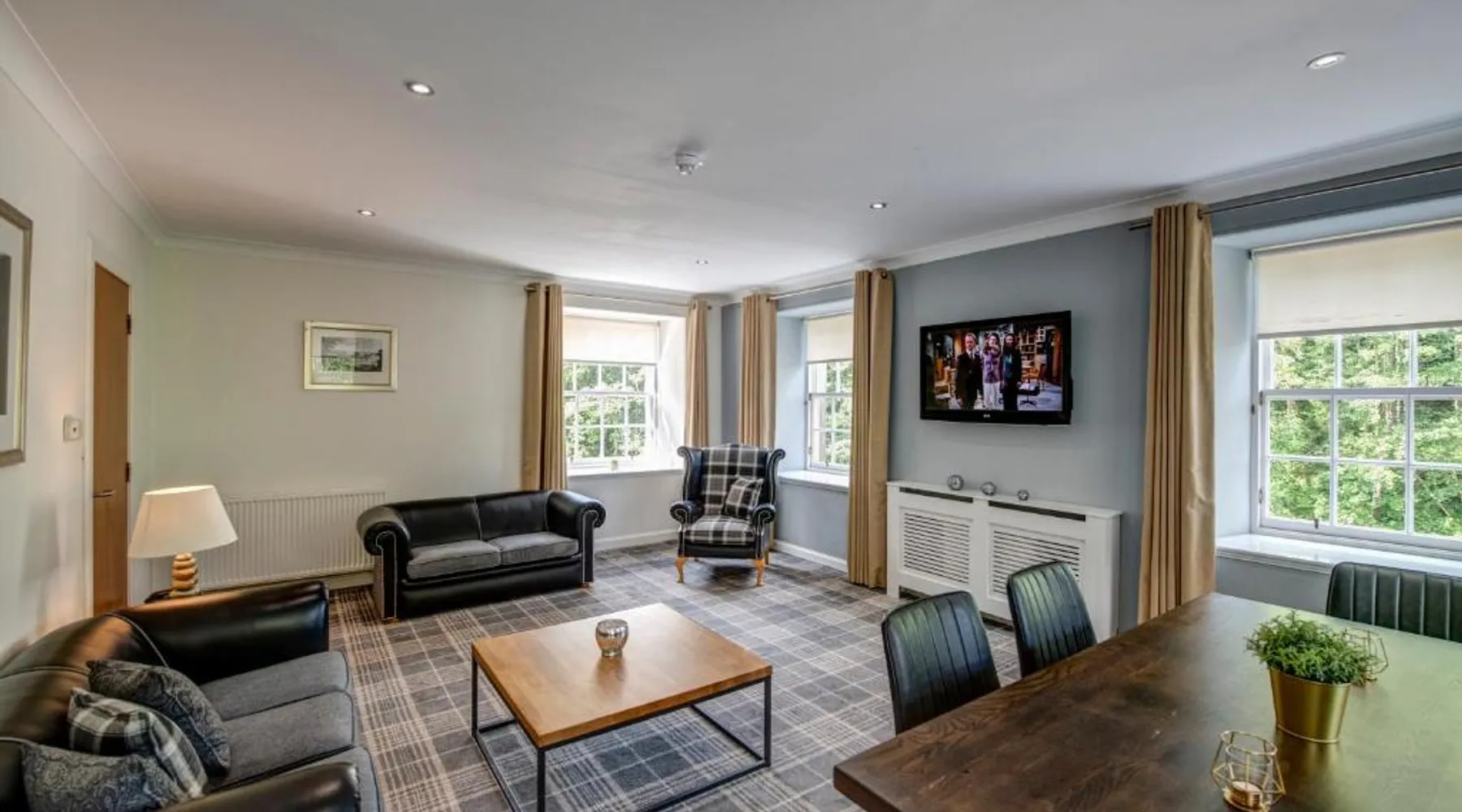 Comfortable Accommodations: New Lanark Self Catering Waterhouses in Lanark offers 4-star apartments with family rooms. Each unit features a private bathroom, kitchen, and free WiFi. Leisure Facilities: Guests can enjoy a sauna, indoor swimming pool, and free on-site parking. Additional amenities include streaming services, washing machine, and a work desk. Prime Location: Located 30 mi from Edinburgh Airport, the property is near attractions such as Sir Chris Hoy Velodrome (23 mi) and Glasgow Cathedral (27 mi). Guests appreciate the convenient location and scenic views. Featuring a private entrance, this spacious apartment also consists of 2 bedrooms, a seating area and 1 bathroom with a bath and a hairdryer. Meals can be prepared in the kitchen, which comes with a stovetop, a refrigerator, a dishwasher and kitchenware. The apartment provides a washing machine, a dining area, a wardrobe, a flat-screen TV with streaming services, as well as river views. The unit offers 3 beds.
