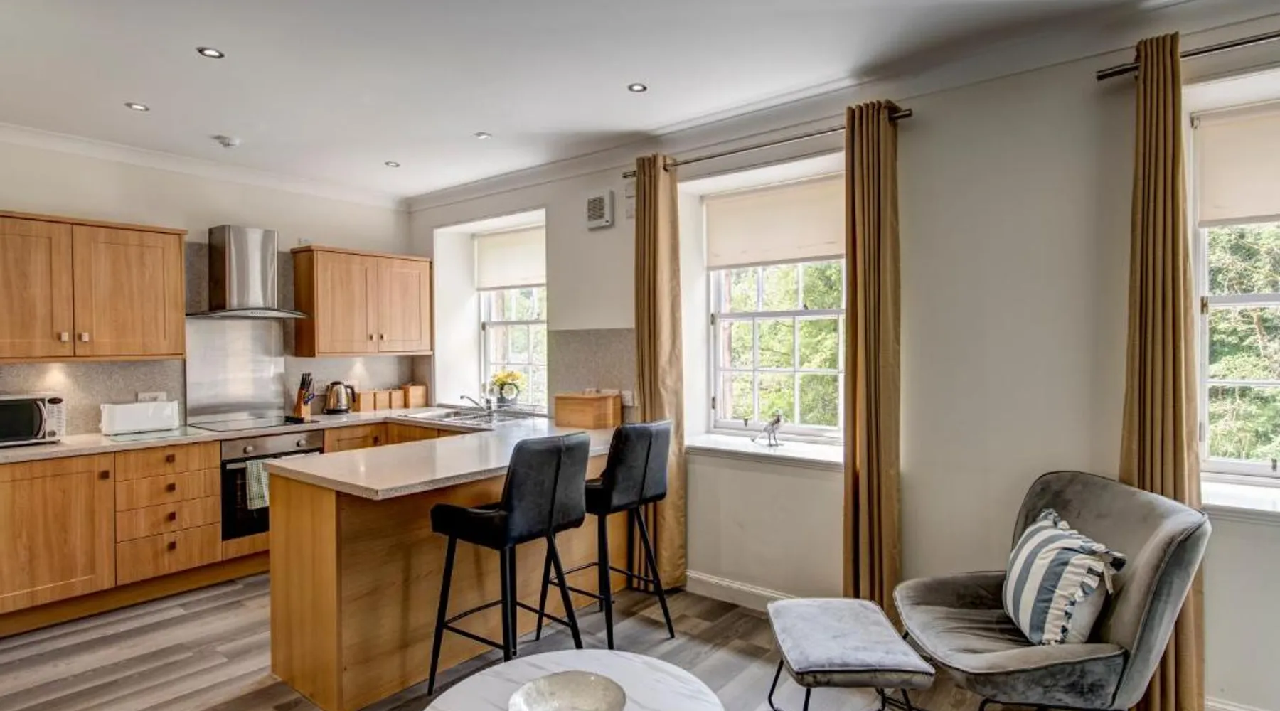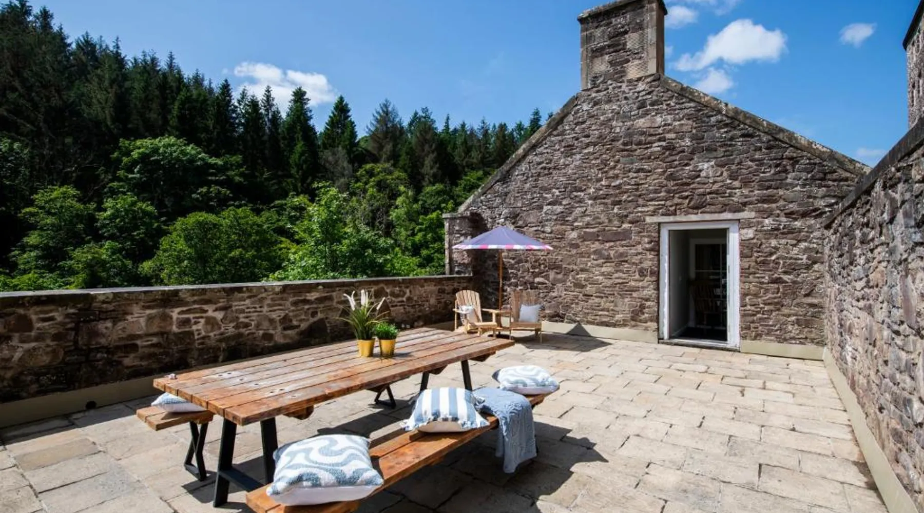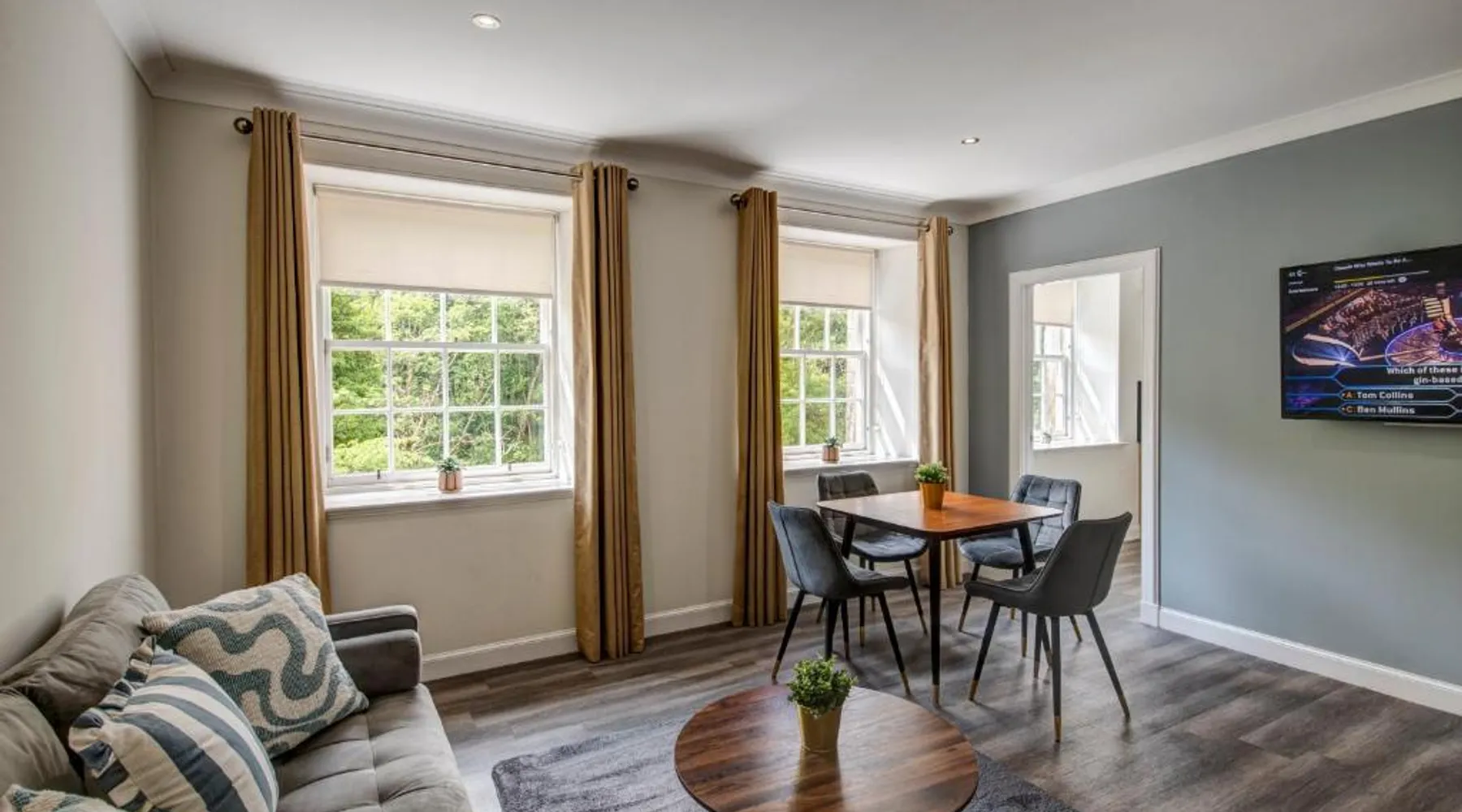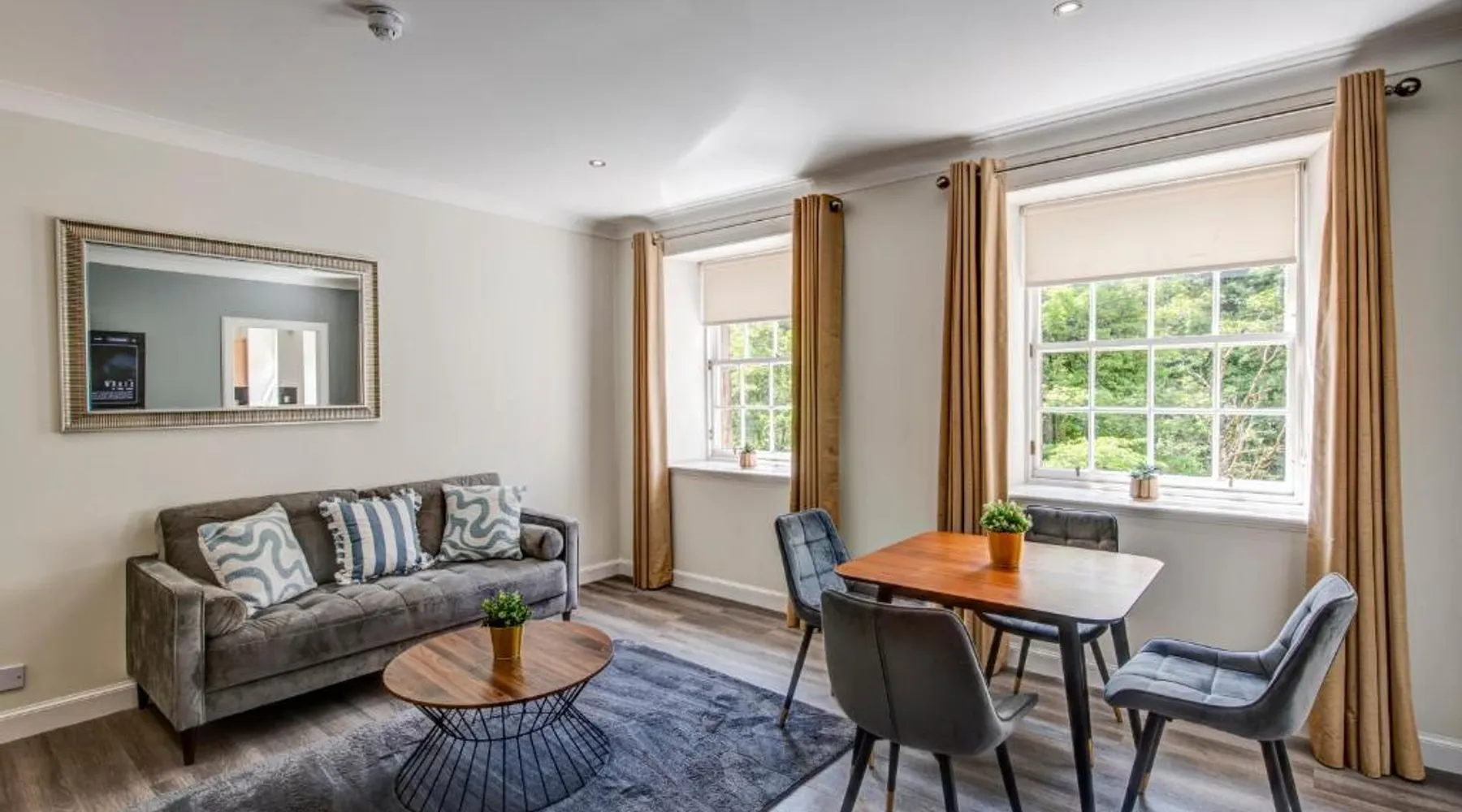 Comfortable Accommodations: New Lanark Self Catering Waterhouses in Lanark offers 4-star apartments with family rooms. Each unit features a private bathroom, kitchen, and free WiFi. Leisure Facilities: Guests can enjoy a sauna, indoor swimming pool, and free on-site parking. Additional amenities include streaming services, washing machine, and a work desk. Prime Location: Located 30 mi from Edinburgh Airport, the property is near attractions such as Sir Chris Hoy Velodrome (23 mi) and Glasgow Cathedral (27 mi). Guests appreciate the convenient location and scenic views. Featuring a private entrance, this spacious apartment also consists of 2 bedrooms, a seating area and 1 bathroom with a bath and a hairdryer. Meals can be prepared in the kitchen, which comes with a stovetop, a refrigerator, a dishwasher and kitchenware. The apartment provides a washing machine, a dining area, a wardrobe, a flat-screen TV with streaming services, as well as river views. The unit offers 3 beds.