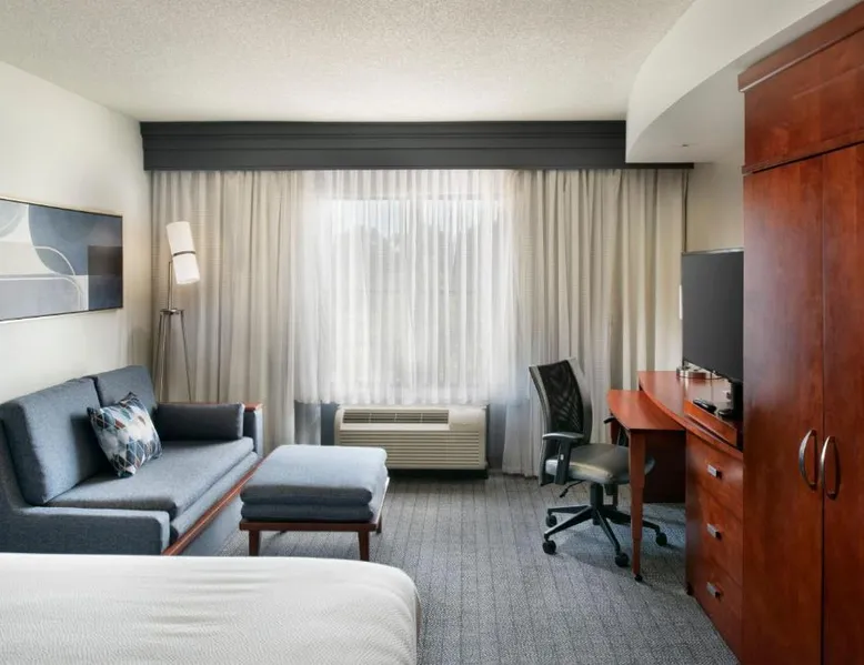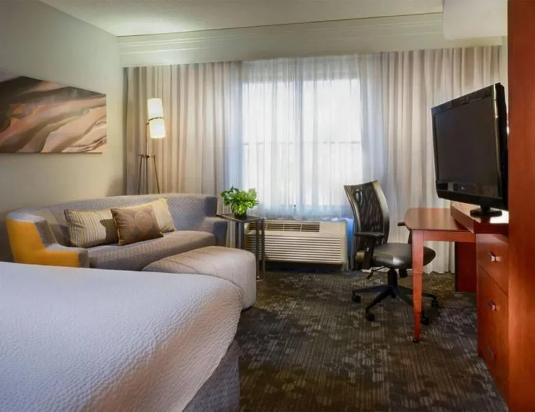 Comfortable Accommodations: Courtyard Memphis Collierville in Collierville offers air-conditioned rooms with private bathrooms, tea and coffee makers, and free toiletries. Each room includes a work desk, seating area, and complimentary WiFi. Dining Experience: The family-friendly restaurant serves American cuisine for dinner. Guests can enjoy a variety of meals in a welcoming atmosphere. Convenient Facilities: The hotel features a elevator, 24-hour front desk, and free on-site parking. Additional amenities include a microwave, refrigerator, and sofa bed. Prime Location: Located 15 mi from Memphis International Airport, the property is near attractions such as Graceland (19 mi) and Memphis Zoo (22 mi). Guests appreciate the attentive staff and excellent service. This room features a seating area and cable television.