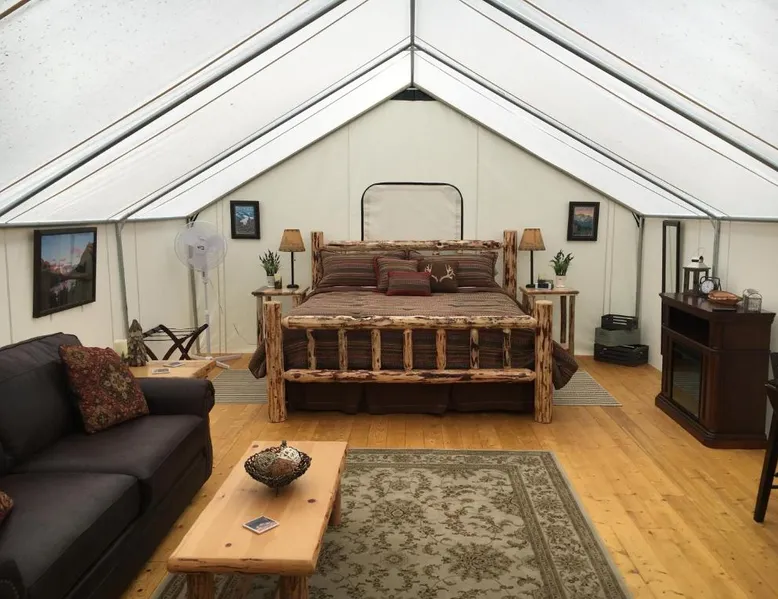 Located in Columbia Falls, North Forty Resort features private cabins, a hot tub and sauna. Free WiFi is available throughout the property and free private parking is available on site. Each cabin features a fully equipped kitchen with linens, and a flat-screen TV with cable channels. All cabins have a seating area to relax in after a busy day. All rooms include a private bathroom fitted with a bath or shower. The glamping tent has a shared bathroom for guest to use. For your convenience, you will find free toiletries and a hairdryer in the bathroom of each unit. There is a gift shop at the property with a variety of local products available for purchase. You can engage in various activities, such as skiing, golfing and horse riding. The North Forty Resort is located 5 mi from Whitefish and 6.2 mi from Big Sky Waterpark. Glacier National Park is within 20 minutes' drive. The nearest airport is Glacier Park International Airport, 4.3 mi from North Forty Resort. This suite's special feature is the fireplace. Featuring a private entrance, this air-conditioned suite consists of 1 living room, 1 separate bedroom and 2 bathrooms with a bath and a shower. Guests will find a stovetop, a refrigerator, kitchenware and a microwave in the well-equipped kitchen. The suite also offers a barbecue. The spacious suite provides a tea and coffee maker, a seating area, a dining area, a wardrobe and a flat-screen TV with streaming services. The unit offers 3 beds.