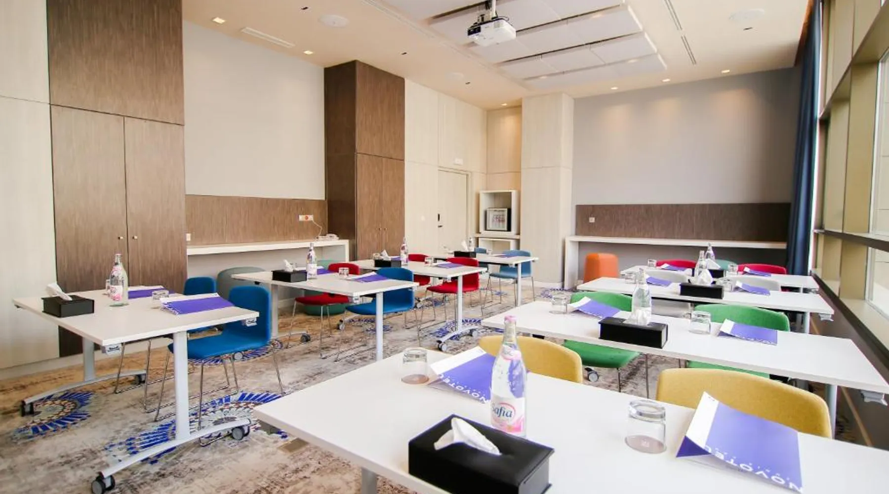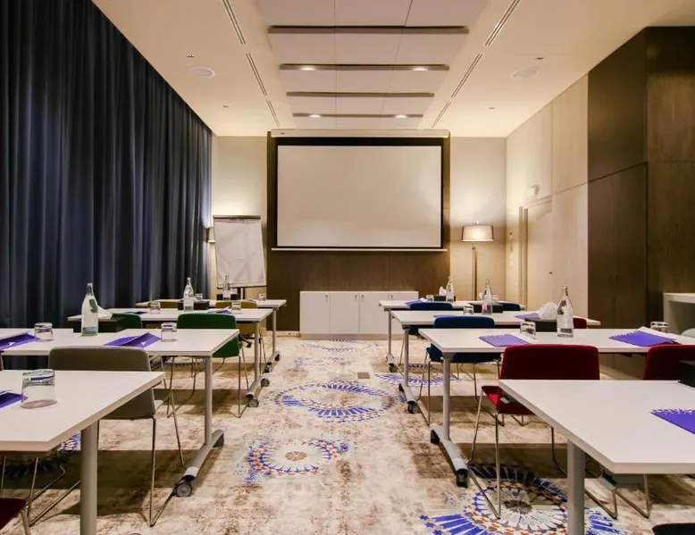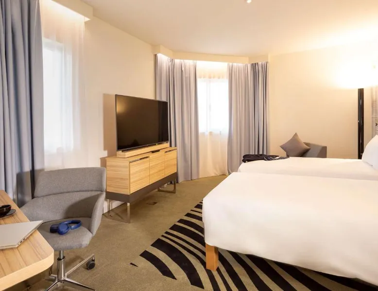 Comfortable Accommodations: Rooms feature air-conditioning, mini-bars, balconies with pool or city views, and free WiFi. Additional amenities include bathrobes, soundproofing, and work desks. Exceptional Facilities: Guests can enjoy spa facilities, a sauna, fitness center, sun terrace, and a year-round outdoor swimming pool. The property offers yoga and fitness classes, a lounge, and an outdoor fireplace. Dining Experience: The modern, family-friendly restaurant serves Mediterranean, local, and international cuisines for brunch, lunch, dinner, and high tea. Breakfast includes local specialties, fresh pastries, and a variety of beverages. Prime Location: Located 2.5 mi from Tunis–Carthage Airport, the hotel is near attractions such as Salammbo Tophet Archaeological Museum (2.8 mi) and Byrsa (3.7 mi). Free on-site private parking is available. This double room is air-conditioned and features a flat-screen TV with satellite channels, soundproof walls, a mini-bar and a tea and coffee maker. The unit offers 2 beds.