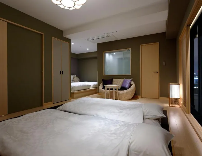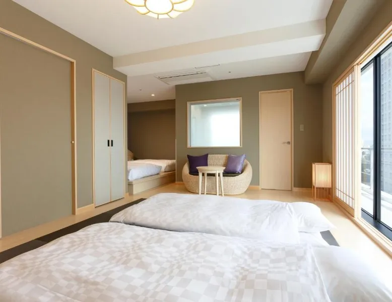 Comfortable Accommodations: Osaka View Hotel Honmachi in Osaka offers family rooms with air-conditioning, private bathrooms, and modern amenities. Each room includes a bath, bidet, hairdryer, yukata, refrigerator, work desk, free toiletries, shower, slippers, TV, soundproofing, electric kettle, and wardrobe. Convenient Facilities: Guests enjoy free WiFi, a elevator, 24-hour front desk, housekeeping service, full-day security, and luggage storage. Additional amenities include bathrobes, spa bath, garden views, coffee machine, city views, inner courtyard views, carpeted and parquet floors, sofa, and soundproofing. Prime Location: Located in the city center, the hotel is 12 mi from Itami Airport. Nearby attractions include Nanba Betsuin Temple (5-minute walk), Hongan-ji Temple Tsumura Betsuin (656 feet), OSTEC Exhibition Hall (6-minute walk), and Namba Shrine (1969 feet). Guests appreciate the public transport options and excellent service. The triple room includes a private bathroom, well-fitted with a bath, a shower, a bidet, a hairdryer and slippers. The air-conditioned triple room offers a flat-screen TV, soundproof walls, a wardrobe, a safe deposit box as well as city views. The unit offers 3 beds.