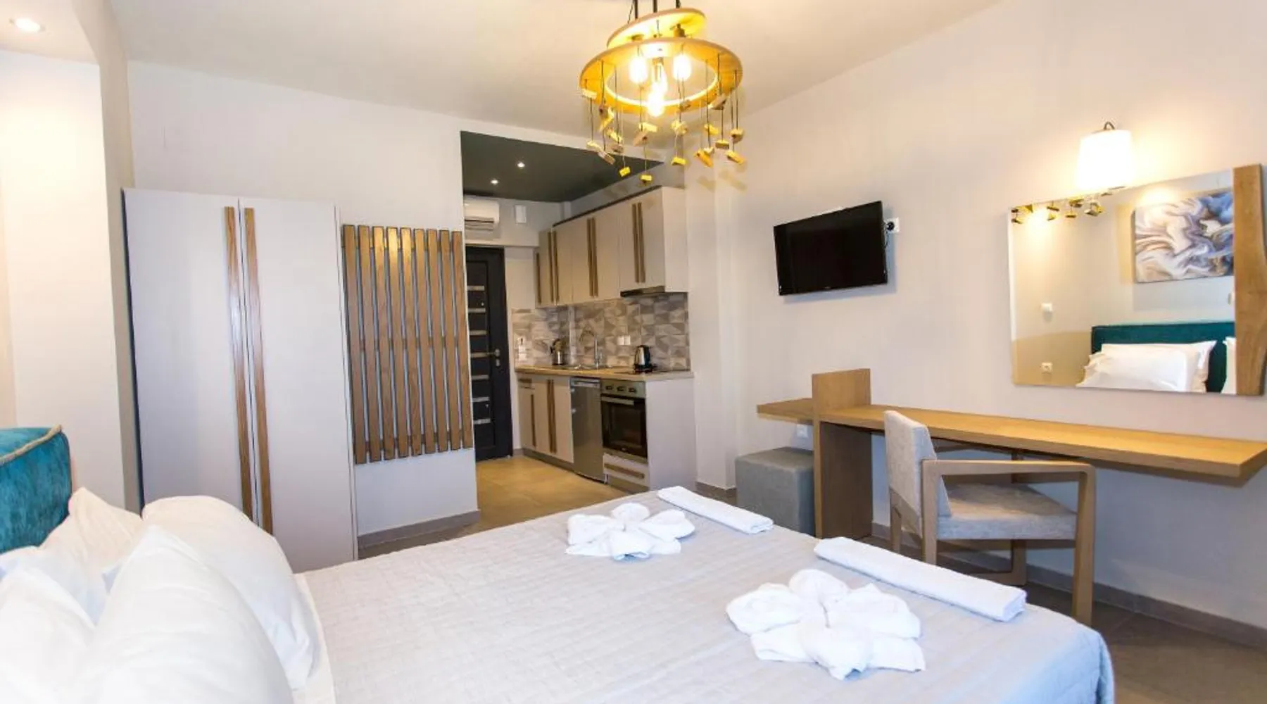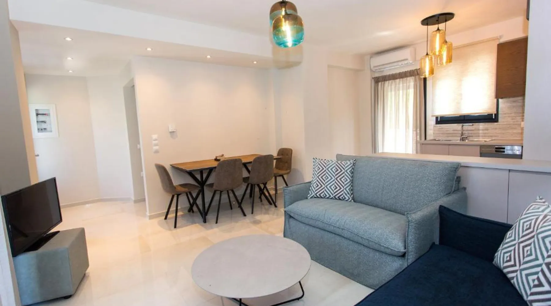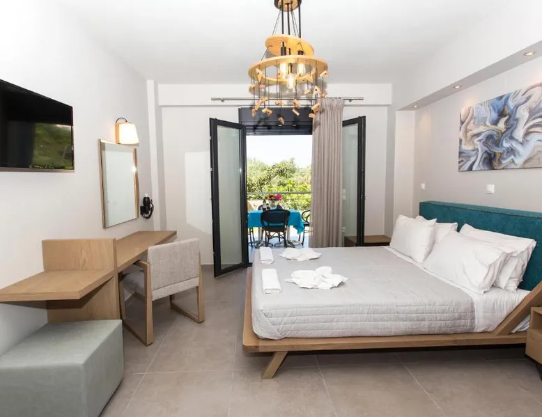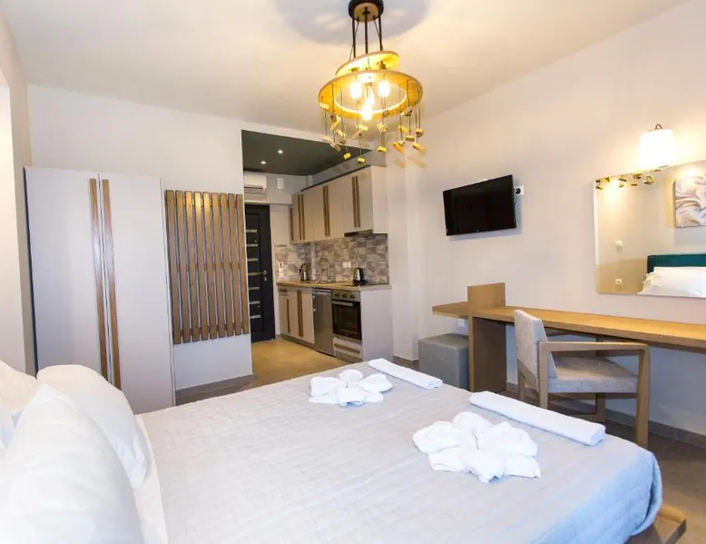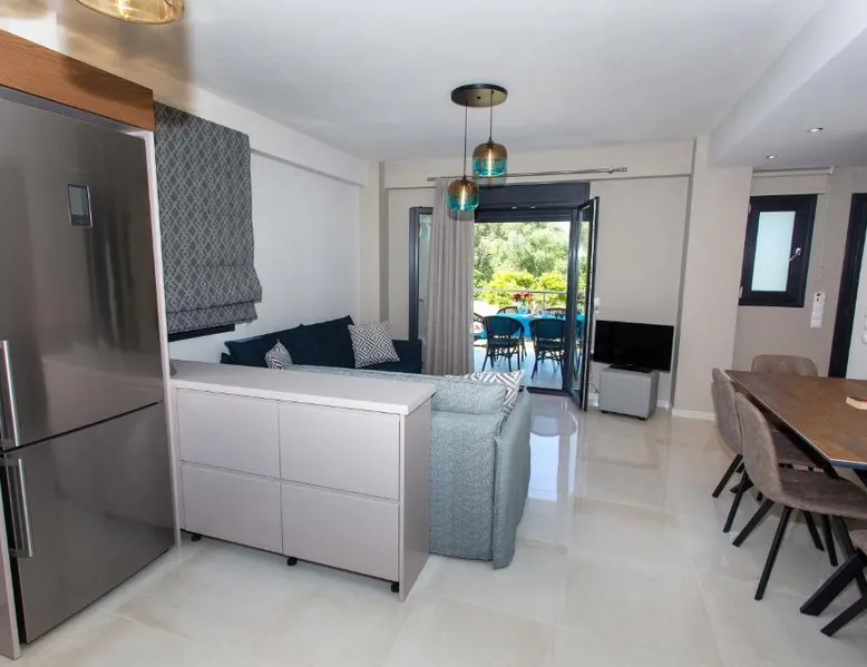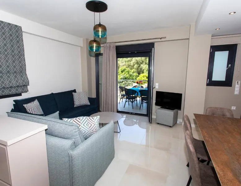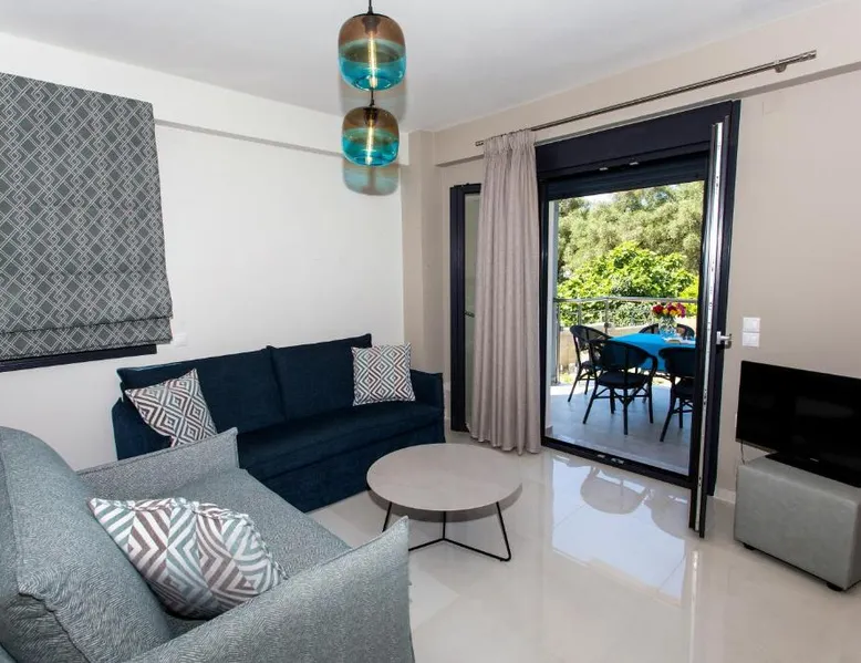 Central Location: Monline Maisonettes & Apartments in Parga offers a central location with a sun terrace and garden. Free WiFi is available throughout the property. Comfortable Accommodations: Each apartment features air-conditioning, a terrace or balcony, a private bathroom, and a fully equipped kitchen. Additional amenities include a sofa bed, dishwasher, and TV. Guest Services: The property provides housekeeping service, an outdoor seating area, and family rooms. Free on-site private parking is available. Nearby Attractions: Piso Krioneri Beach is an 8-minute walk away, while the Castle of Parga lies 1.2 mi from the apartment. Aktion Airport is 41 mi distant. This air-conditioned apartment includes 1 living room, 1 separate bedroom and 1 bathroom with a bath or a shower. In the well-fitted kitchen, guests will find a refrigerator, a dishwasher, kitchenware and an oven. Boasting a terrace, this apartment also offers a seating area, a wardrobe and a flat-screen TV. The unit has 2 beds.