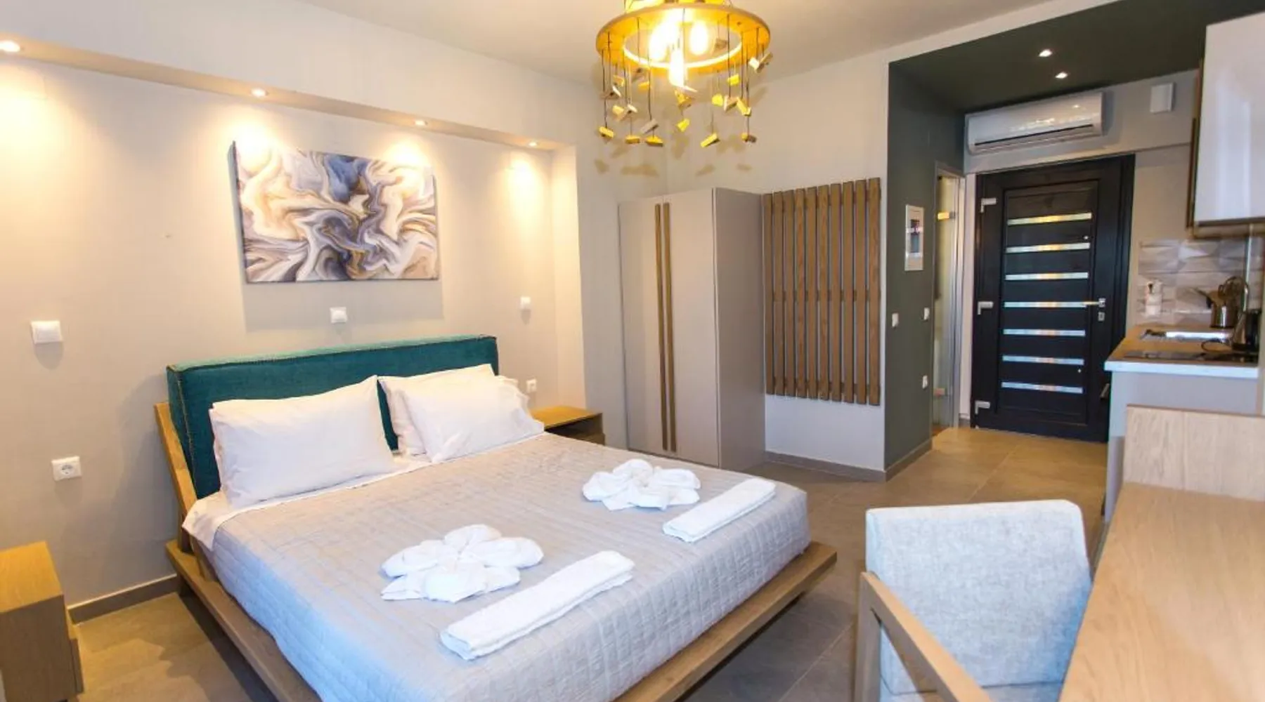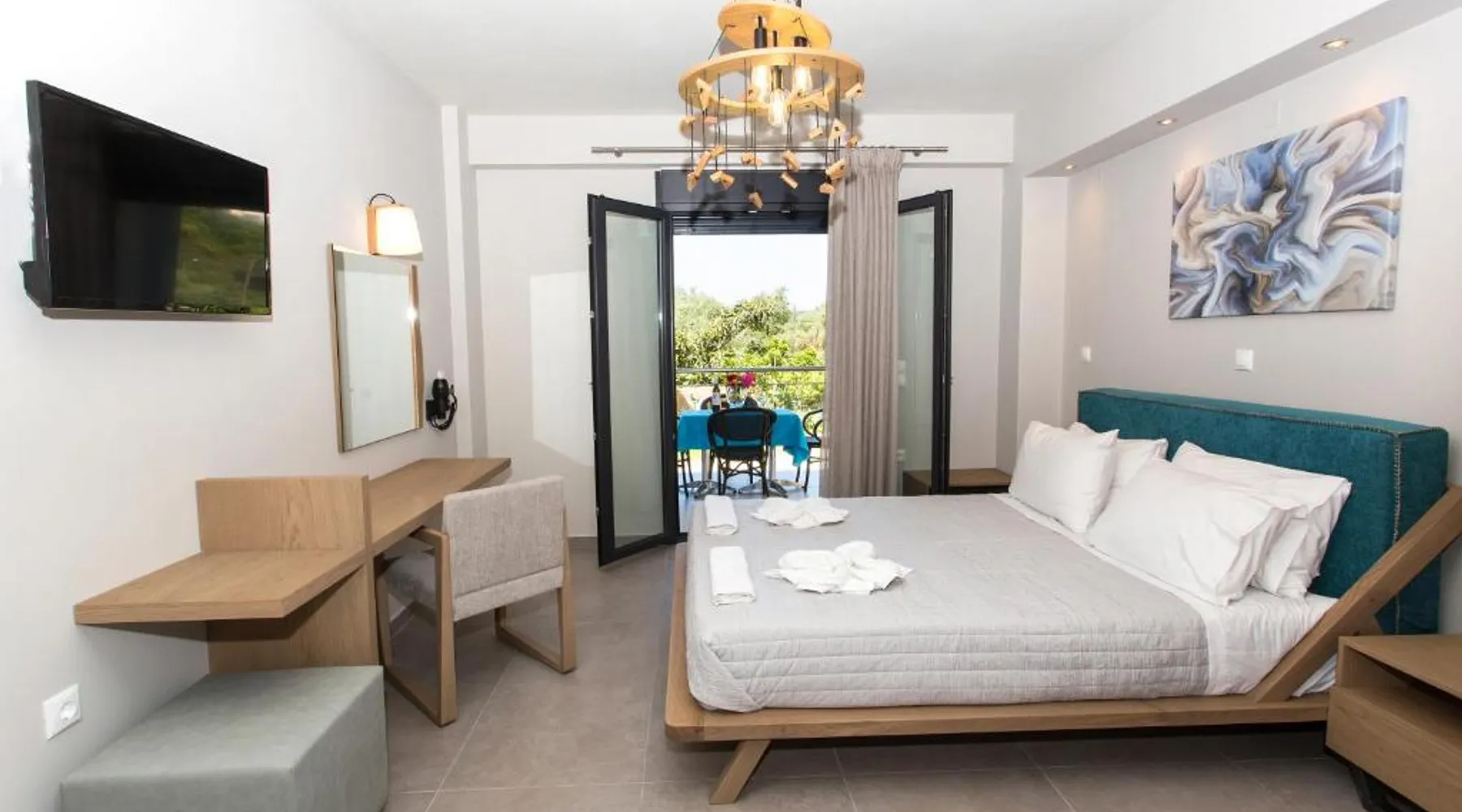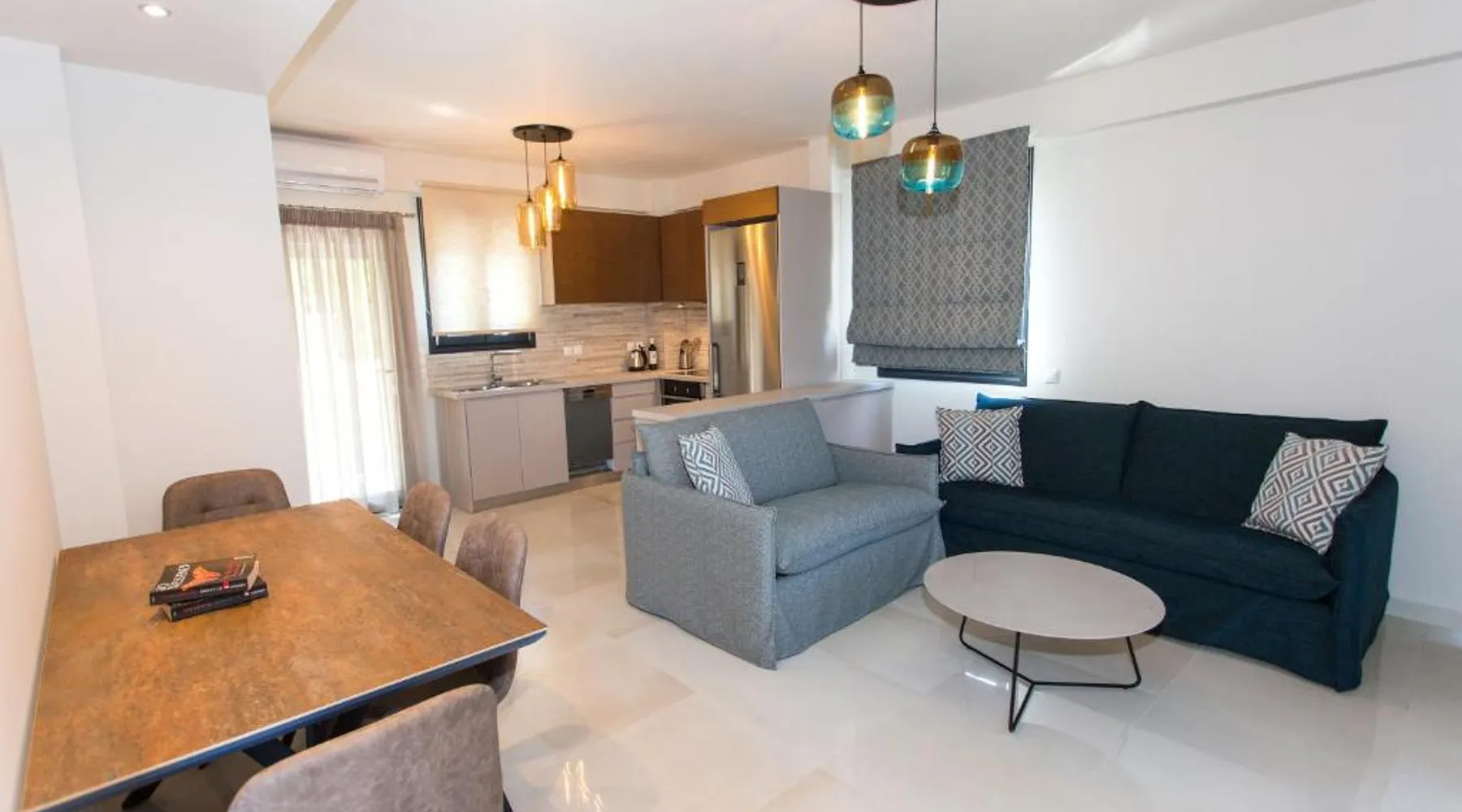 Central Location: Monline Maisonettes & Apartments in Parga offers a central location with a sun terrace and garden. Free WiFi is available throughout the property. Comfortable Accommodations: Each apartment features air-conditioning, a terrace or balcony, a private bathroom, and a fully equipped kitchen. Additional amenities include a sofa bed, dishwasher, and TV. Guest Services: The property provides housekeeping service, an outdoor seating area, and family rooms. Free on-site private parking is available. Nearby Attractions: Piso Krioneri Beach is an 8-minute walk away, while the Castle of Parga lies 1.2 mi from the apartment. Aktion Airport is 41 mi distant. This air-conditioned apartment includes 1 living room, 1 separate bedroom and 1 bathroom with a bath or a shower. In the well-fitted kitchen, guests will find a refrigerator, a dishwasher, kitchenware and an oven. Boasting a terrace, this apartment also offers a seating area, a wardrobe and a flat-screen TV. The unit has 2 beds.