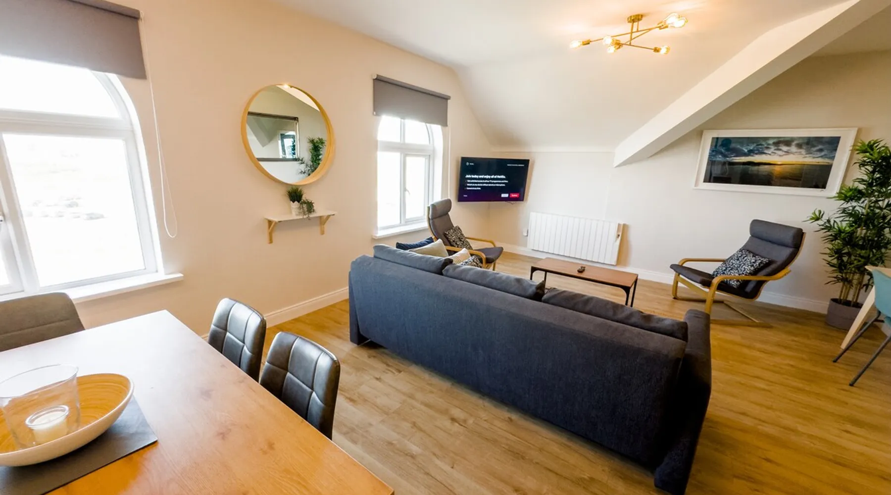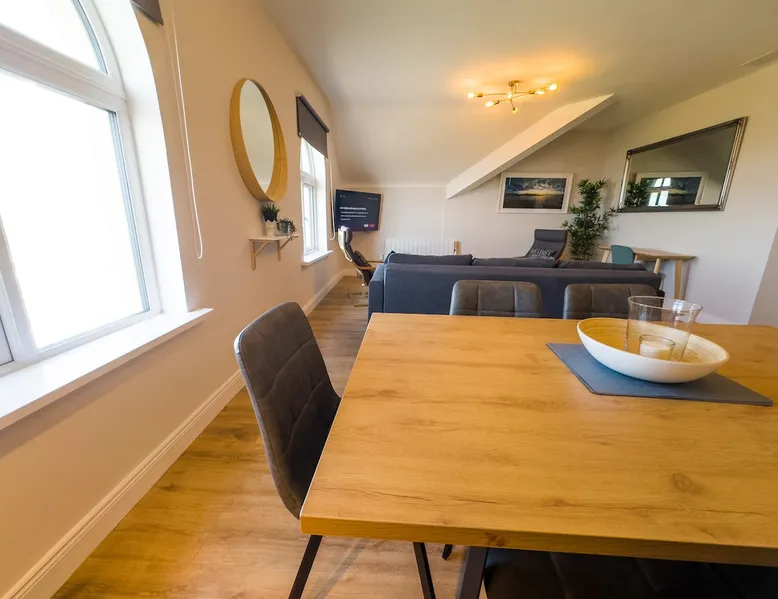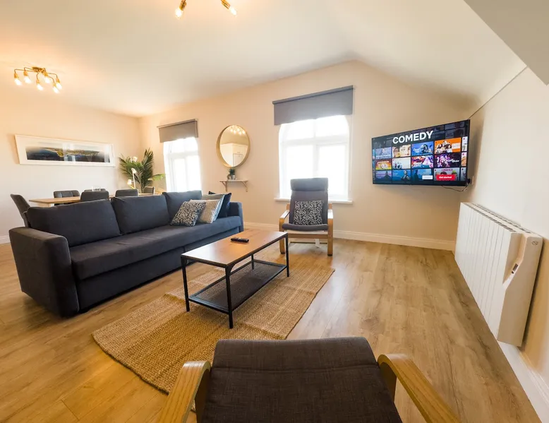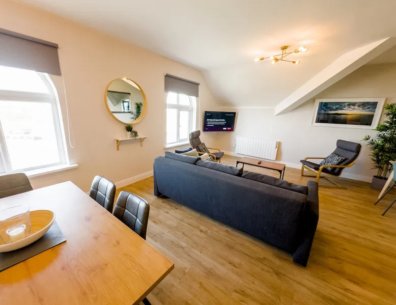 This modern penthouse apartment, finished to a very high standard, overlooks Main Beach in Bundoran. It's a spacious haven with contemporary fixtures, plush beds, and inviting furniture. Elegant and truly unique, there's no other spot like it in town. The space Indulge in this expansive two-bedroom penthouse apartment, thoughtfully remodelled and renovated to feature premium bathrooms, a state-of-the-art kitchen, and luxurious high-quality mattresses. Equipped with all the essentials for an opulent escape in Bundoran, it boasts breathtaking views overlooking the beach and extending all the way to Mullaghmore, while also overlooking and being just across the road from the amusement park and Main Beach. Plus, it's mere steps away from Roguey Rock and Waterworld for ultimate convenience. Guest access Guests have the entire flat to themselves. Other things to note To ensure a peaceful environment for all, we observe quiet hours from 9 PM to 10 AM and maintain a strict zero-tolerance policy for any unauthorised social gatherings. We also do not permit unauthorised guests to visit the property, meaning only those registered for check-in may enter the apartment. Please note that this apartment does not have a bathtub; each bathroom is equipped with a shower only. We utilise a pre-check-in guide for your convenience. You'll receive a link to our in-house guest portal, which contains all the essential details for locating us and completing check-in. We're available on call throughout your stay, so feel free to contact us anytime if you need assistance. Please be aware that we require a €300 Security Authorisation during your stay, which is fully released upon checkout. This authorisation is processed securely through our internal guest portal app, where you'll need to provide your payment details to complete it prior to check-in. Unlike a traditional deposit, this authorisation doesn't deduct any funds from your account—it's simply a temporary hold placed by your bank for the duration of your visit. We implement this measure in rare instances of antisocial behaviour, property damage requiring insurance claims or extra cleaning costs, or breaches of our terms and conditions.