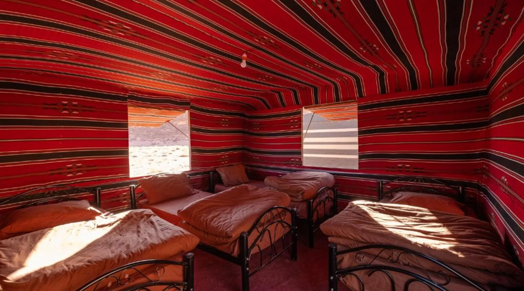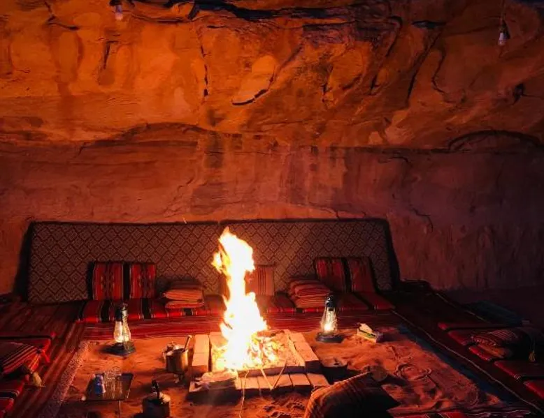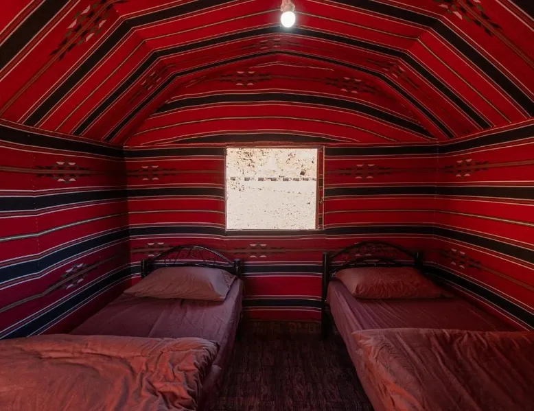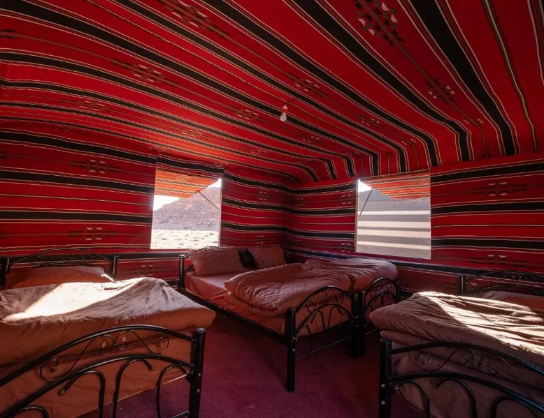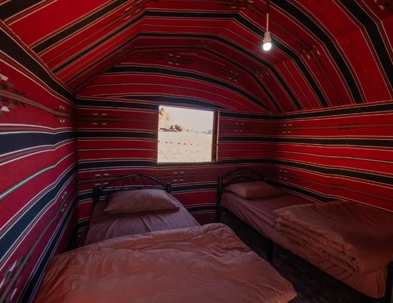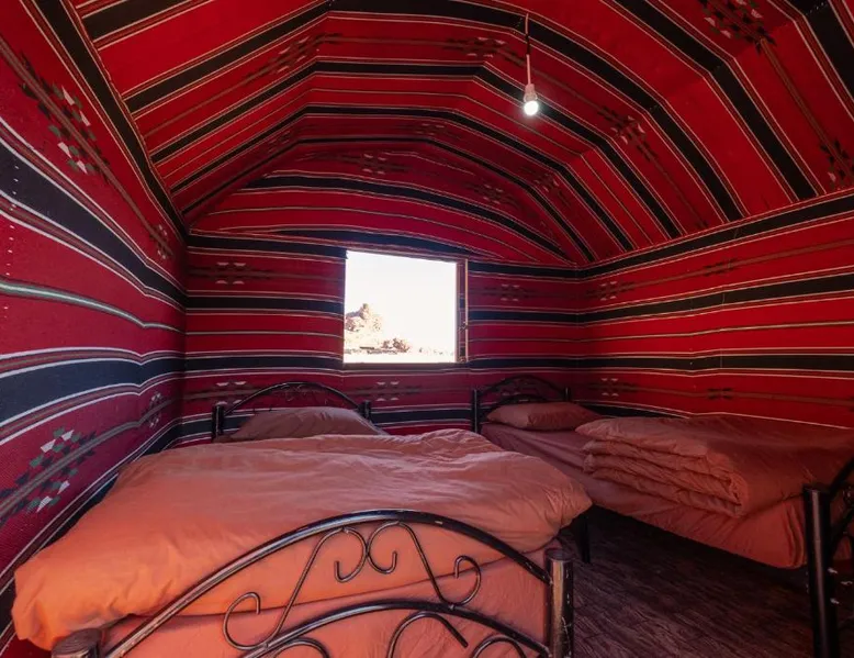 Accommodations Features: Wadi Rum Trail in Wadi Rum Village offers family rooms with private bathrooms. Each unit includes a dining area, seating space, and carpeted floors. Amenities and Services: Guests enjoy free parking, a fireplace, barbecue, and mountain views. The property is pet-friendly and provides a buffet breakfast with vegetarian and halal options. Location and Attractions: Located 45 mi from King Hussein International Airport, the camping site offers easy access to local attractions. Highly rated by guests for its facilities and services. The fireplace is a top feature of this double room. The double room features a seating area and a dining area, as well as a shared bathroom boasting a shower. The unit has 2 beds.