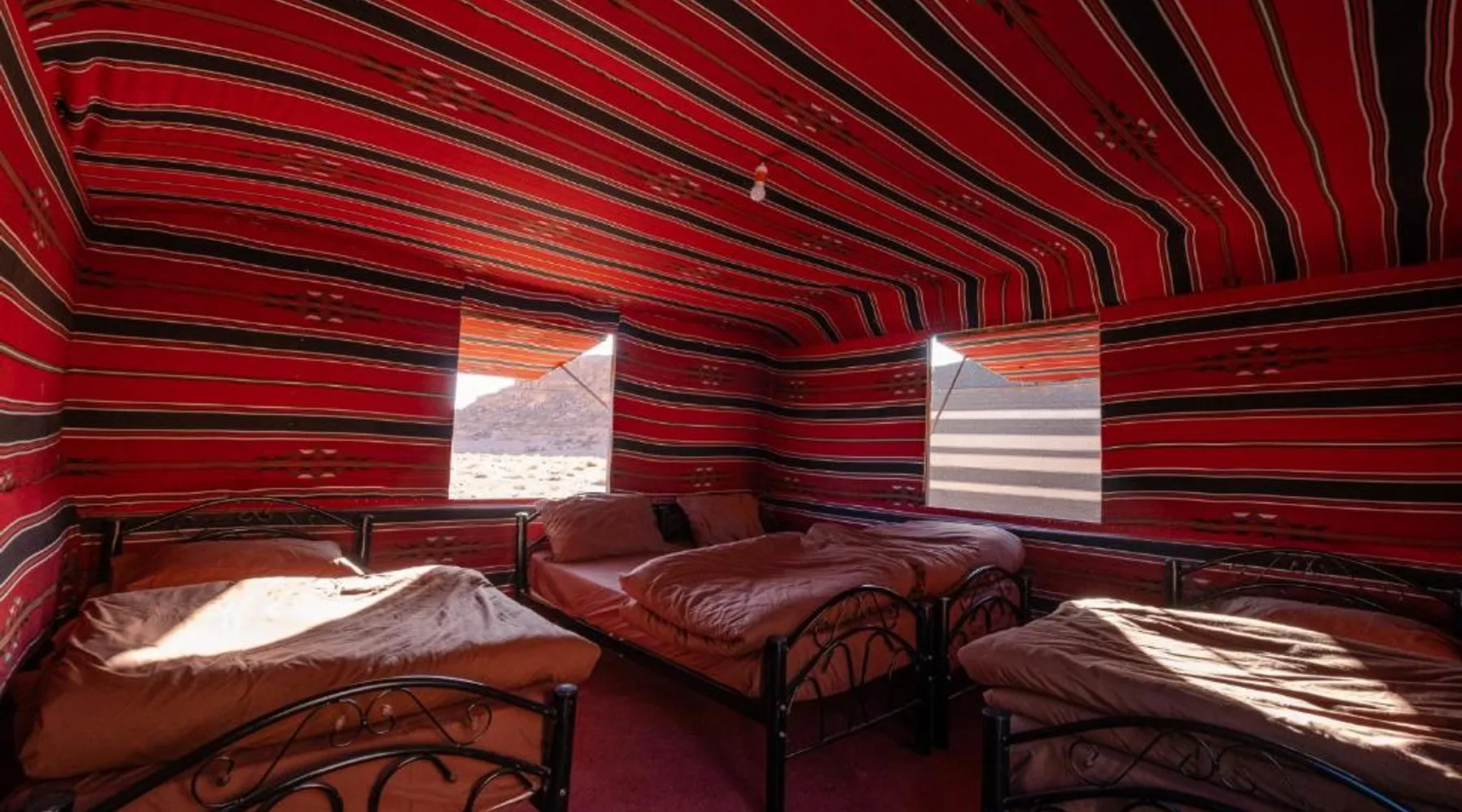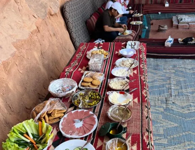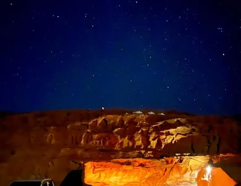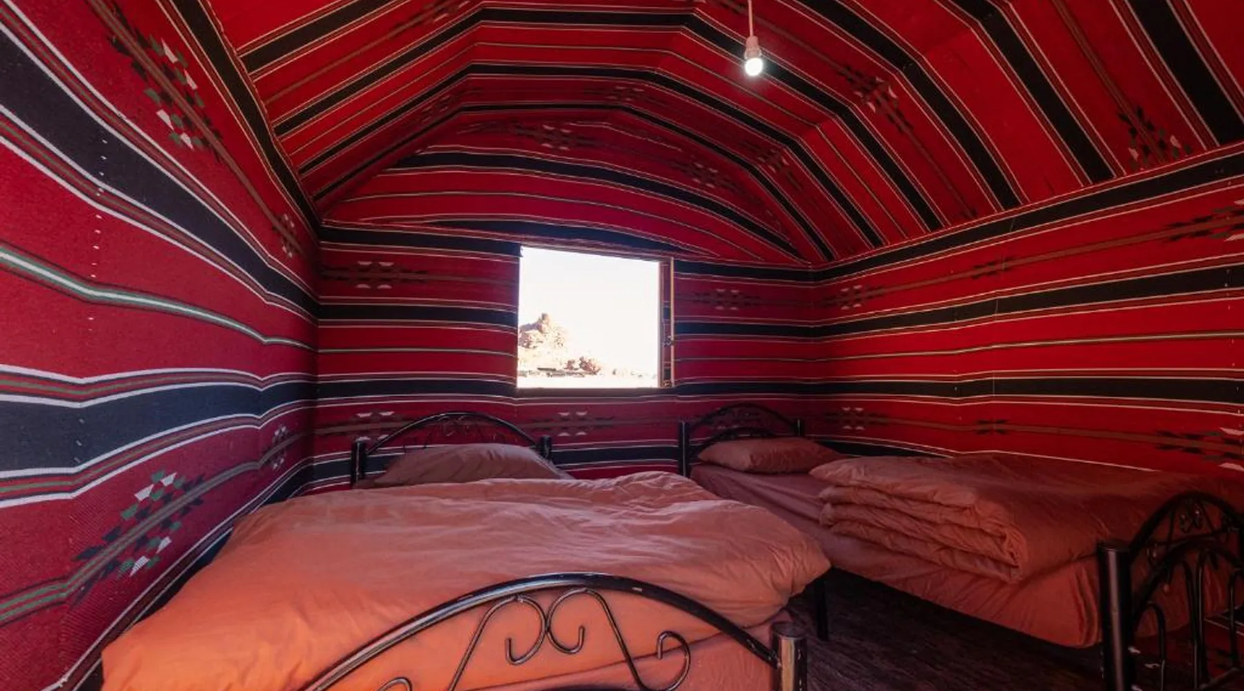 Accommodations Features: Wadi Rum Trail in Wadi Rum Village offers family rooms with private bathrooms. Each unit includes a dining area, seating space, and carpeted floors. Amenities and Services: Guests enjoy free parking, a fireplace, barbecue, and mountain views. The property is pet-friendly and provides a buffet breakfast with vegetarian and halal options. Location and Attractions: Located 45 mi from King Hussein International Airport, the camping site offers easy access to local attractions. Highly rated by guests for its facilities and services. The fireplace is a top feature of this double room. The double room features a seating area and a dining area, as well as a shared bathroom boasting a shower. The unit has 2 beds.