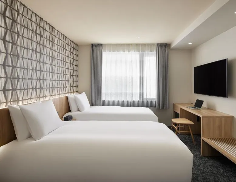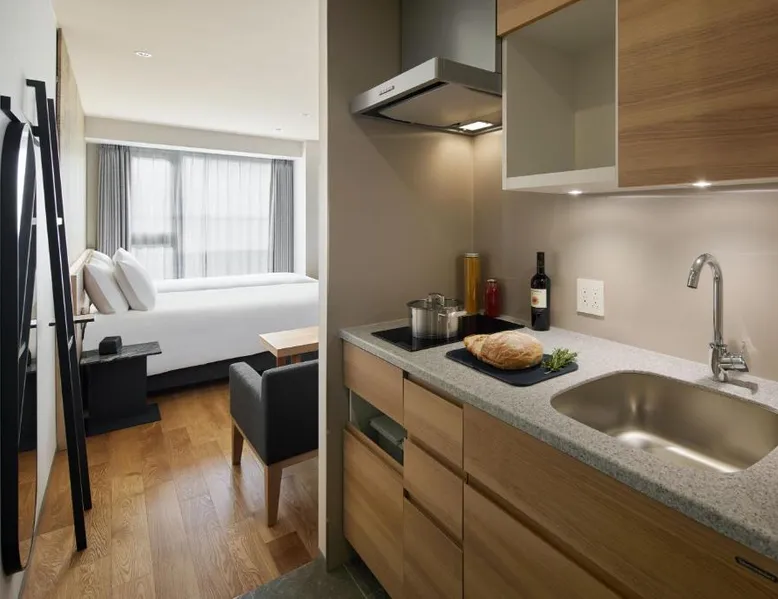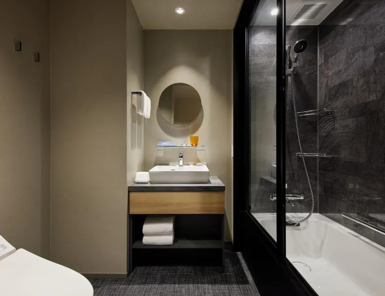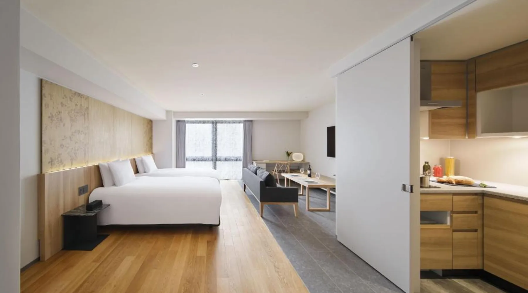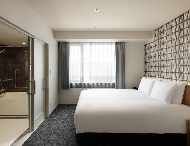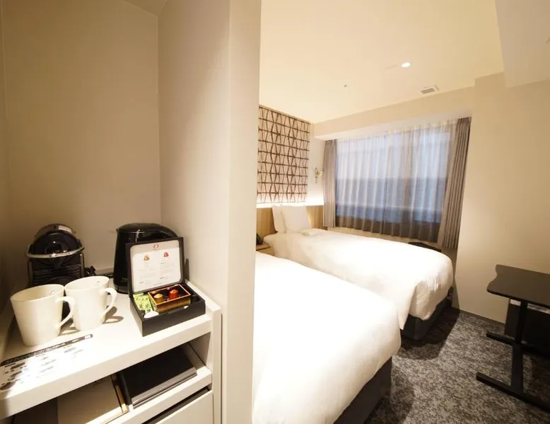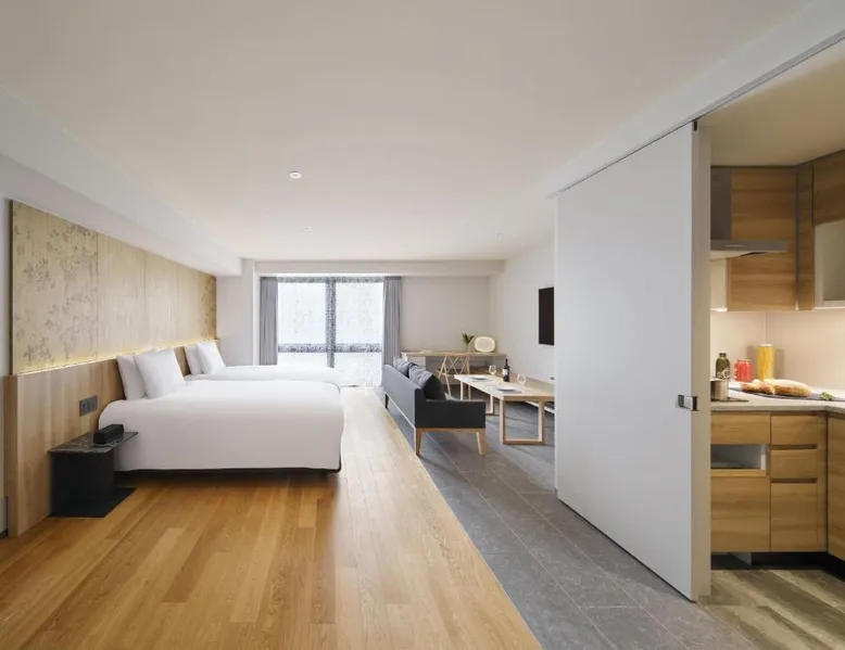 Comfortable Accommodations: Oakwood Hotel Oike Kyoto in Kyoto offers comfortable rooms with air-conditioning, private bathrooms, and modern amenities. Guests appreciate the room comfort and cleanliness. Essential Facilities: The hotel provides free WiFi, a lounge, elevator, 24-hour front desk, concierge service, child-friendly buffet, coffee shop, full-day security, bike hire, and luggage storage. Dining Options: Breakfast includes continental, buffet, and Asian selections with local specialties and warm dishes. Prime Location: Located 29 mi from Itami Airport, the hotel is near Kyoto International Manga Museum (7-minute walk), Samurai Kembu Kyoto (0.6 mi), and Gion Shijo Station (17-minute walk). Highly rated for its convenient location. Offering free toiletries and bathrobes, this studio includes a private bathroom with a shower, a bidet and a hairdryer. In the fully equipped kitchen, guests will find a stovetop, a refrigerator, kitchenware and a microwave. The air-conditioned studio offers a flat-screen TV with cable channels, a washing machine, a tea and coffee maker, a seating area as well as city views. The unit has 2 beds.