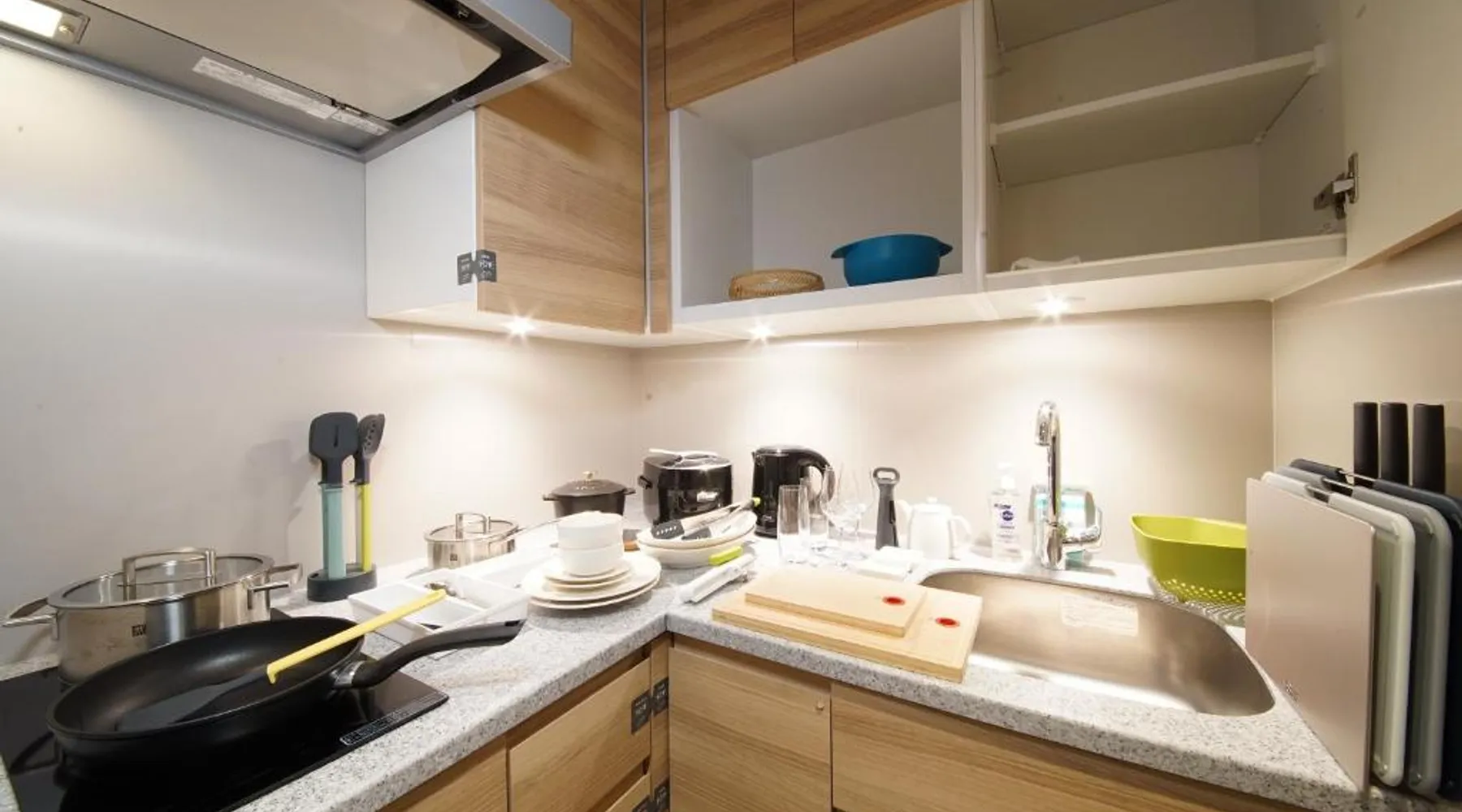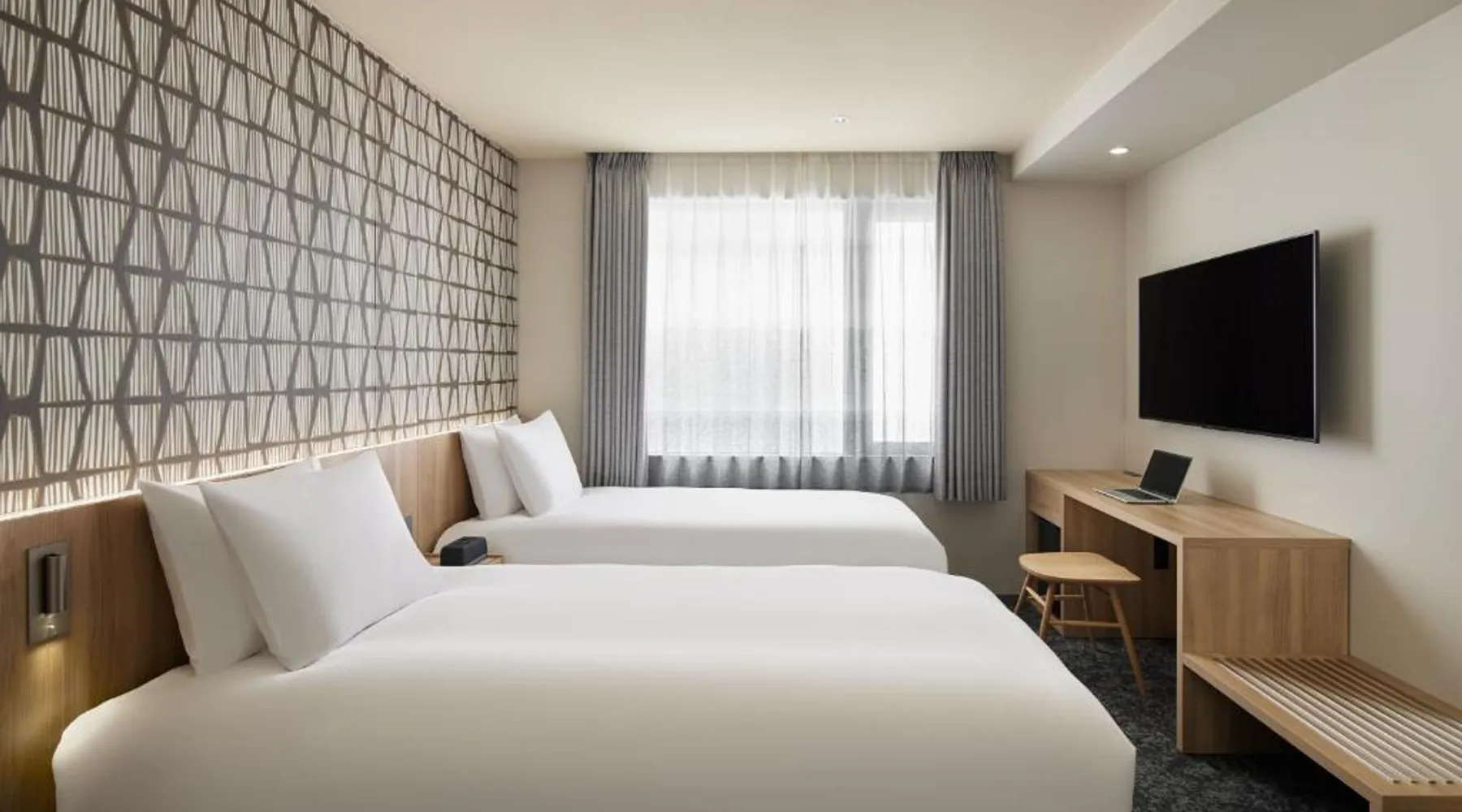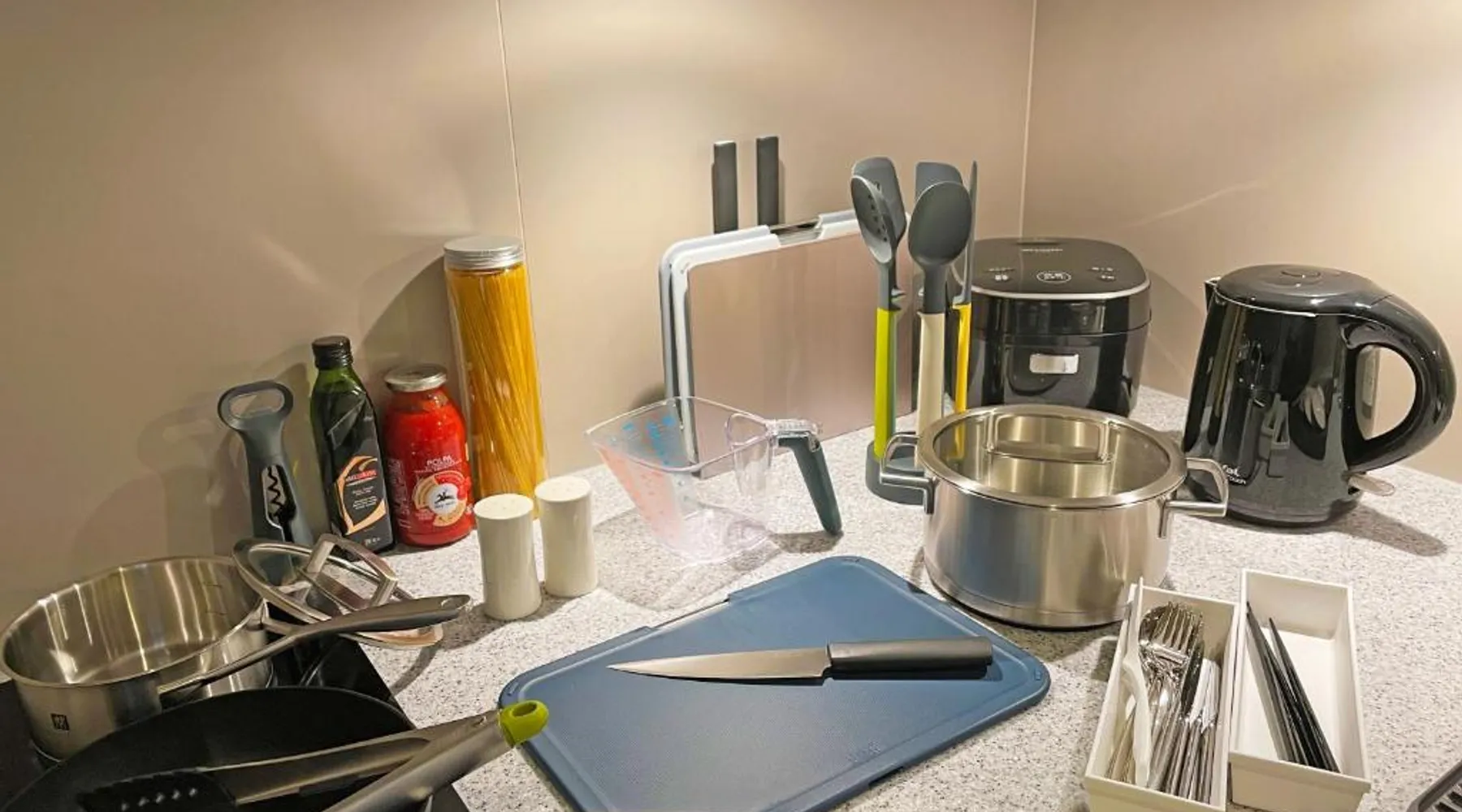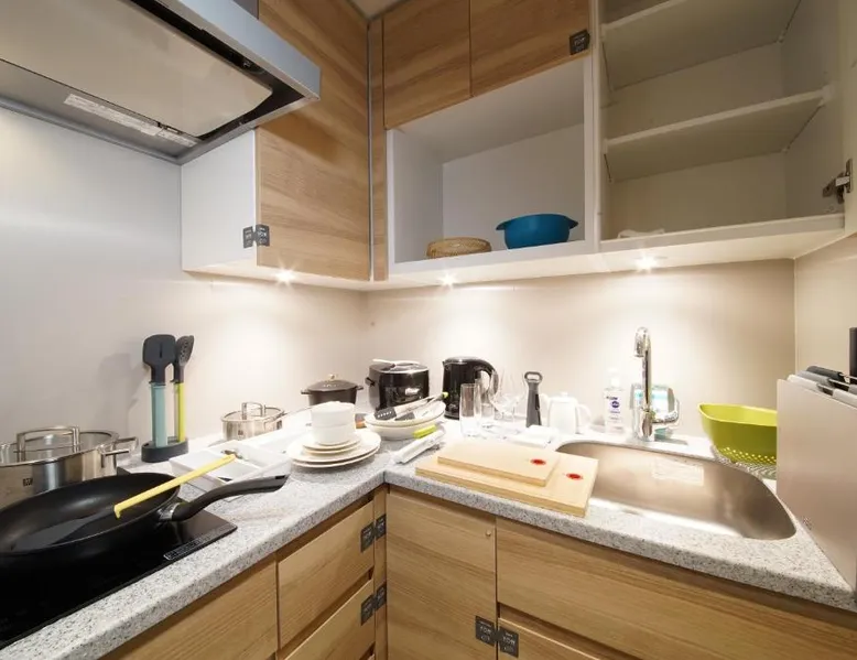 Comfortable Accommodations: Oakwood Hotel Oike Kyoto in Kyoto offers comfortable rooms with air-conditioning, private bathrooms, and modern amenities. Guests appreciate the room comfort and cleanliness. Essential Facilities: The hotel provides free WiFi, a lounge, elevator, 24-hour front desk, concierge service, child-friendly buffet, coffee shop, full-day security, bike hire, and luggage storage. Dining Options: Breakfast includes continental, buffet, and Asian selections with local specialties and warm dishes. Prime Location: Located 29 mi from Itami Airport, the hotel is near Kyoto International Manga Museum (7-minute walk), Samurai Kembu Kyoto (0.6 mi), and Gion Shijo Station (17-minute walk). Highly rated for its convenient location. Offering free toiletries and bathrobes, this studio includes a private bathroom with a shower, a bidet and a hairdryer. In the fully equipped kitchen, guests will find a stovetop, a refrigerator, kitchenware and a microwave. The air-conditioned studio offers a flat-screen TV with cable channels, a washing machine, a tea and coffee maker, a seating area as well as city views. The unit has 2 beds.
