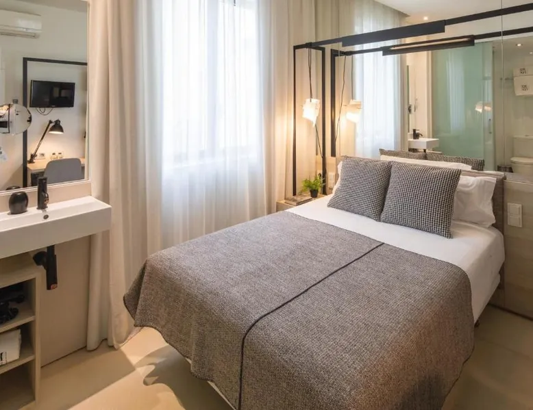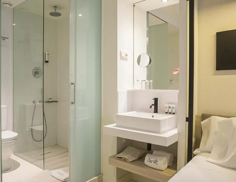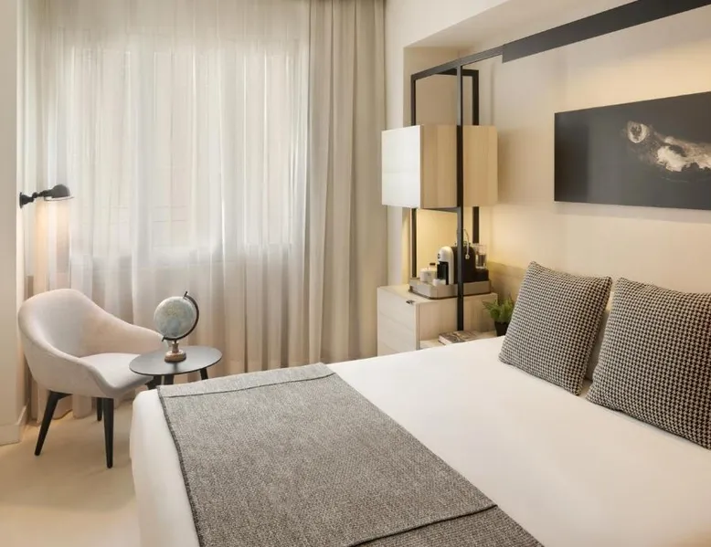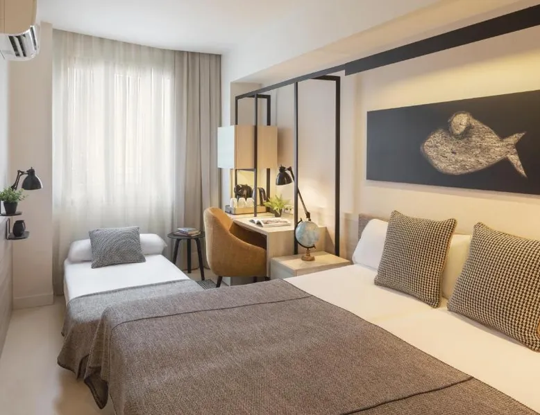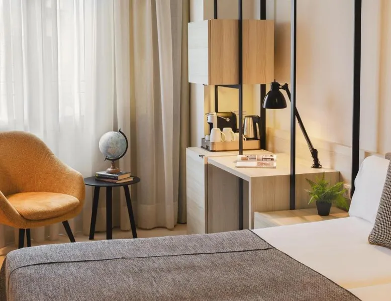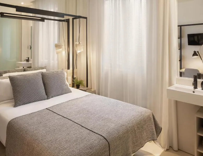 Centrally located in the enchanting Gothic Quarter, close to Plaza Catalunya Square and the Ramblas, this fresh and modern hotel features design rooms and a 24-hour coffee and drinks service in the lobby. The Denit offers the chance to enjoy fun and contemporary design. You can enjoy the soothing, calm atmosphere of the bedrooms created by the fresh mix of pale wood and white furnishings. Sleep soundly in the Denit’s soundproof rooms. They include free Wi-Fi, a plasma-screen TV and an iPod dock. Start your day with a fantastic continental breakfast where the modern décor continues along with a tasty selection of cold dishes to prepare you for the busy day ahead. Explore the vibrant city by foot, with most attractions just a short walk form the Denit’s entrance. Soak up the Medieval atmosphere of the hotel’s immediate surroundings. This modern double room includes air-conditioning, a TV, and a private bathroom with free toiletries and a hairdryer. Extra beds cannot be added to this room.