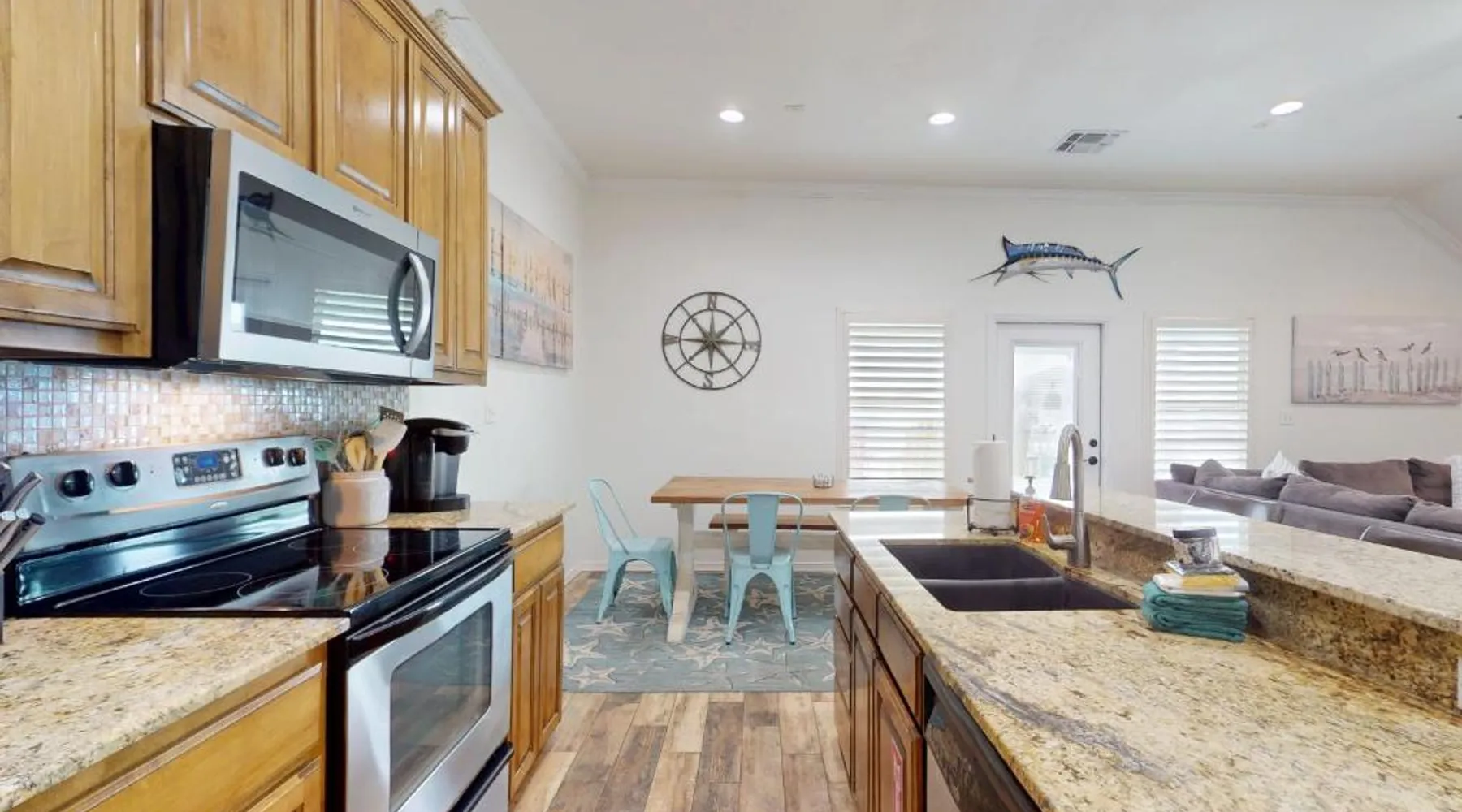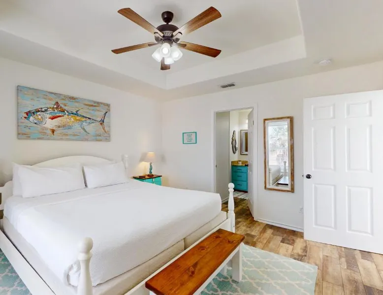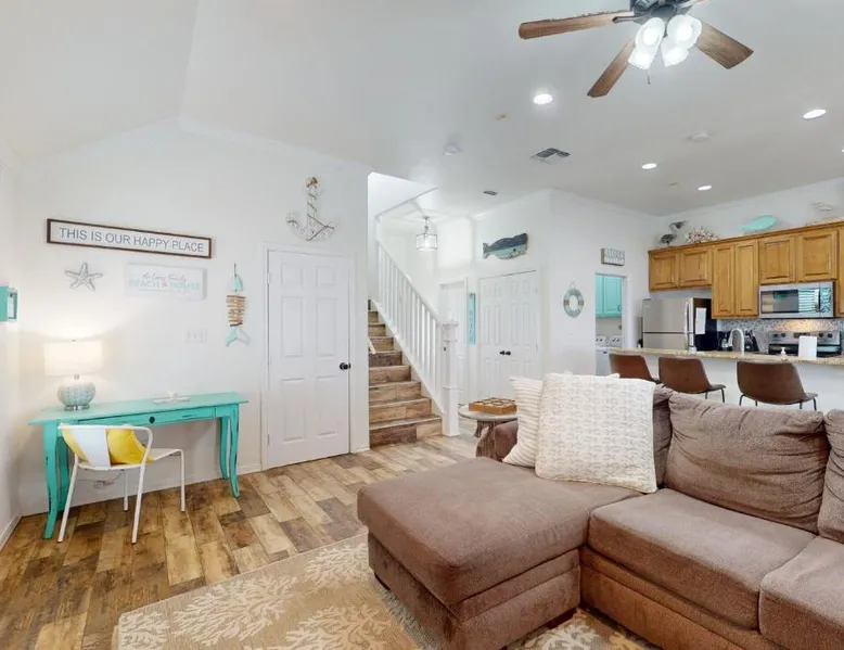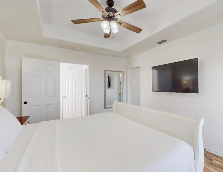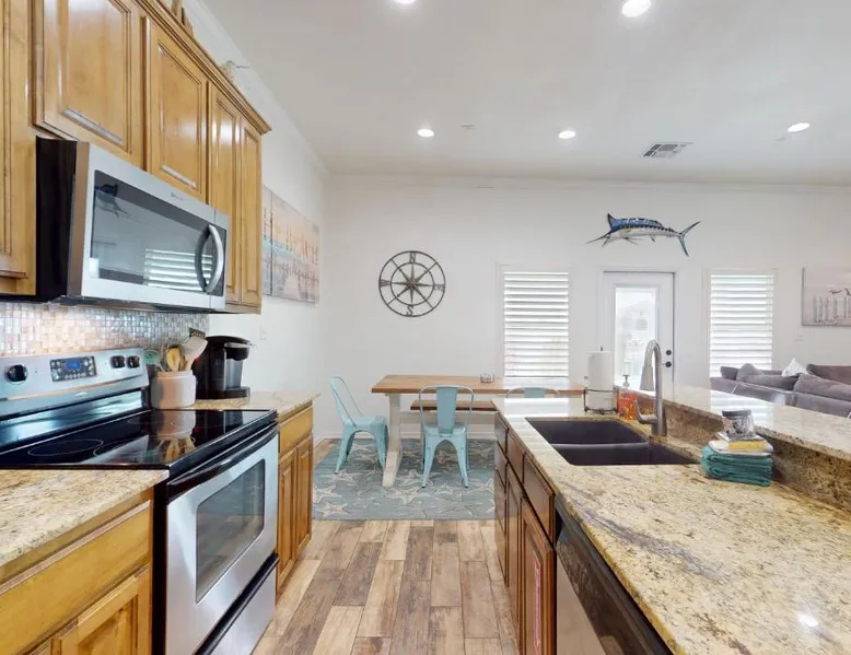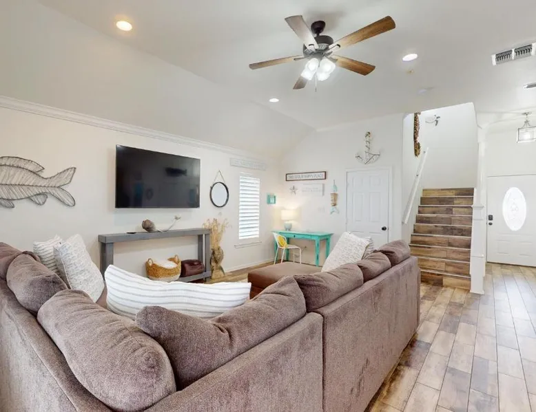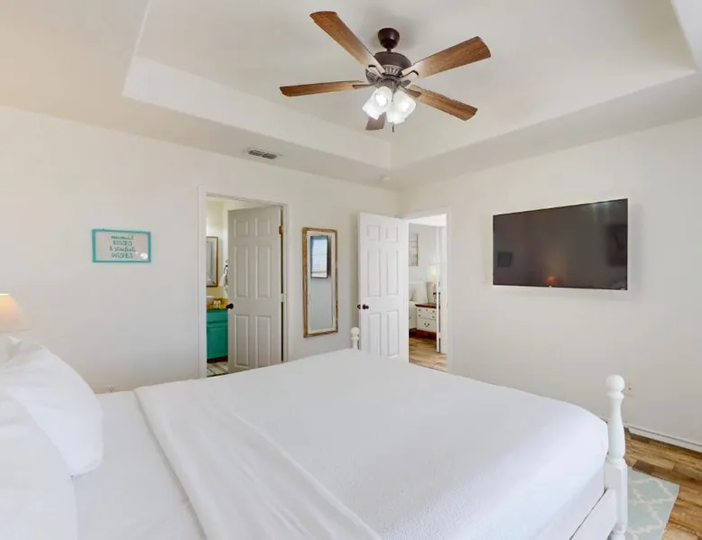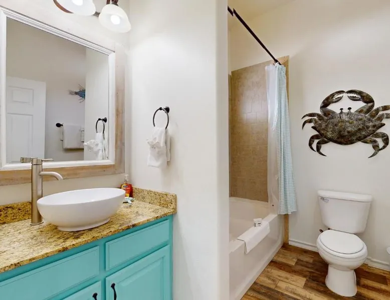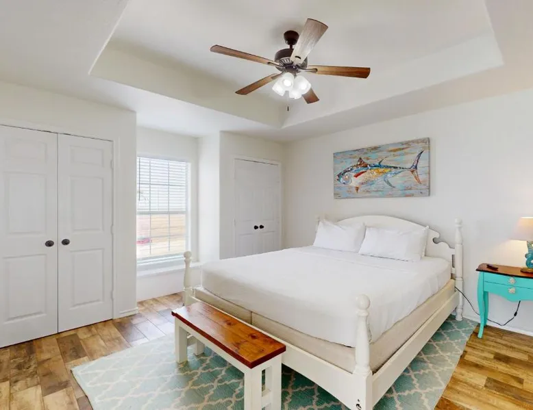 Spacious Holiday Home in Padre Island: Bella Vista #25 offers a spacious setting with three bedrooms and two bathrooms. The property features a private entrance and a terrace, balcony, and patio for relaxation. Exceptional Facilities: Guests can enjoy an outdoor swimming pool, hot tub, and outdoor seating area. Additional amenities include a picnic area, barbecue, and outdoor dining area. Comfortable Living Spaces: The holiday home is equipped with air-conditioning, a fully fitted kitchen, washing machine, and free toiletries. The living area includes a sofa bed, dining table, and work desk. Nearby Attractions: Located 29 mi from Corpus Christi International Airport, the property is close to Bob Hall Pier (11 mi), Mustang Island State Park (3.7 mi), and Port Aransas Marina (11 mi). Cycling activities are available. Boasting a private entrance, this spacious holiday home also comes with 3 bedrooms, a seating area and 2 bathrooms with a bath and a shower. Guests will find a stovetop, a refrigerator, a dishwasher and kitchenware in the fully equipped kitchen. The holiday home also includes a barbecue. The air-conditioned holiday home features a TV, a washing machine, a tea and coffee maker, a dining area as well as pool views. The unit has 5 beds.
