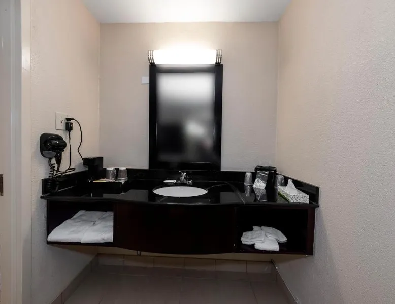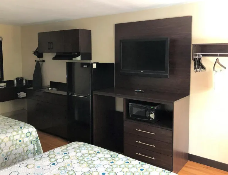 Comfortable Accommodations: HomeTowne Studios by Red Roof Bordentown - McGuire AFB in Bordentown offers air-conditioned rooms with kitchenettes, private bathrooms, and free WiFi. Each room includes a work desk, TV, and free toiletries. Leisure Facilities: Guests can enjoy a seasonal outdoor swimming pool and a picnic area. The property also features a minimarket and bicycle parking, providing additional amenities for relaxation and convenience. Convenient Location: Located 13 mi from Trenton-Mercer Airport, the motel is 15 mi from Sesame Place, 18 mi from Princeton University, and 21 mi from Six Flags Great Adventure & Wild Safari. Free on-site private parking is available. Featuring free toiletries, this double room includes a private bathroom with a bath, a shower and a hairdryer. The double room's kitchenette, which features a refrigerator and a microwave, is available for cooking and storing food. This double room has air conditioning, heating and a flat-screen TV with cable channels. The unit has 2 beds.