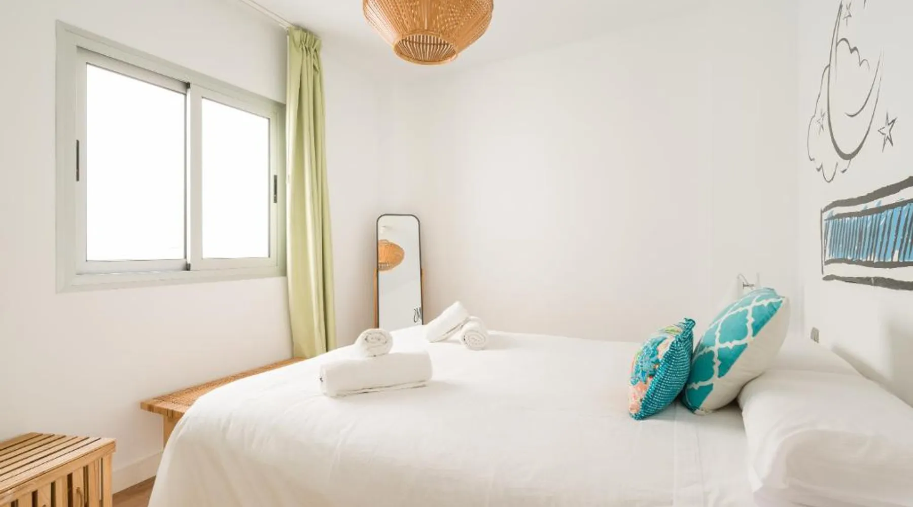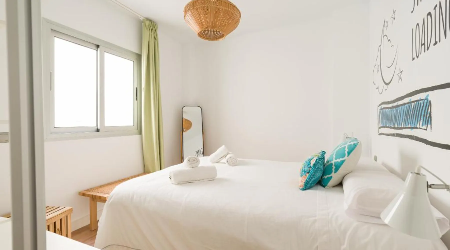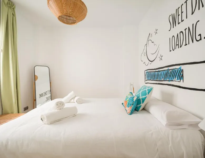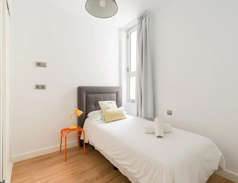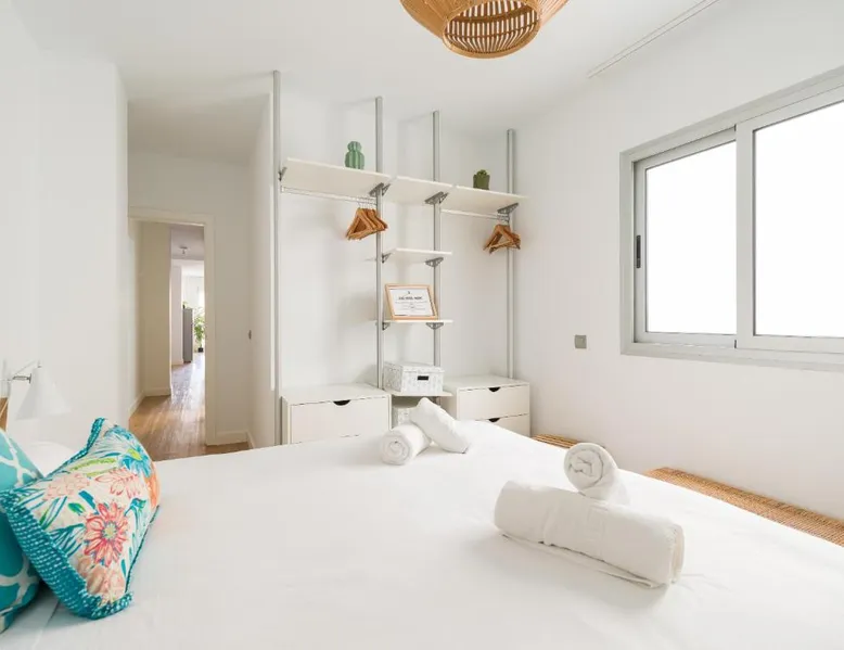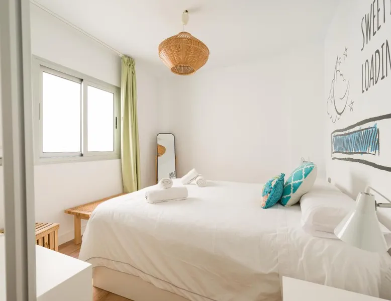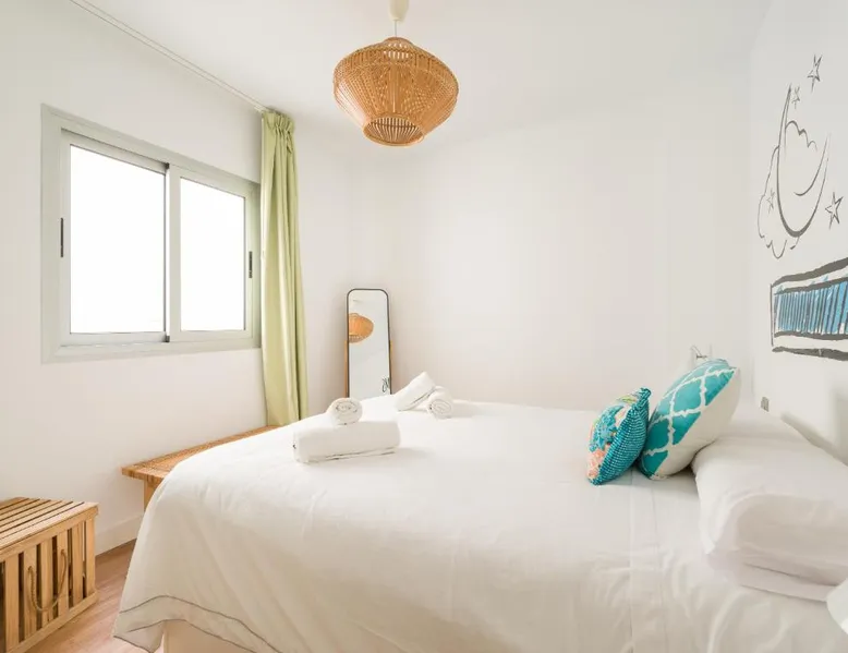 Comfortable Accommodations: Las Canteras Beach Apartment Sagasta in Las Palmas de Gran Canaria offers two bedrooms and a living room. The apartment includes a kitchenette, washing machine, and free WiFi. Modern Amenities: Guests benefit from a elevator, family rooms, and a fully equipped kitchen with a coffee machine, microwave, and oven. Additional features include a dining area, sofa bed, and parquet floors. Prime Location: Located a few steps from Las Canteras Beach and less than 0.6 mi from Poema Del Mar Aquarium. Gran Canaria Airport is 16 mi away. Nearby attractions include Parque de Santa Catalina and Parque Romano. Guest Satisfaction: Highly rated by guests for its excellent facilities and proximity to key points of interest. This apartment features 1 living room, 2 separate bedrooms and 1 bathroom with a shower and free toiletries. In the well-fitted kitchen, guests will find a stovetop, a refrigerator, kitchenware and an oven. The apartment has parquet floors, a seating area with a flat-screen TV, a washing machine, a coffee machine as well as a quiet street view. The unit has 3 beds.