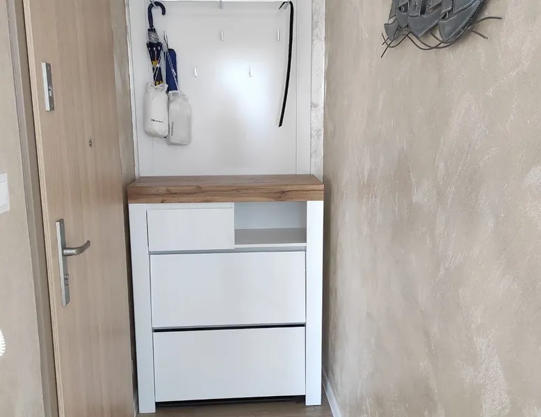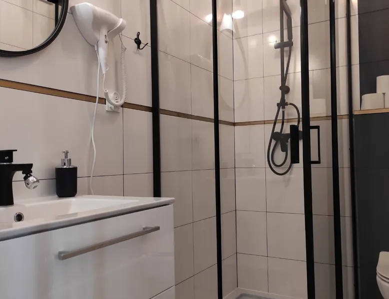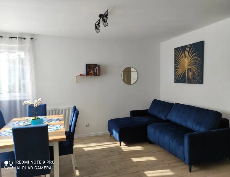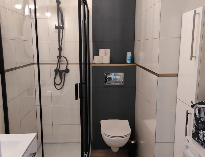 The 3-room apartment, located on the high ground floor, with an area of 50 m2 and a high standard of finish, consists of a living room with a kitchenette, two bedrooms, a bathroom and two balconies (at the kitchenette and in the larger bedroom). We also have a private parking space in the garage hall located under the building with direct access to the elevator.