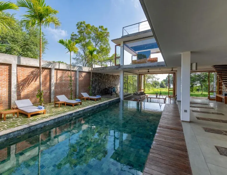 Comfortable Accommodations: Arachchi Heritage in Anuradhapura offers family rooms with private bathrooms, air-conditioning, and modern amenities. Guests enjoy free WiFi, a private balcony with scenic views, and a work desk. Exceptional Facilities: The hotel features an infinity swimming pool, spa facilities, sun terrace, and open-air bath. Additional amenities include a fitness center, yoga classes, and a tour desk. Free airport shuttle service is available from Sigiriya Airport, 45 mi away. Dining Experience: A family-friendly restaurant serves local specialties, vegetarian, and halal options. Breakfast includes continental and vegetarian selections with warm dishes, pancakes, and fresh fruits. The bar offers a variety of beverages in a relaxed setting. Prime Location: Located in the city center, Arachchi Heritage is near attractions such as Kumbichchan Kulama Tank (2.5 mi) and Jaya Sri Maha Bodhi (3.7 mi). Guests appreciate the scenic views and proximity to local landmarks. The pool with a view is the standout feature of this double room. The spacious double room features air conditioning, a dining area, a terrace with garden views as well as a private bathroom boasting a bath. The unit has 2 beds.