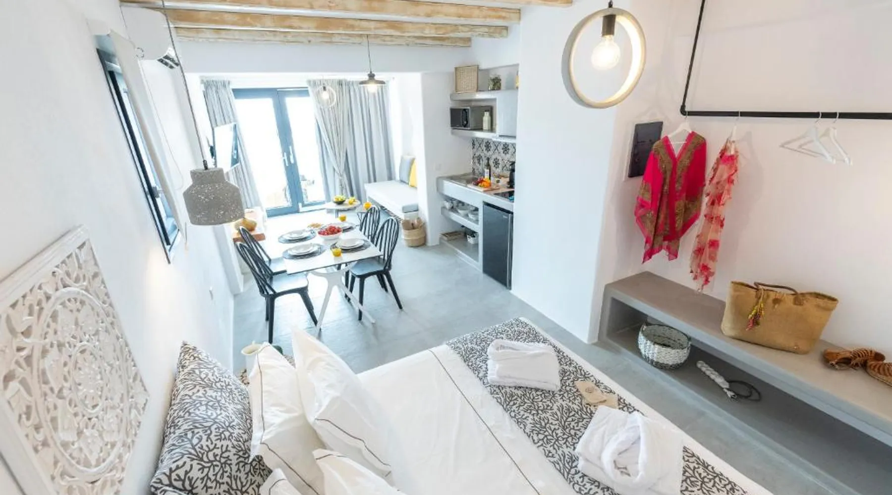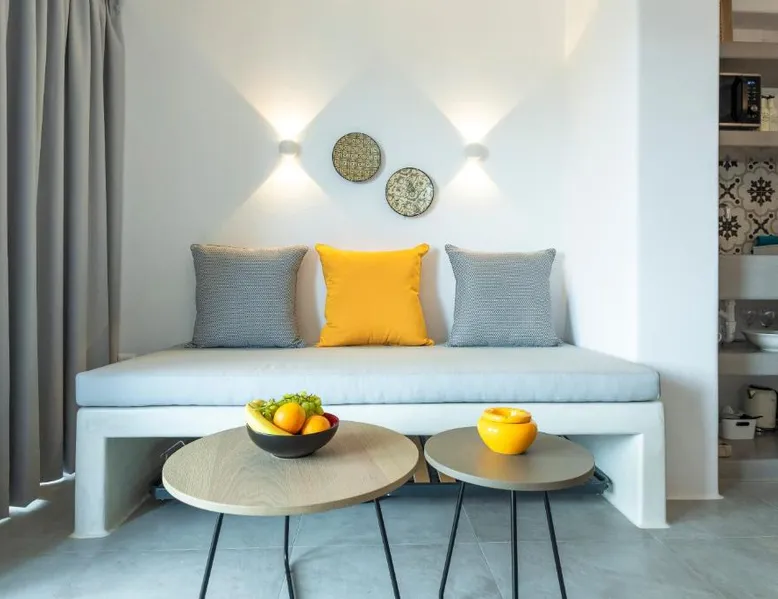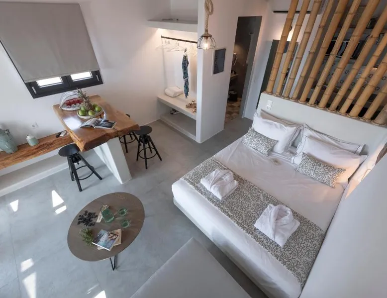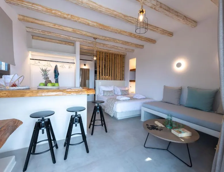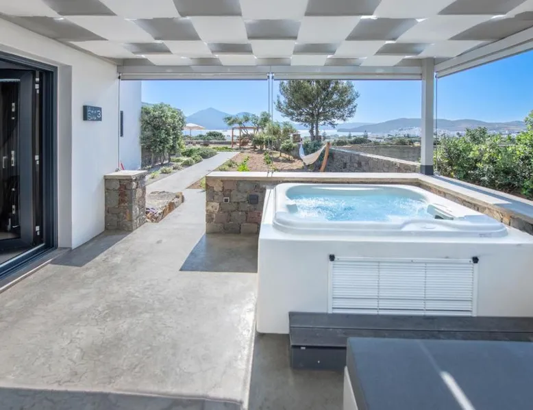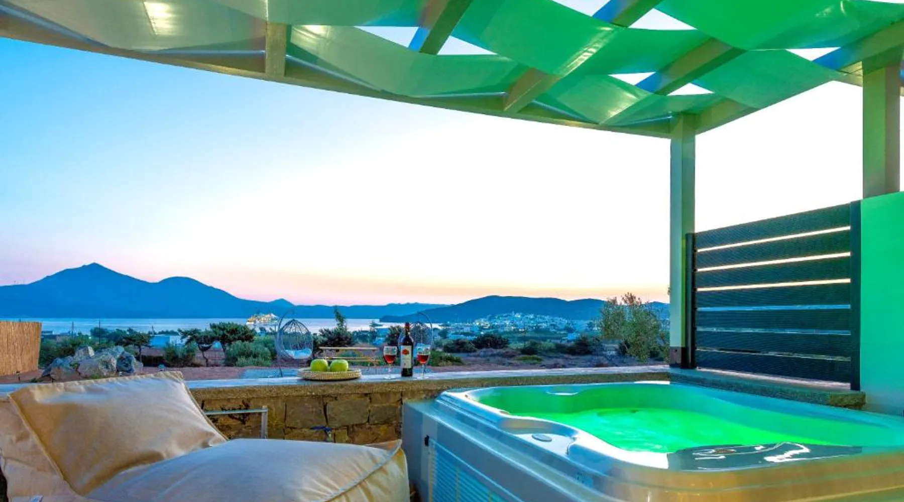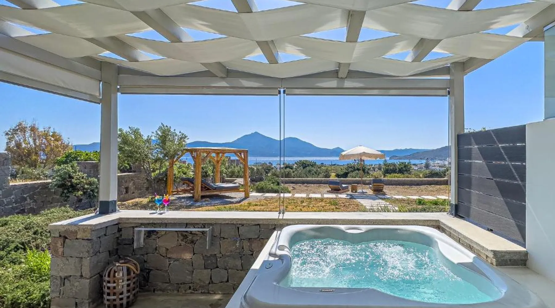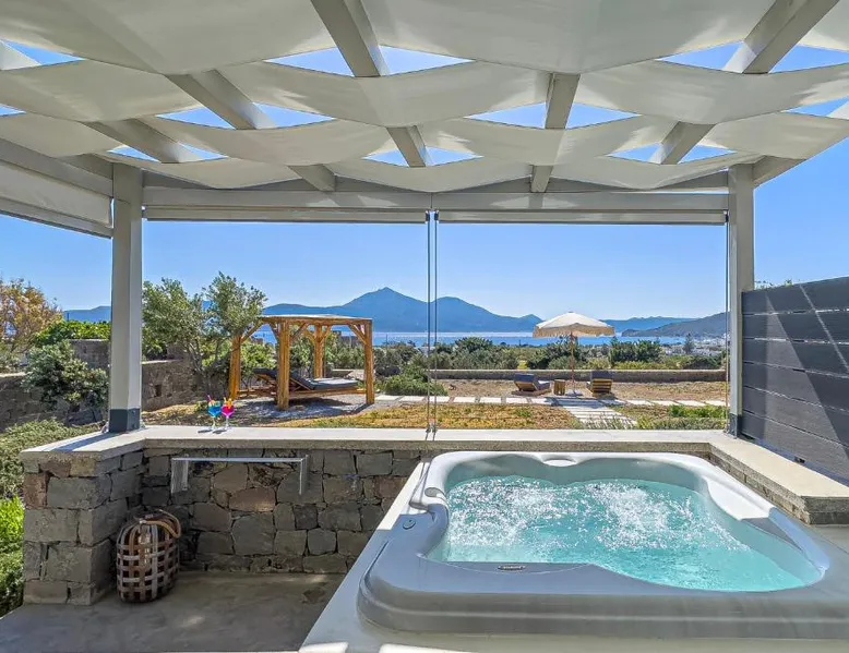Comfortable Accommodations: Aelia Suites in Milos offers a sun terrace, garden, and free WiFi. Each apartment features air-conditioning, a balcony, and a private bathroom. Modern Amenities: Guests enjoy sea views, a kitchenette, and a hot tub. Additional facilities include a private pool, terrace, and outdoor seating area. Convenient Location: Located 2.5 mi from Milos Island National Airport, the property is near Papikinou Beach (less than 0.6 mi) and the Milos Mining Museum (16-minute walk). Highly Rated Experience: Guests appreciate the hot tub, attentive host, and easy beach access. This suite's standout features are the private pool and hot tub. Boasting a private entrance, this air-conditioned suite includes 1 living room, 1 separate bedroom and 1 bathroom with a shower and a hairdryer. Guests can make meals in the kitchen that has a stovetop, a refrigerator, kitchenware and a microwave. Featuring a terrace with sea views, this suite also offers soundproof walls and a flat-screen TV. The unit has 2 beds.