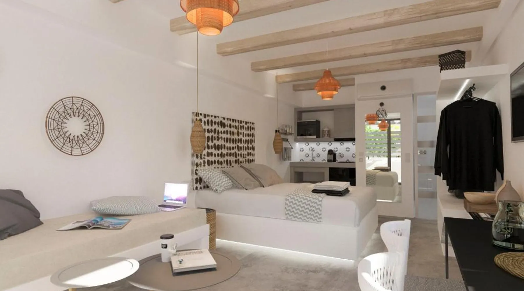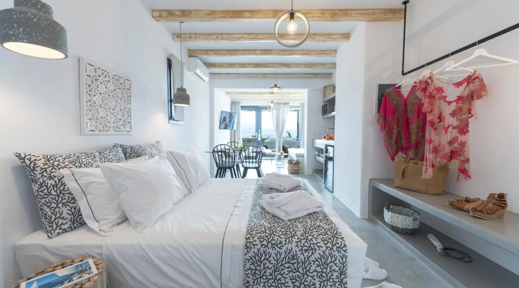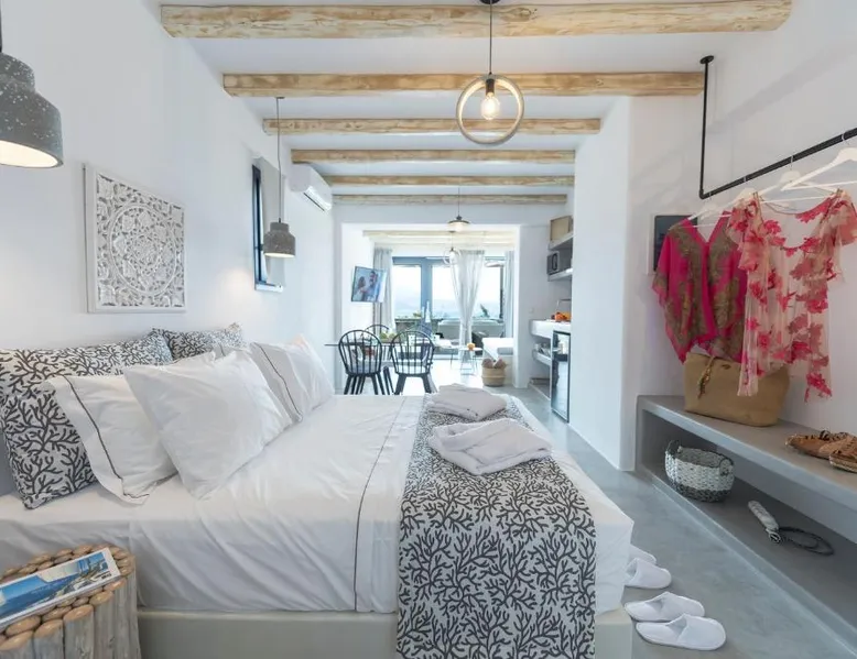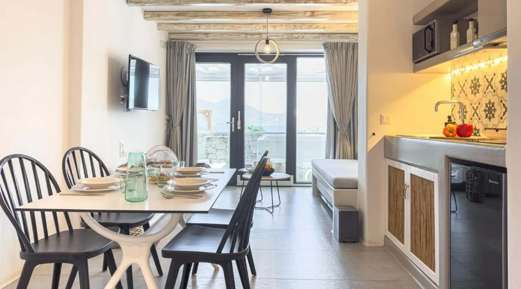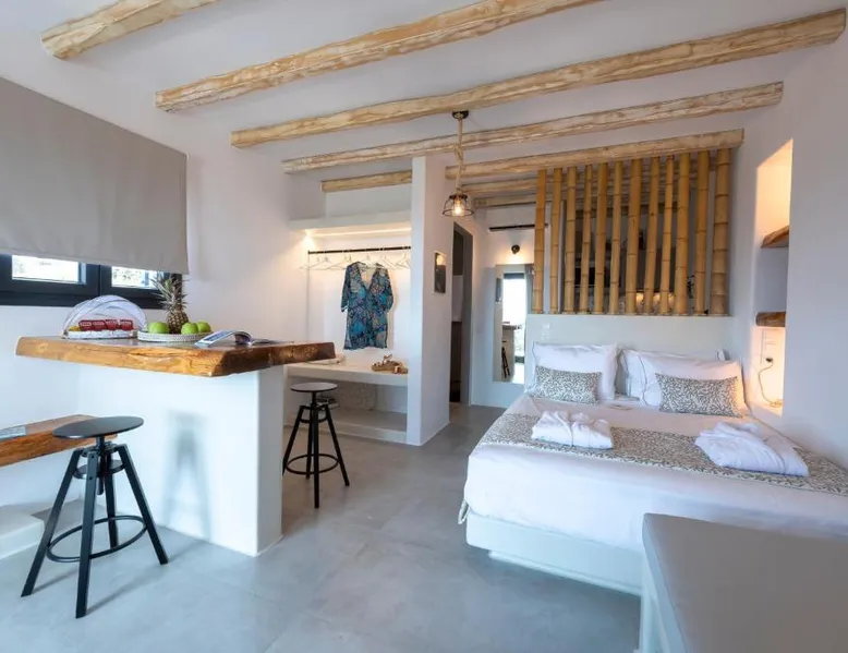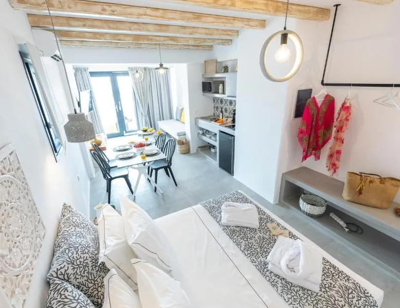Comfortable Accommodations: Aelia Suites in Milos offers a sun terrace, garden, and free WiFi. Each apartment features air-conditioning, a balcony, and a private bathroom. Modern Amenities: Guests enjoy sea views, a kitchenette, and a hot tub. Additional facilities include a private pool, terrace, and outdoor seating area. Convenient Location: Located 2.5 mi from Milos Island National Airport, the property is near Papikinou Beach (less than 0.6 mi) and the Milos Mining Museum (16-minute walk). Highly Rated Experience: Guests appreciate the hot tub, attentive host, and easy beach access. This suite's standout features are the private pool and hot tub. Boasting a private entrance, this air-conditioned suite includes 1 living room, 1 separate bedroom and 1 bathroom with a shower and a hairdryer. Guests can make meals in the kitchen that has a stovetop, a refrigerator, kitchenware and a microwave. Featuring a terrace with sea views, this suite also offers soundproof walls and a flat-screen TV. The unit has 2 beds.