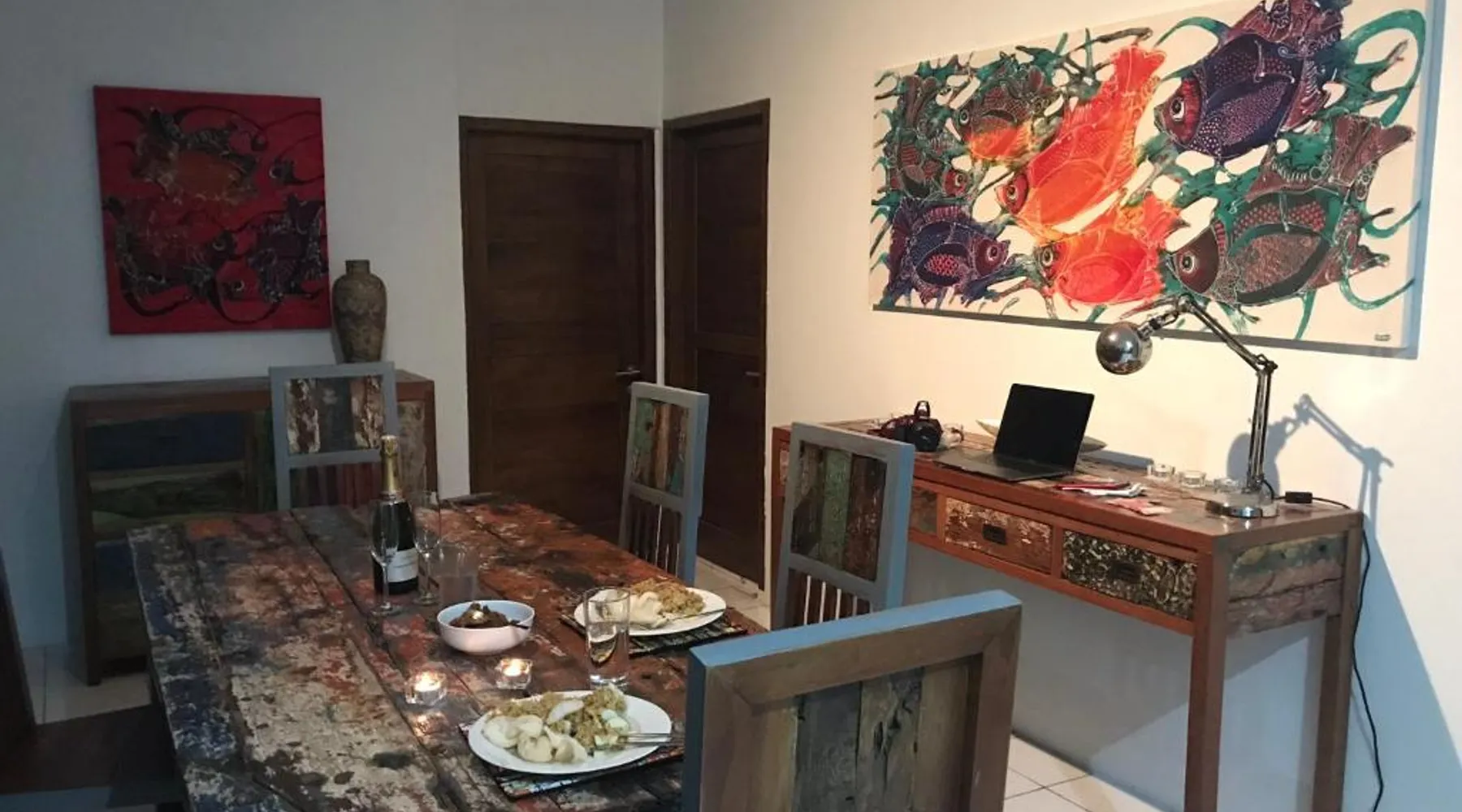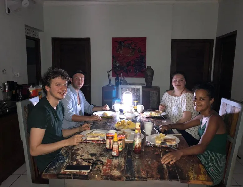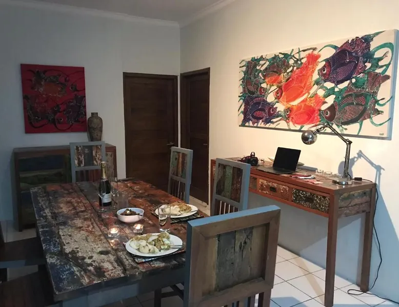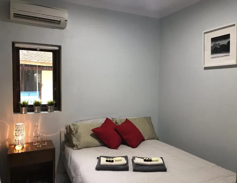 Comfortable Accommodations: Kathy’s Place in Karimunjawa offers family rooms with private bathrooms. Each room features air-conditioning, a patio, and a kitchen. Guests enjoy garden views and tiled floors. Exceptional Facilities: The guest house includes a garden, terrace, and free WiFi. Additional amenities include a lounge, shared kitchen, outdoor seating area, and barbecue facilities. Free private parking is available. Delicious Breakfast: A variety of breakfast options are served, including continental, vegetarian, vegan, halal, and Asian. Fresh pastries, pancakes, cheese, and fruits are available. Convenient Location: Located 1.2 mi from Pancuran Beach and 103 mi from Ahmad Yani International Airport. Film nights are held regularly. Highly rated for staff and service support, bathroom comfort, and bed comfort. Providing free toiletries, this double room includes a private bathroom with a bath, a shower and a bidet. The double room's kitchen is available for cooking and storing food. The double room features air conditioning, a patio and garden views. The unit offers 1 bed.