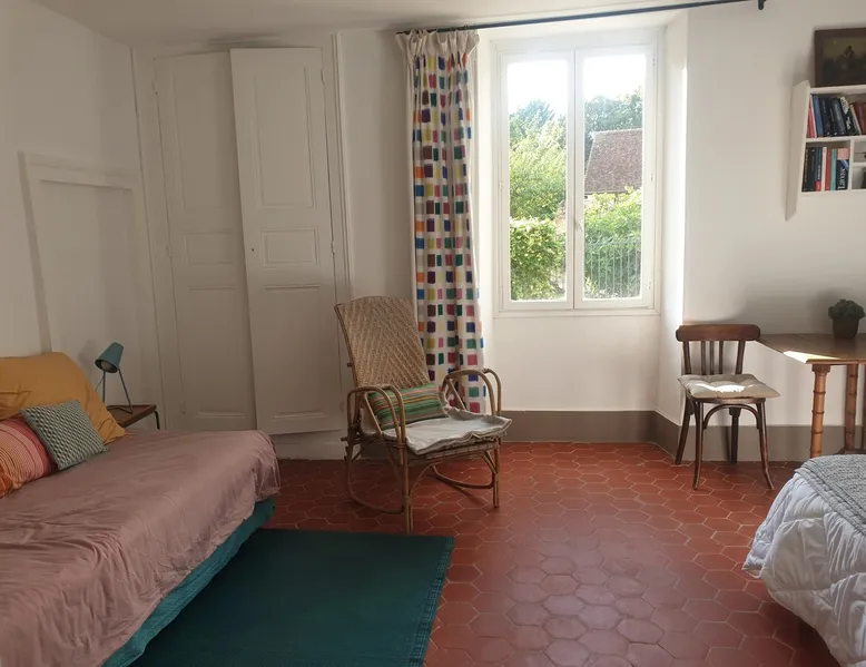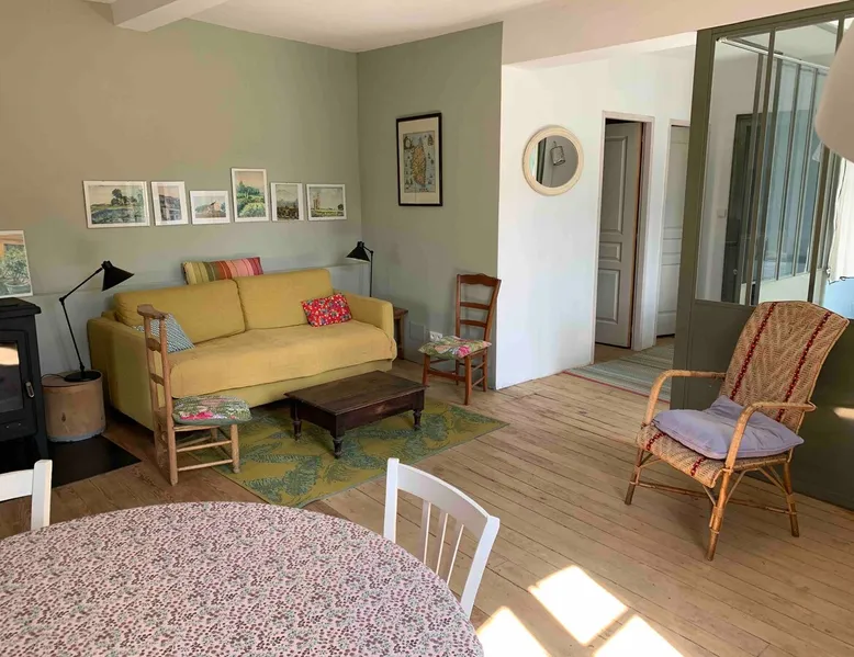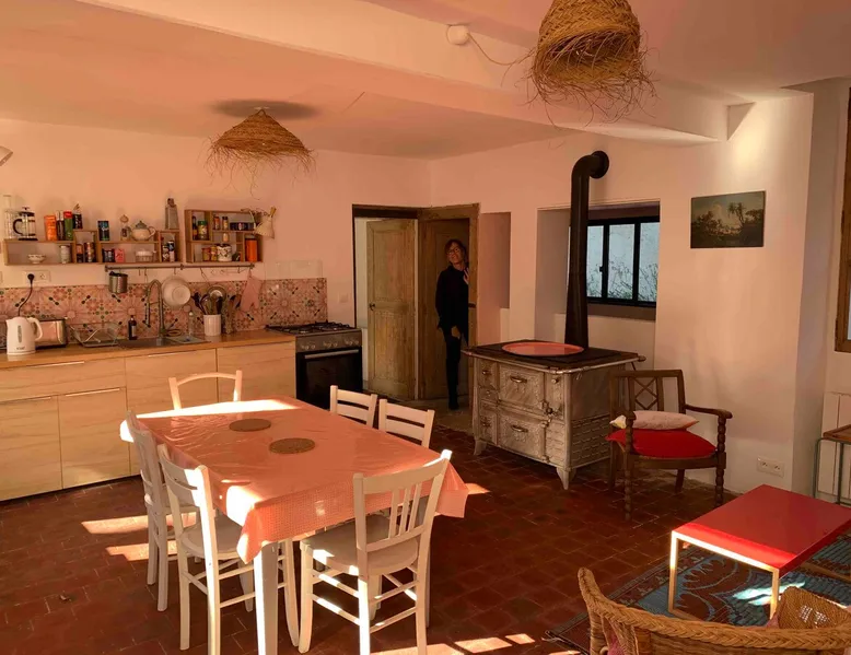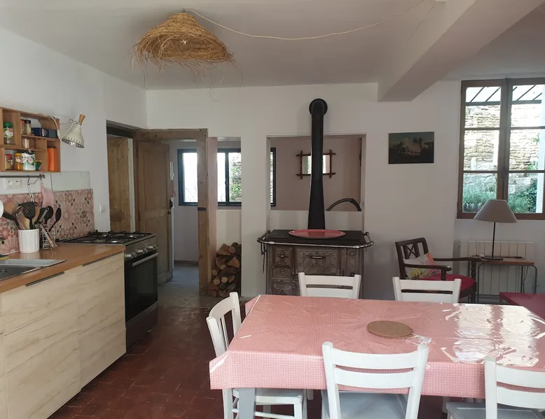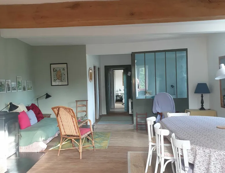 This former farmhouse has the advantage of being very spacious for a family or group of friends. The layout has been designed to preserve the authenticity of the place and make the 2 levels (living rooms, kitchens, bathrooms, toilets) self-contained. The courtyard of this old farmhouse, the small terrace on the ground floor at the rear of the house, the summer dining room and the garden are immediately accessible. The space The 2 levels of this old farmhouse are independently equipped with kitchen, sanitary and bathroom, with 2 large independent bedrooms downstairs, and 3 bedrooms upstairs (1 large with king-size bed, a small glazed one with double bed, a smaller one with 2 independent single beds . The 2 levels feature large living areas. Guest access There are 2 accesses from the courtyard to the ground floor and an independent outdoor staircase for access to the 1st floor. Other things to note It's a spacious, authentic and charming accommodation that offers something for every member of a family or group. Travelers say so!