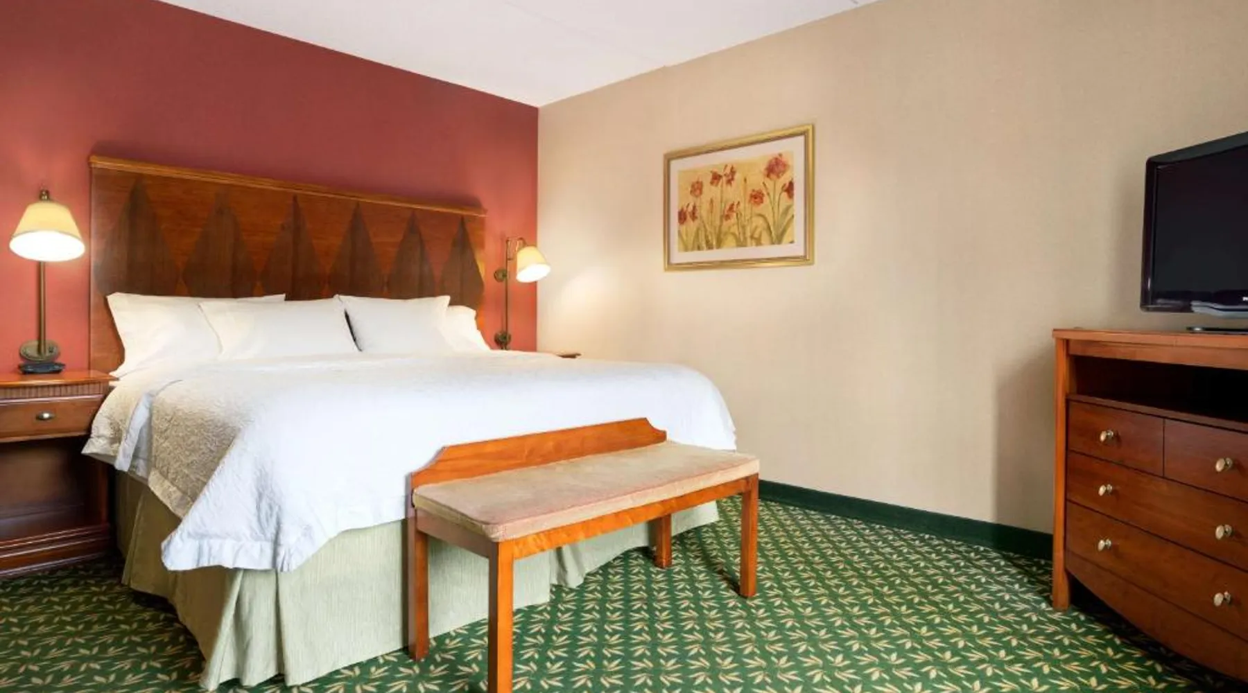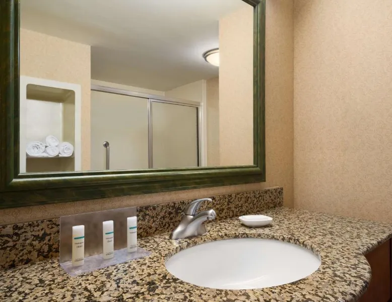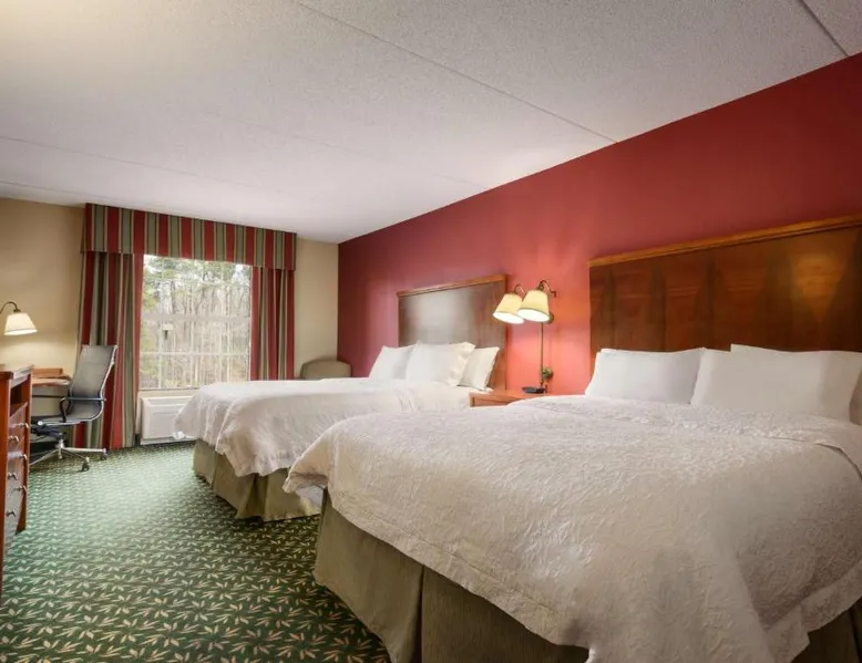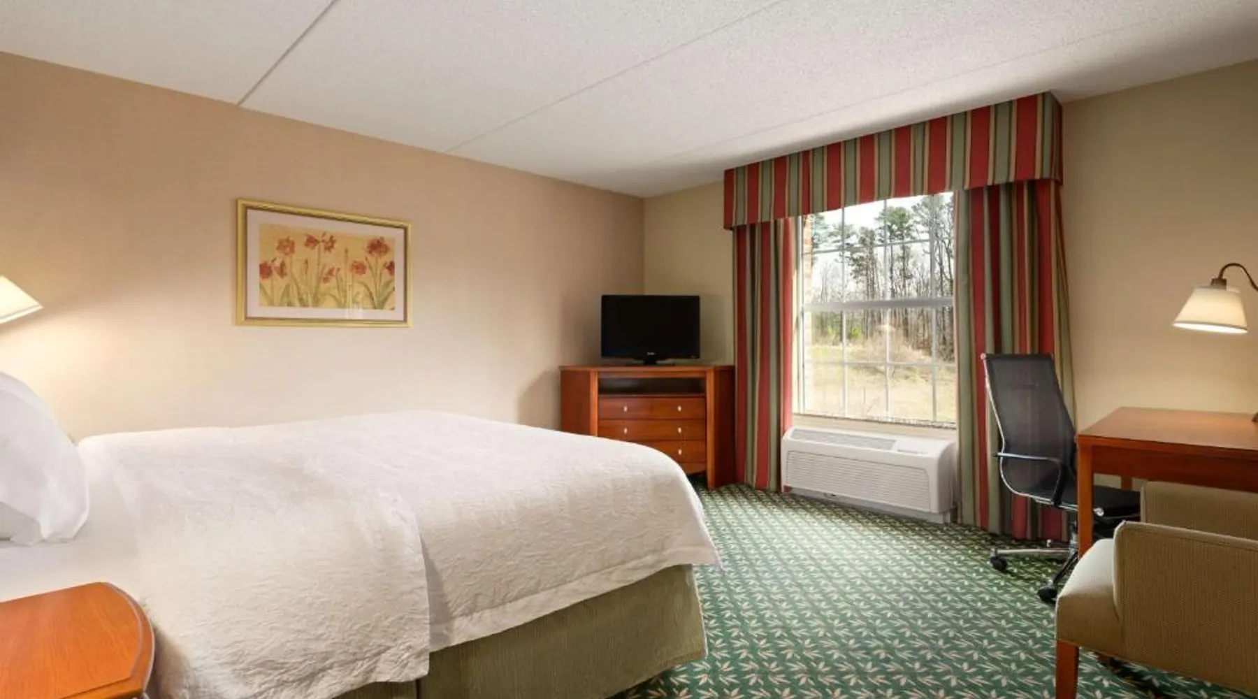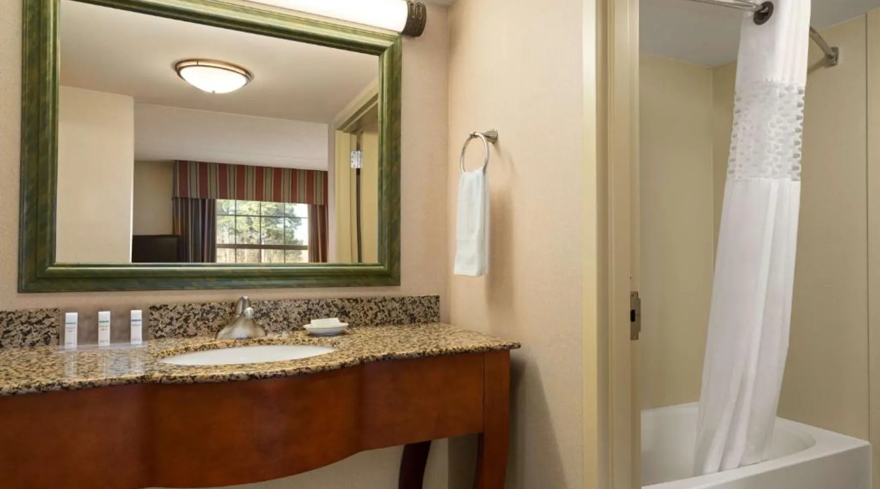 Comfortable Accommodations: Hampton Inn & Suites Williamsburg-Central in Williamsburg offers rooms with air-conditioning, bathrobes, tea and coffee makers, and free WiFi. Each room includes a mini-bar, TV, and work desk. Leisure Facilities: Guests can enjoy an indoor swimming pool, hot tub, fitness room, and lounge. Free bicycles are available for exploring the area. Convenient Amenities: The hotel provides free on-site parking, a 24-hour front desk, business area, and outdoor seating. Additional features include a picnic area and interconnected rooms. Prime Location: Located 1.2 mi from Colonial Williamsburg and 18 mi from Newport News/Williamsburg International Airport. Nearby attractions include Historic Jamestown (7.5 mi) and Busch Gardens Williamsburg (8.1 mi). This studio features a flat-screen TV, a seating area, and a sofa bed.