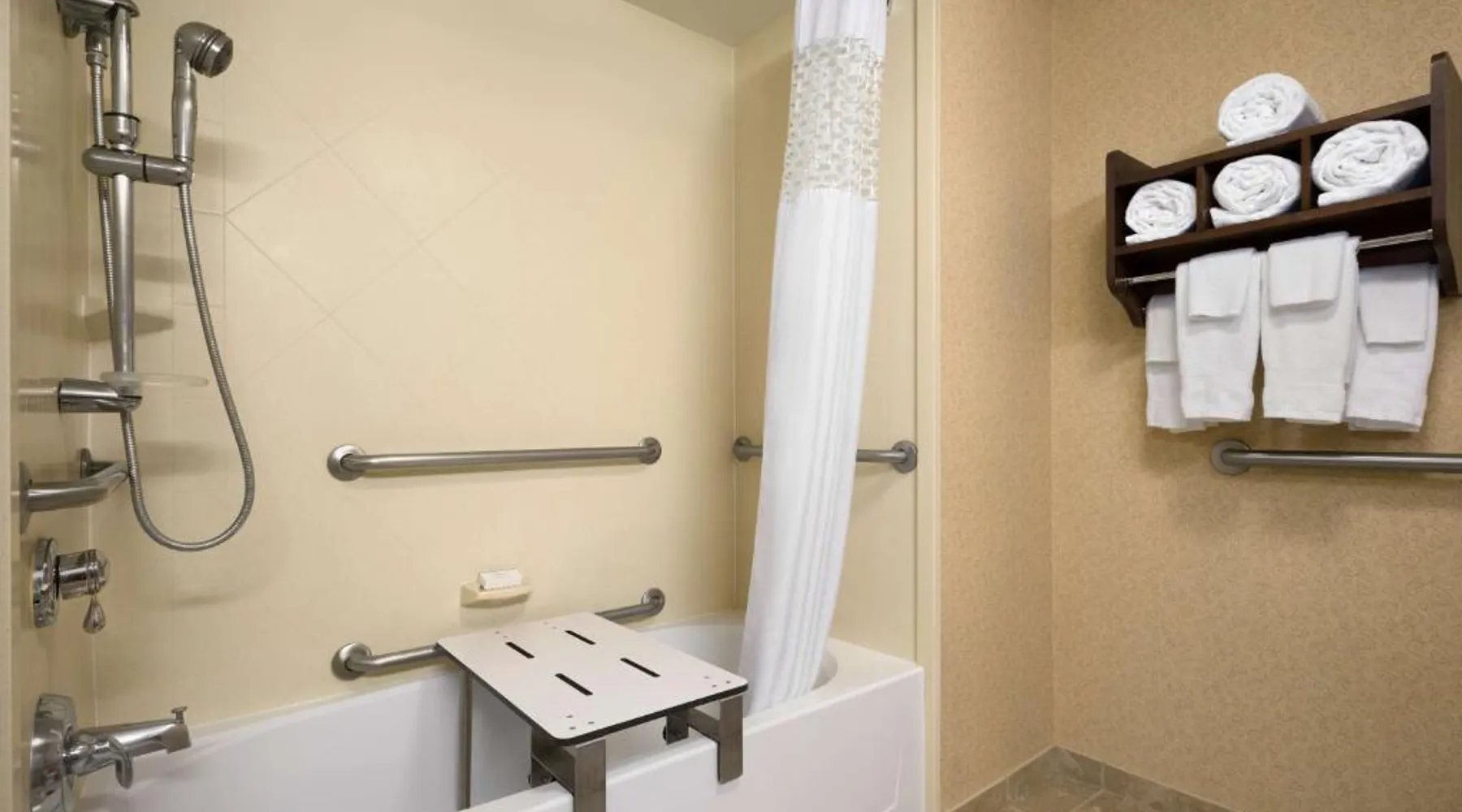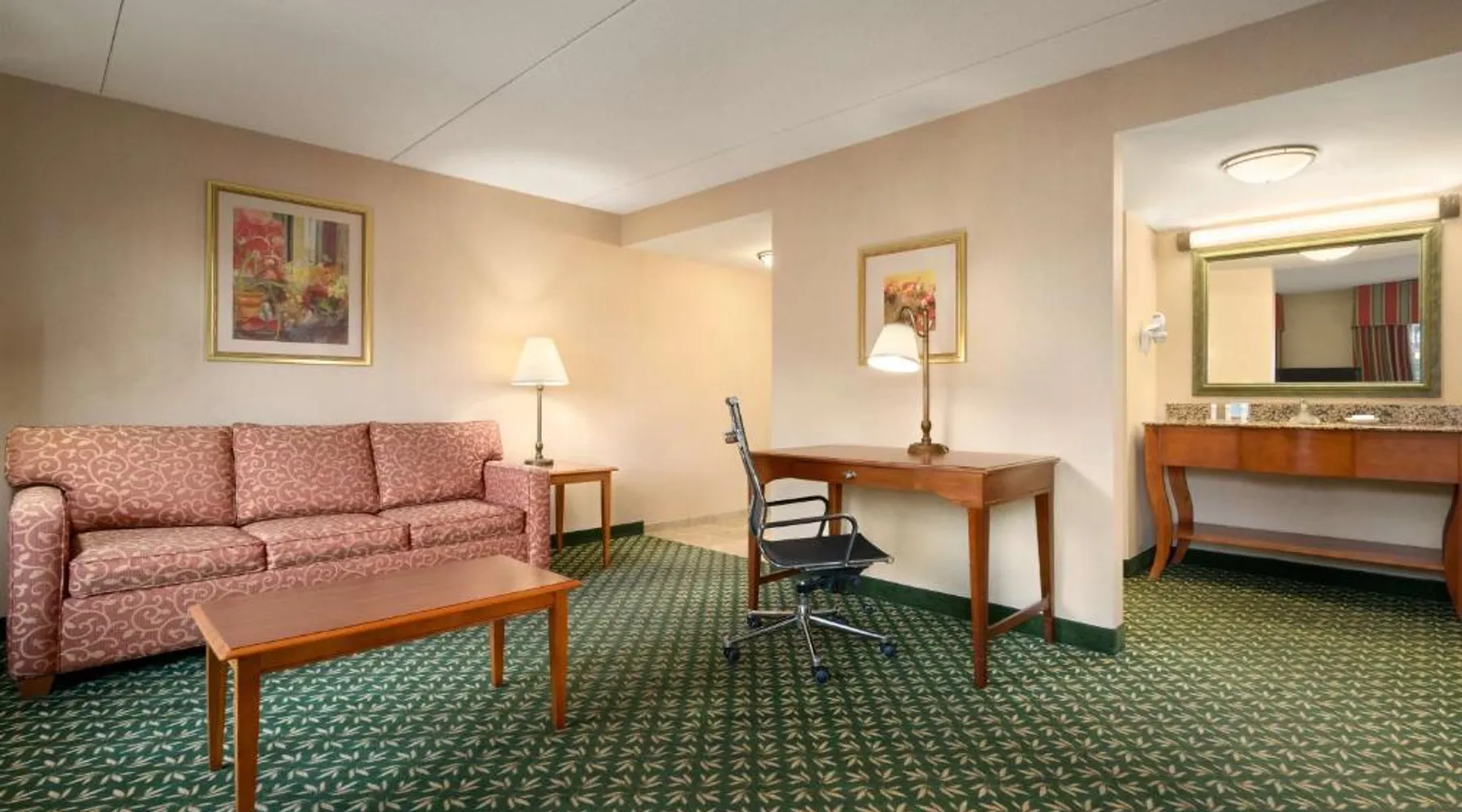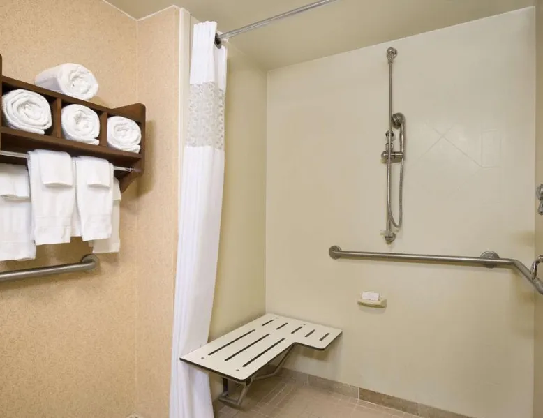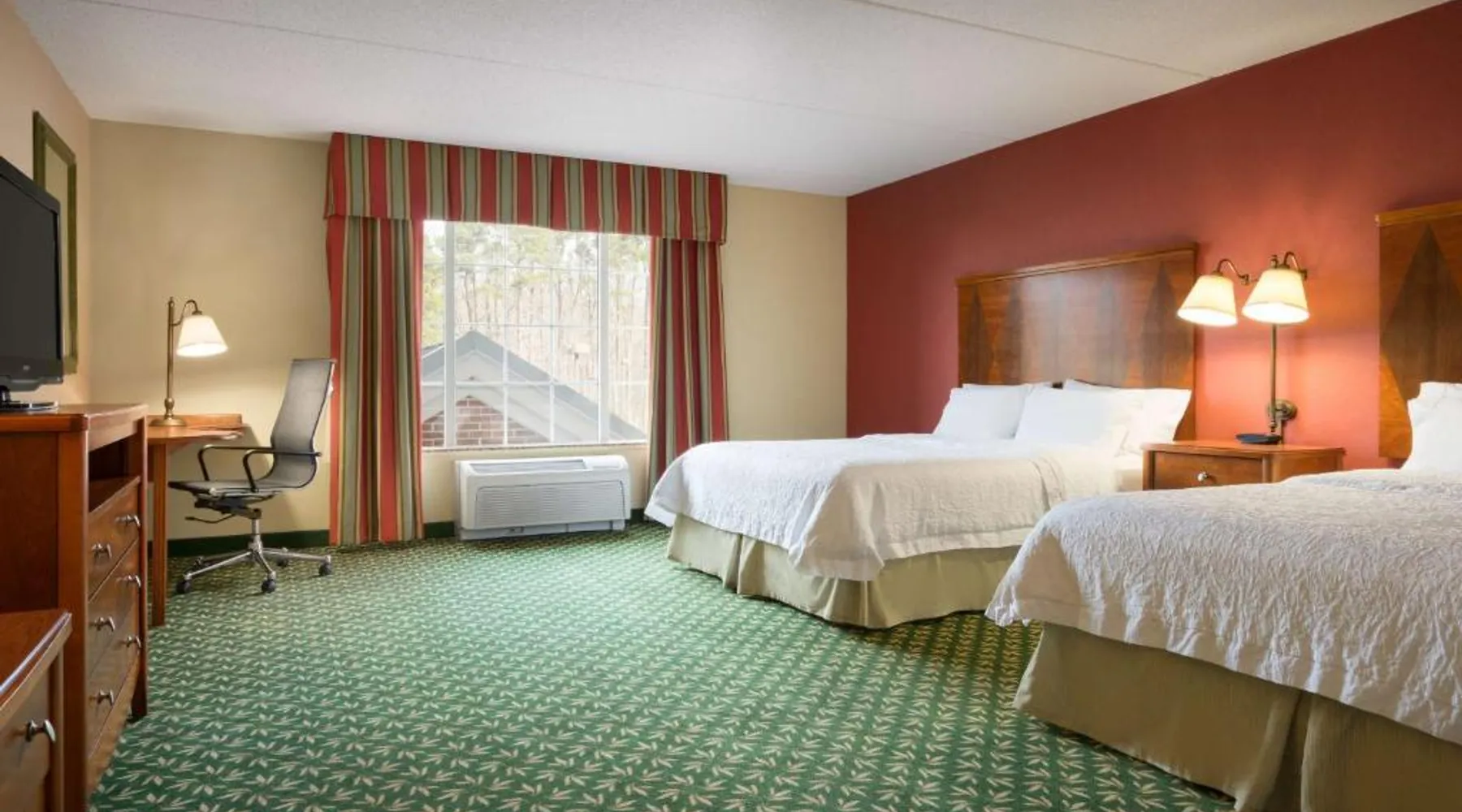 Comfortable Accommodations: Hampton Inn & Suites Williamsburg-Central in Williamsburg offers rooms with air-conditioning, bathrobes, tea and coffee makers, and free WiFi. Each room includes a mini-bar, TV, and work desk. Leisure Facilities: Guests can enjoy an indoor swimming pool, hot tub, fitness room, and lounge. Free bicycles are available for exploring the area. Convenient Amenities: The hotel provides free on-site parking, a 24-hour front desk, business area, and outdoor seating. Additional features include a picnic area and interconnected rooms. Prime Location: Located 1.2 mi from Colonial Williamsburg and 18 mi from Newport News/Williamsburg International Airport. Nearby attractions include Historic Jamestown (7.5 mi) and Busch Gardens Williamsburg (8.1 mi). This studio features a flat-screen TV, a seating area, and a sofa bed.