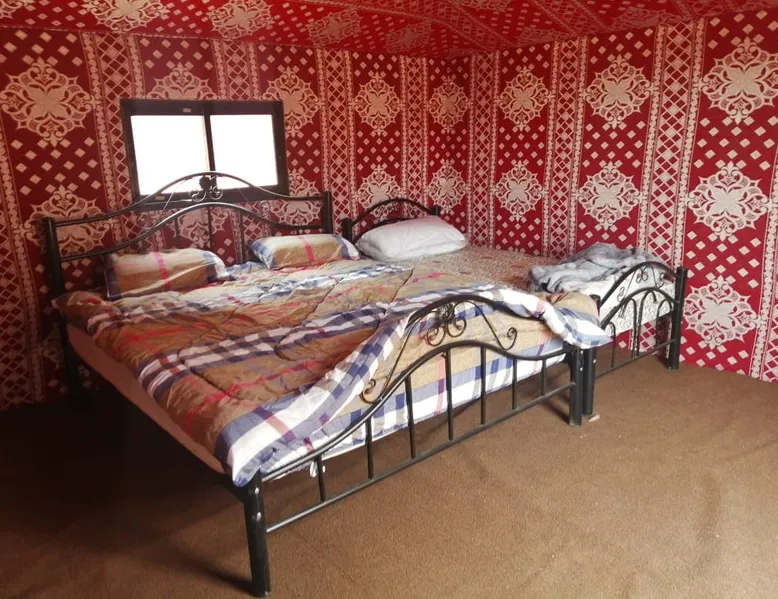 Sleep under the stars in Wadi Rum, a beautiful desert and UNESCO World Heritage Site. We're local Bedouins from the Al-Zalabieh tribe and have been welcoming guests here, to our camp in the desert, for many years. Wadi Rum is a truly special place - towering mountains, gold and pink sand, incredible sunsets and a view of the stars at night so clear you can see the Milky Way galaxy! Breakfast and Dinner is included the price. The space We offer you an unique bedouin experience, sitting with tea next to the campfire and enjoy the piece of the desert. It is the perfect place to have a retreat from the fast life in the cities. You will have your own tent with bed and blankets inside. Guest access There is a common sitting area by the campfire, where all the guests are gathering together. Other things to note If you wish, you can join our jeep tours and see the beauty of Jordan.