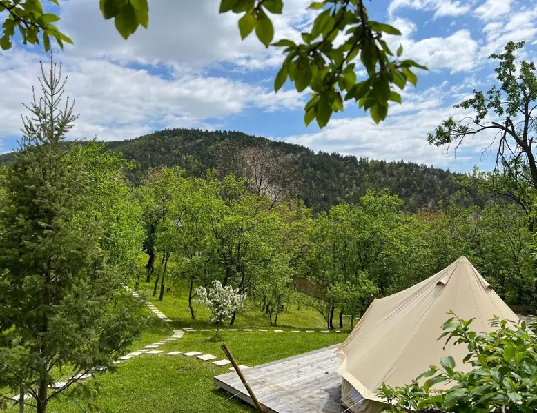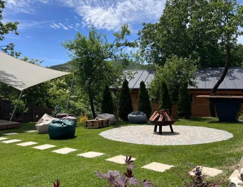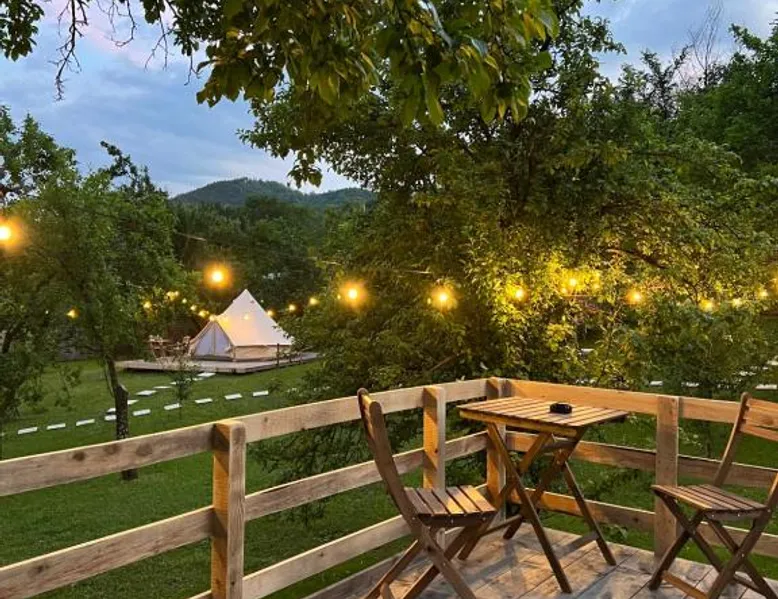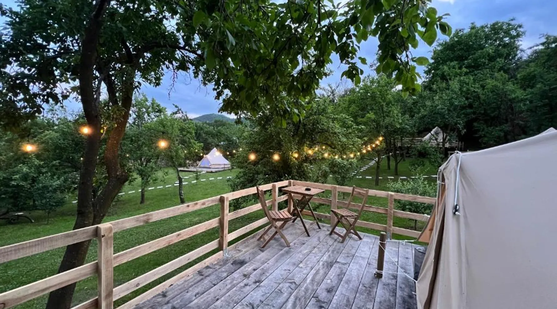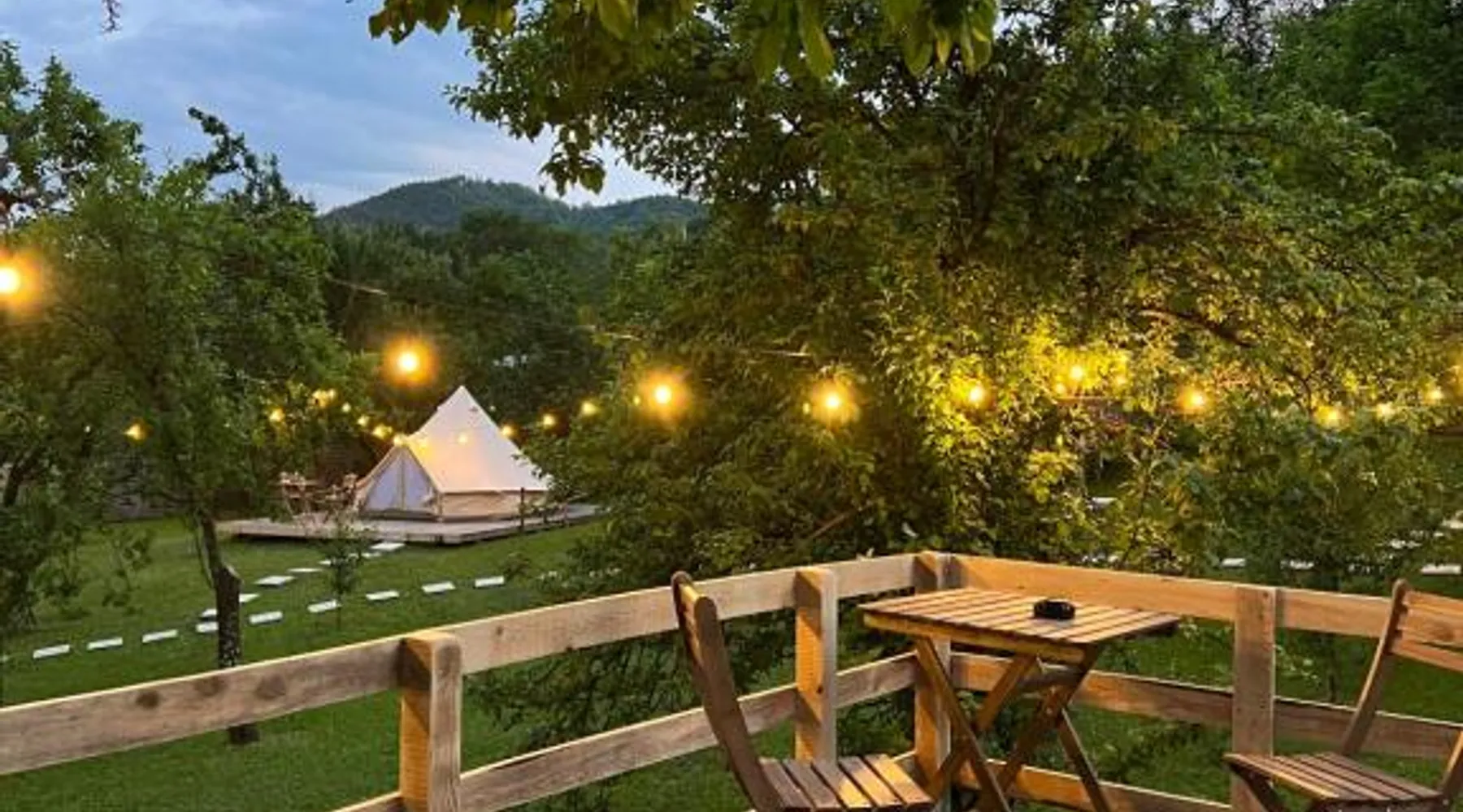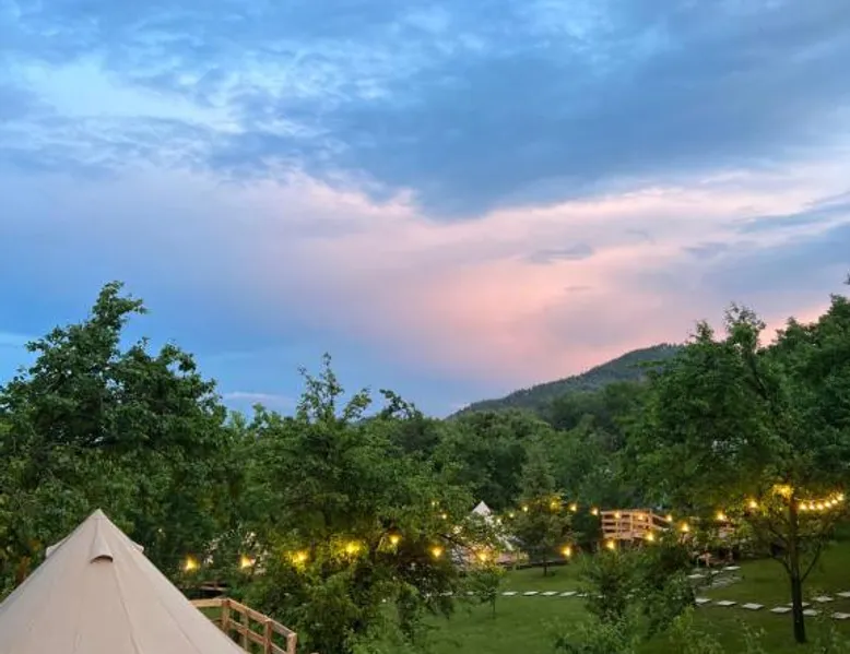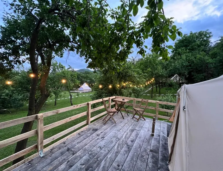Elegant Accommodations: Tinutul Luanei Glamping Resort in Bozioru offers luxury tents with garden and mountain views. Each tent features a private entrance, bathrobes, and free WiFi. Exceptional Facilities: Guests can relax on the sun terrace or in the outdoor seating area. The property includes a children's playground, picnic area, and family rooms. Free on-site private parking is available. Dining Experience: The family-friendly restaurant serves local and European cuisines in a traditional and modern ambiance. Breakfast includes local specialties, juice, cheese, and fruits. Convenient Location: Located 83 mi from Henri Coandă International Airport and 21 mi from Berca Mud Volcanoes. Highly rated for its location and cleanliness. The family room offers a private entrance, a seating area, a terrace with garden views as well as a shared bathroom boasting a shower. The unit has 4 beds.