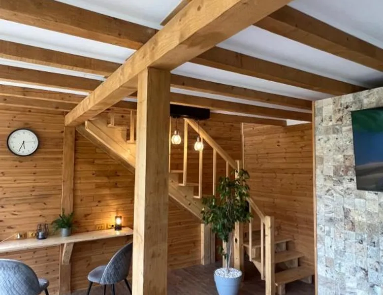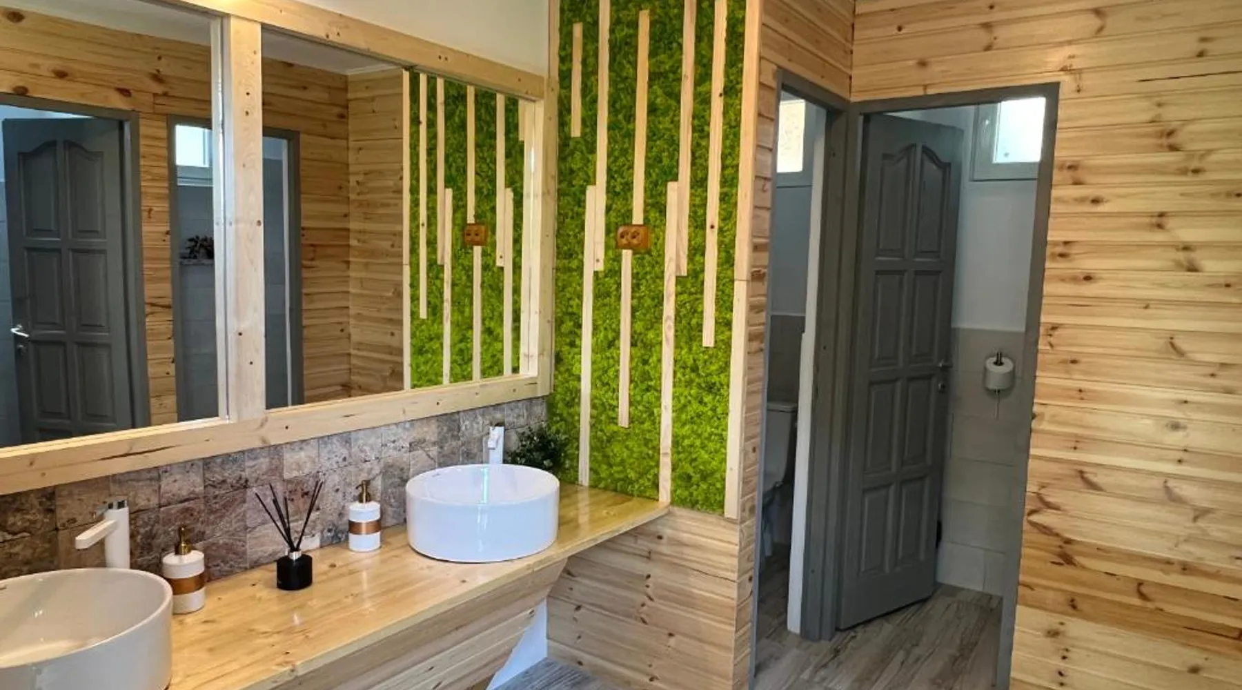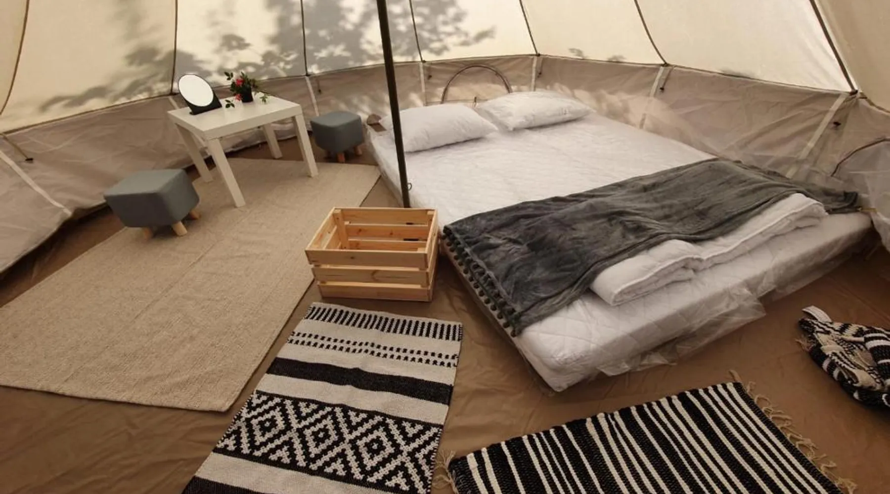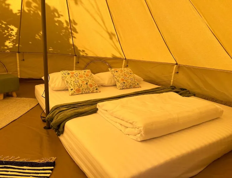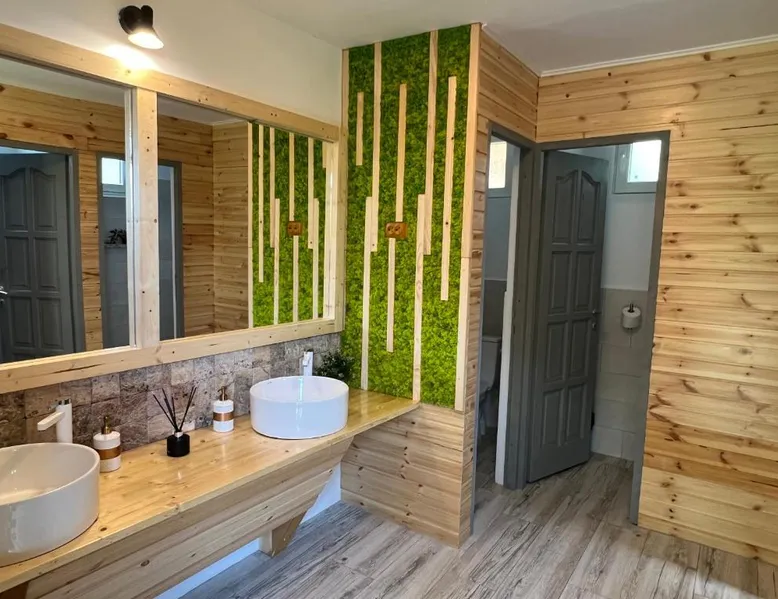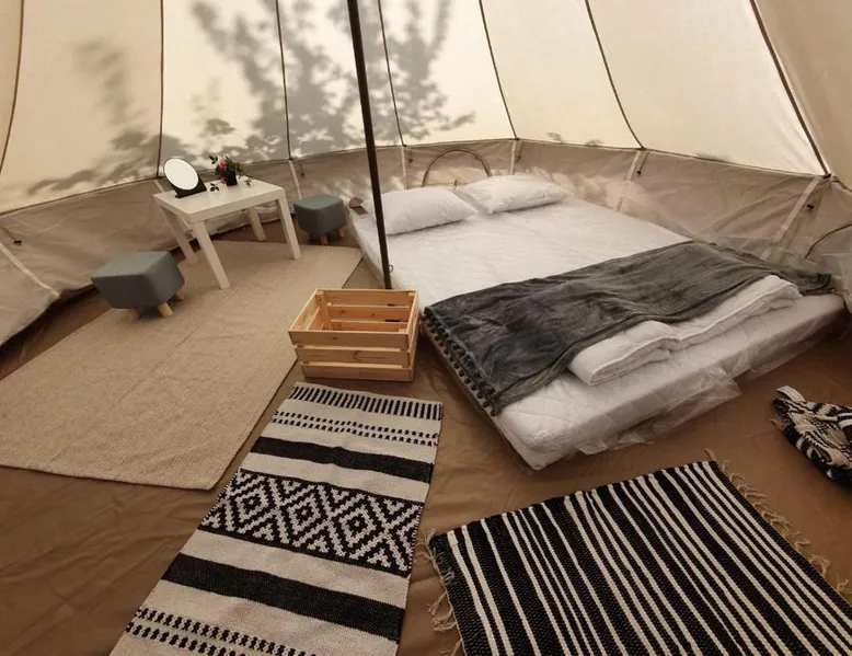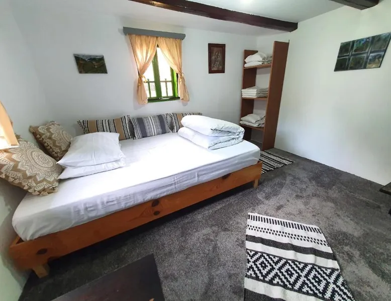Elegant Accommodations: Tinutul Luanei Glamping Resort in Bozioru offers luxury tents with garden and mountain views. Each tent features a private entrance, bathrobes, and free WiFi. Exceptional Facilities: Guests can relax on the sun terrace or in the outdoor seating area. The property includes a children's playground, picnic area, and family rooms. Free on-site private parking is available. Dining Experience: The family-friendly restaurant serves local and European cuisines in a traditional and modern ambiance. Breakfast includes local specialties, juice, cheese, and fruits. Convenient Location: Located 83 mi from Henri Coandă International Airport and 21 mi from Berca Mud Volcanoes. Highly rated for its location and cleanliness. The family room offers a private entrance, a seating area, a terrace with garden views as well as a shared bathroom boasting a shower. The unit has 4 beds.