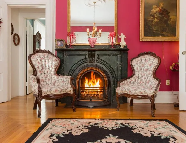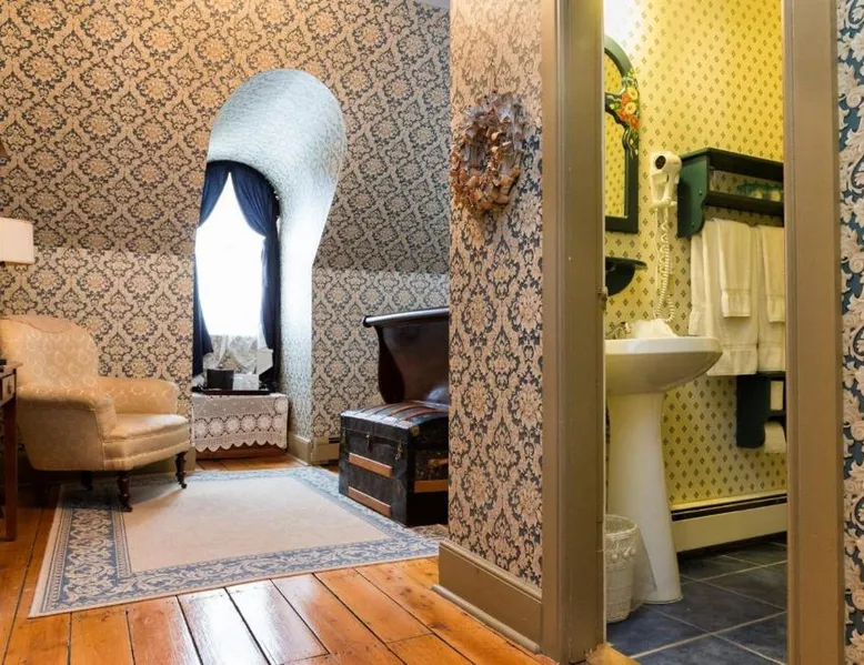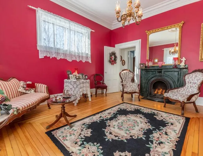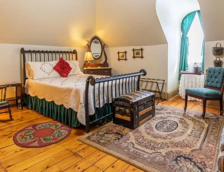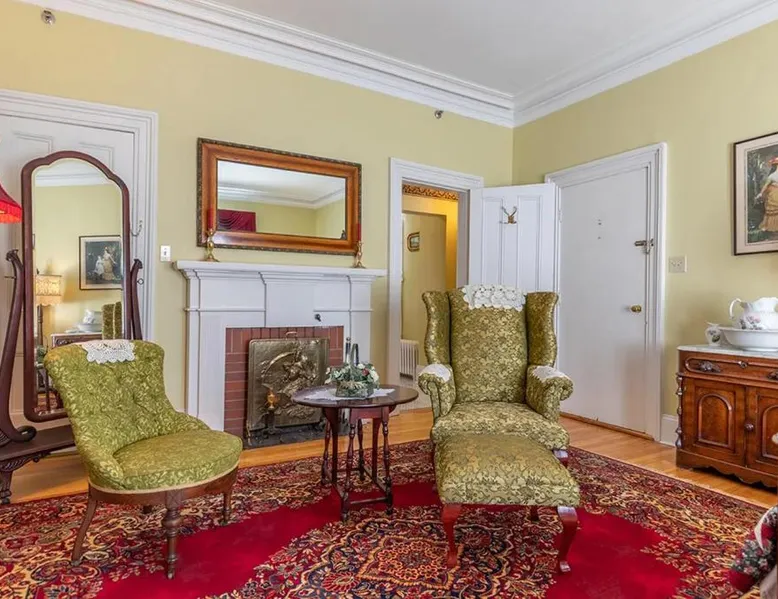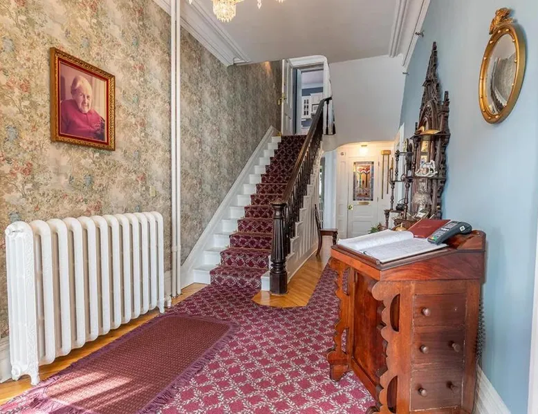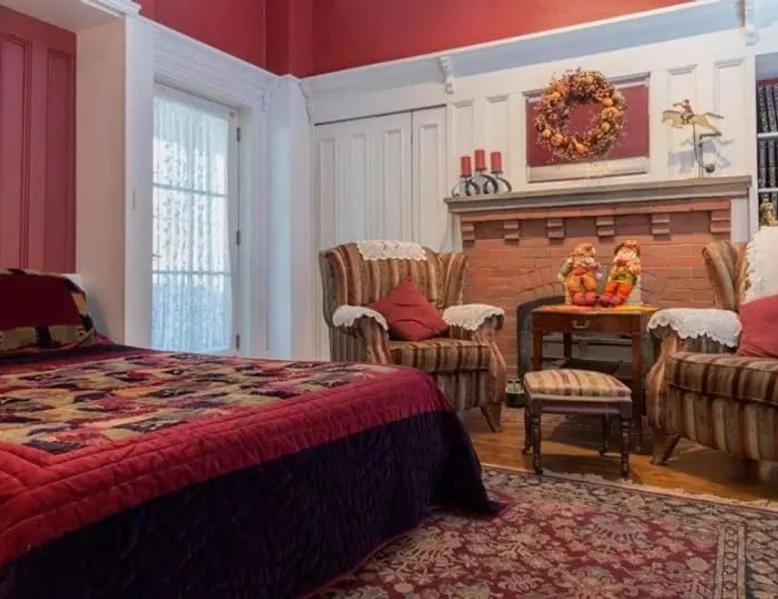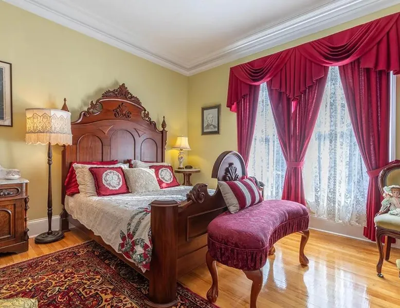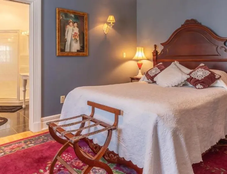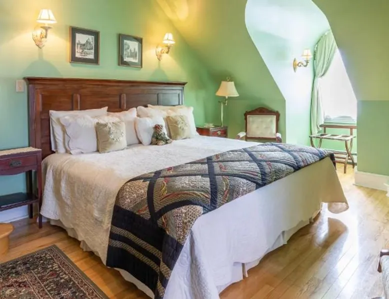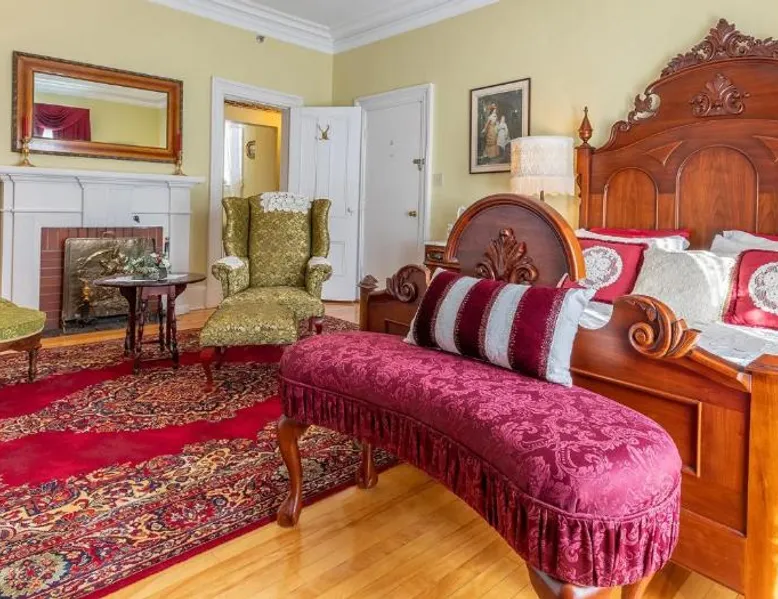 Historic Setting: Fitzroy Hall in Charlottetown offers a 4-star bed and breakfast experience within a historic building. The property features a garden and terrace, complemented by free WiFi. Comfortable Accommodations: Rooms include air-conditioning, private bathrooms, and modern amenities such as flat-screen TVs and soundproofing. Additional facilities include a lounge, shared kitchen, and family rooms. Delicious Breakfast: Guests enjoy an American breakfast with warm dishes, juice, pancakes, and fruits. The breakfast area provides a relaxing space to start the day. Prime Location: Located 3.1 mi from Charlottetown Airport, the property is close to Confederation Court Mall (4-minute walk) and Confederation Center of the Arts (1640 feet). Nearby attractions include Red Shores Racetrack & Casino (1.2 mi) and Victoria Park (13-minute walk). Features a private balcony, spacious Victorian mahogany-wood bed, a cozy fireplace and marble tables. It is fitted with an antique wardrobe cabinet, a luxurious private bathroom with a spa bath.