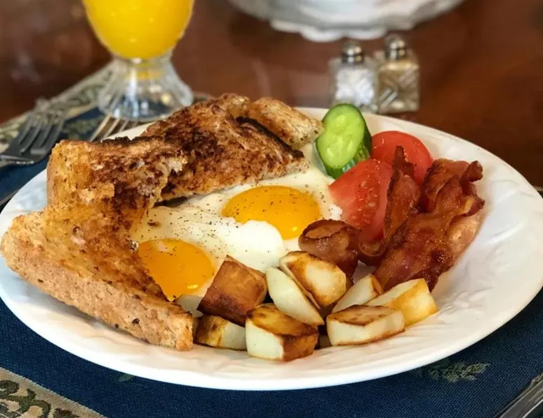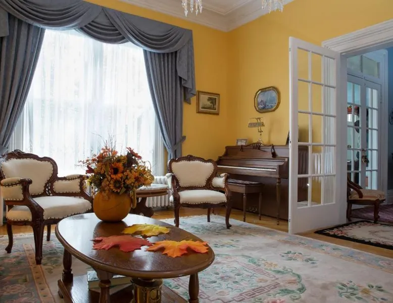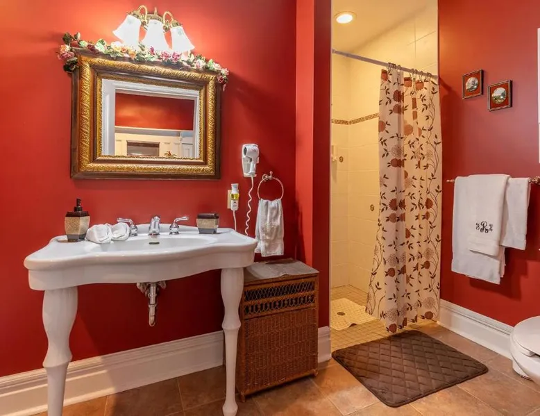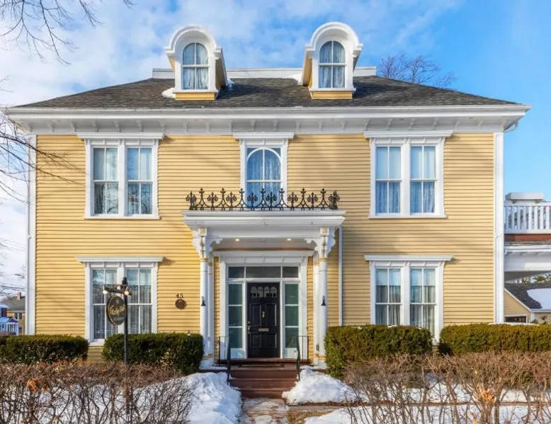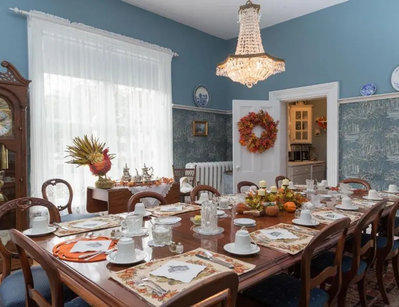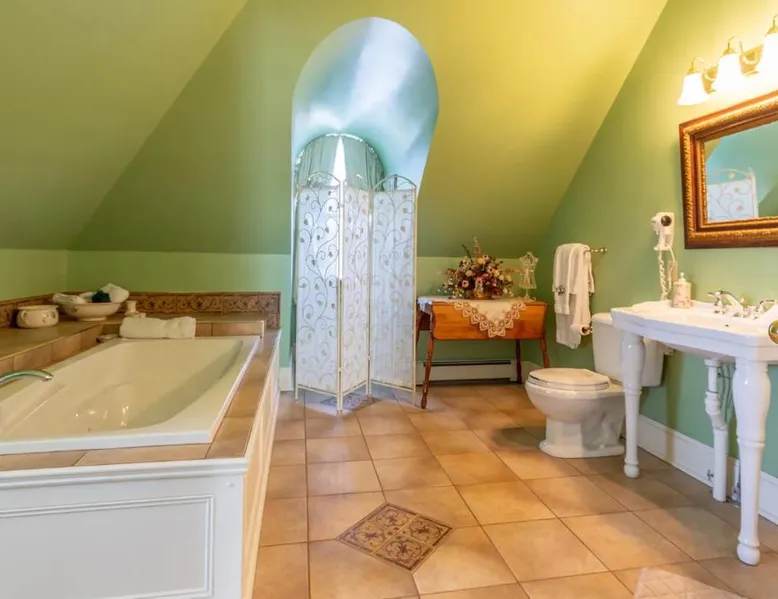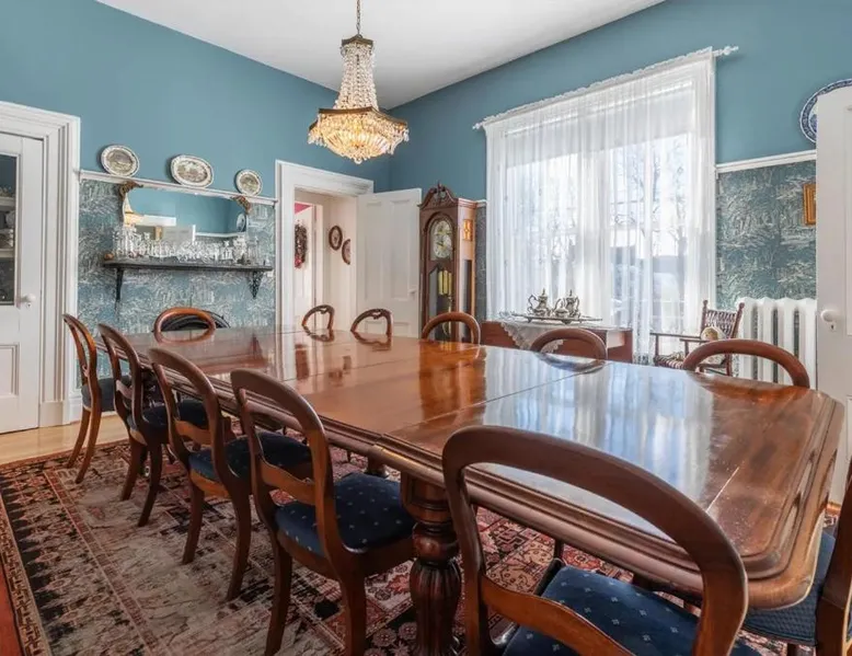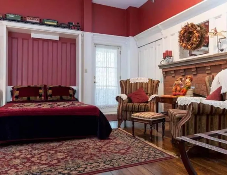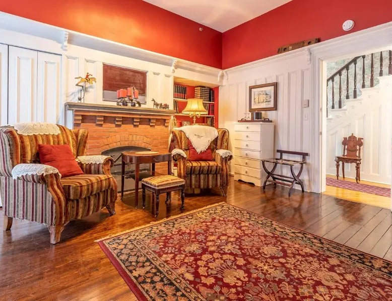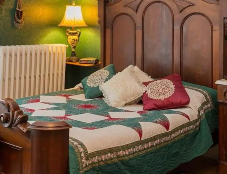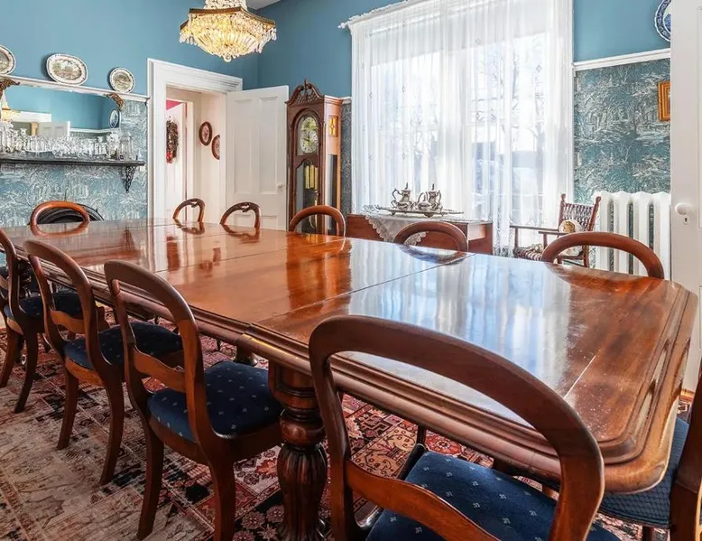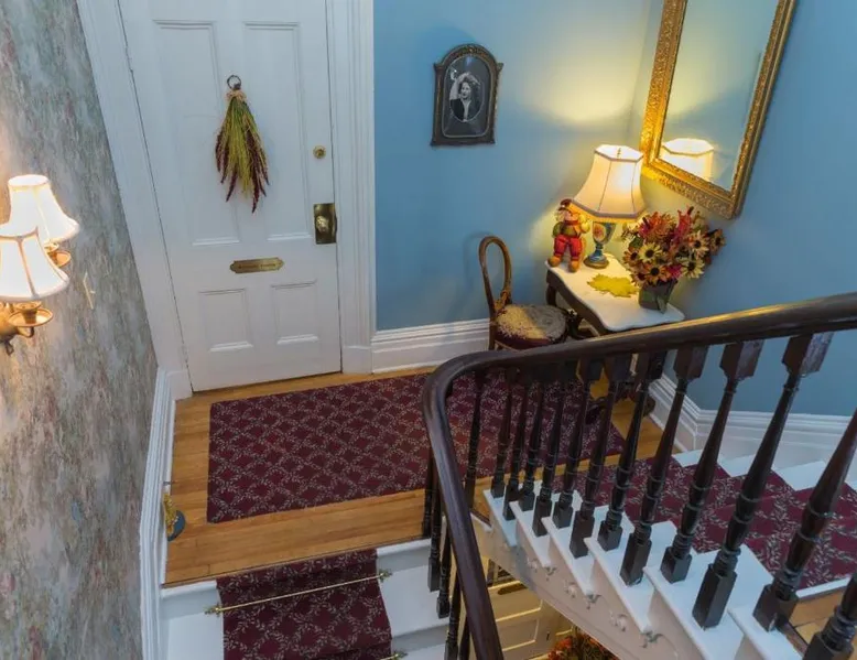 Historic Setting: Fitzroy Hall in Charlottetown offers a 4-star bed and breakfast experience within a historic building. The property features a garden and terrace, complemented by free WiFi. Comfortable Accommodations: Rooms include air-conditioning, private bathrooms, and modern amenities such as flat-screen TVs and soundproofing. Additional facilities include a lounge, shared kitchen, and family rooms. Delicious Breakfast: Guests enjoy an American breakfast with warm dishes, juice, pancakes, and fruits. The breakfast area provides a relaxing space to start the day. Prime Location: Located 3.1 mi from Charlottetown Airport, the property is close to Confederation Court Mall (4-minute walk) and Confederation Center of the Arts (1640 feet). Nearby attractions include Red Shores Racetrack & Casino (1.2 mi) and Victoria Park (13-minute walk). Features a private balcony, spacious Victorian mahogany-wood bed, a cozy fireplace and marble tables. It is fitted with an antique wardrobe cabinet, a luxurious private bathroom with a spa bath.