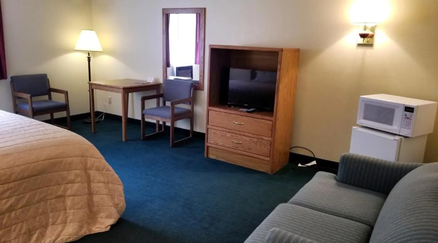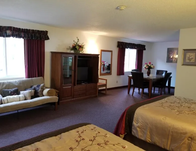 Comfortable Accommodations: Keystone Boardwalk Inn and Suites in Keystone offers family rooms with air-conditioning, private bathrooms, and free WiFi. Each room includes a work desk, TV, and free toiletries. Convenient Facilities: Guests enjoy free on-site parking, ground-floor units with sofa beds, and seating areas. Additional amenities include a dressing room and sofa. Prime Location: Located 28 mi from Rapid City Regional Airport, the motel is near Mount Rushmore (3.1 mi), Black Hills National Forest (19 mi), and other attractions. Guests appreciate the convenient location, attentive staff, and nearby shops. The air-conditioned suite features 1 bedroom and 1 bathroom with a bath and a shower. The suite offers a seating area, a sofa, a carpeted floor, heating and a flat-screen TV with cable channels. The unit offers 2 beds.