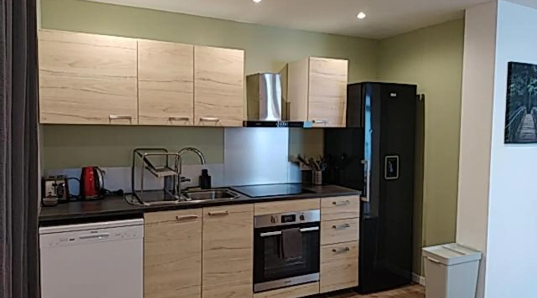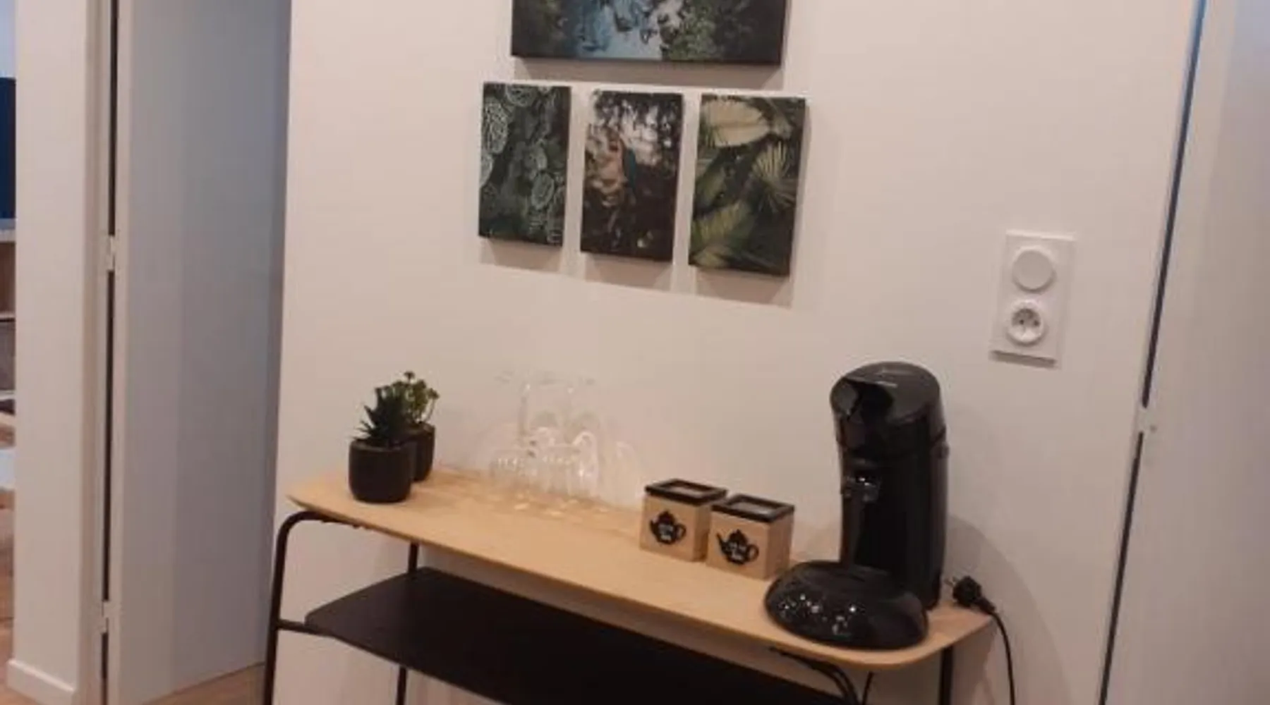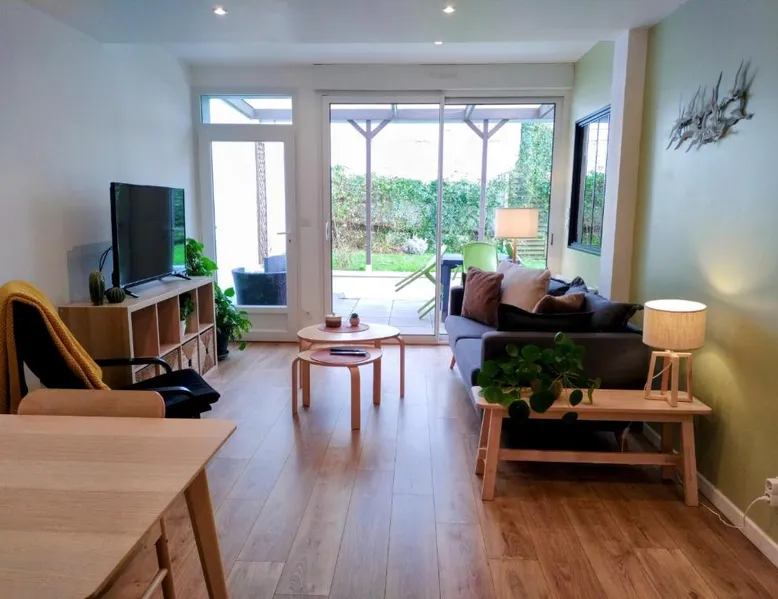 Comfortable Living Space: KALEE Appartement T3 Terrasse avec petit jardin in Lanester offers a two-bedroom apartment with a garden and terrace. The ground-floor unit features a living room, dining area, and fully equipped kitchen. Modern Amenities: Guests enjoy free WiFi, a washing machine, and a fully equipped kitchen with a coffee machine, microwave, and dishwasher. The apartment includes a dining table, outdoor furniture, and a parquet floor. Outdoor Spaces: The terrace and garden provide relaxing areas with garden views. An outdoor seating area enhances the outdoor experience. Convenient Location: Located 9.3 mi from Lorient South Brittany Airport, the apartment is 1.9 mi from Lorient Train Station and 2.4 mi from Stade du Moustoir. Nearby attractions include Parc des Expositions Lorient and Plouharnel Train Station. Activities: Guests can enjoy kayaking or canoeing in the surrounding area. The property is highly rated by guests for its comfortable accommodations. This apartment includes 1 living room, 2 separate bedrooms and 1 bathroom with a shower. In the well-equipped kitchen, guests will find a stovetop, a refrigerator, a dishwasher and kitchenware. Boasting a terrace with garden views, this apartment also offers a washing machine and a flat-screen TV. The unit has 2 beds.