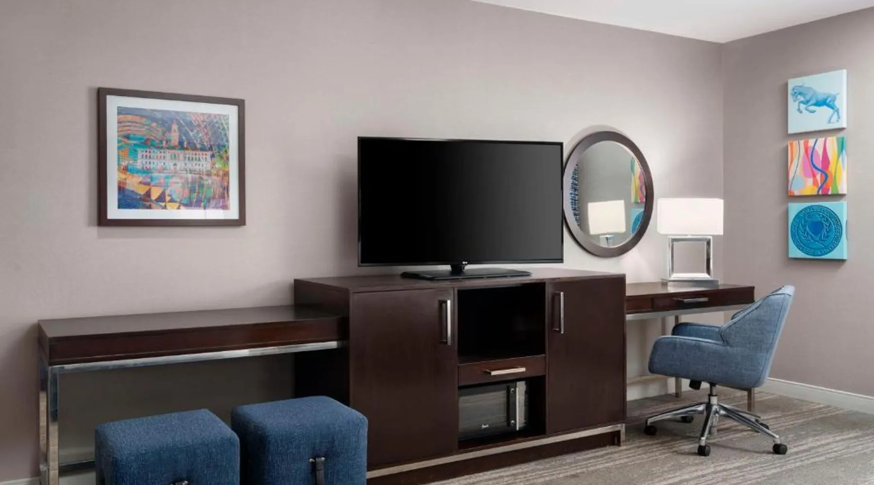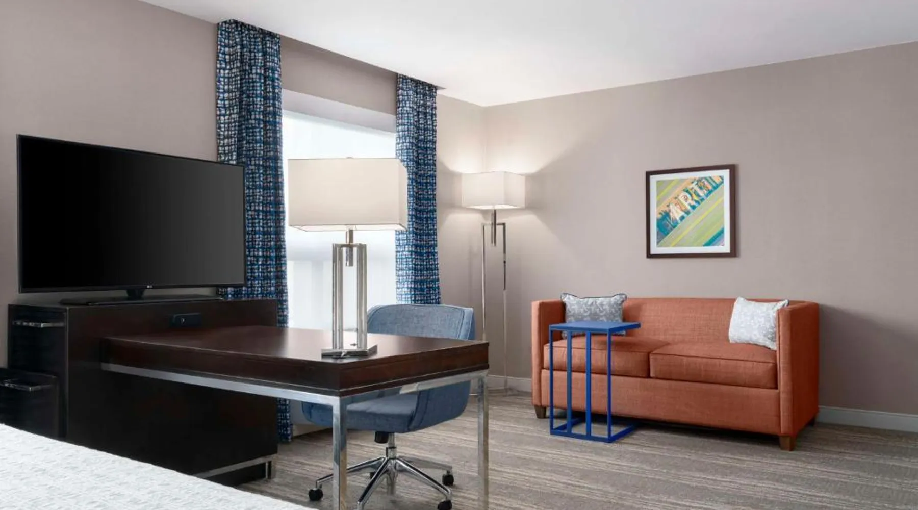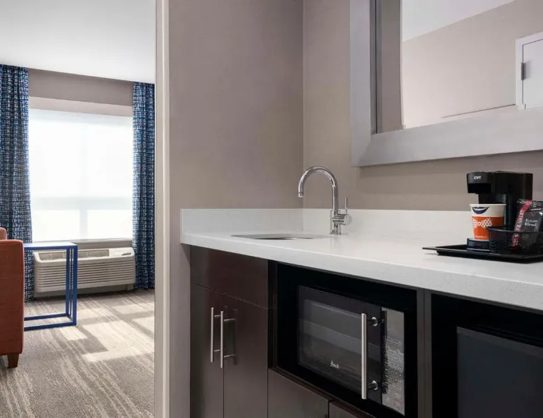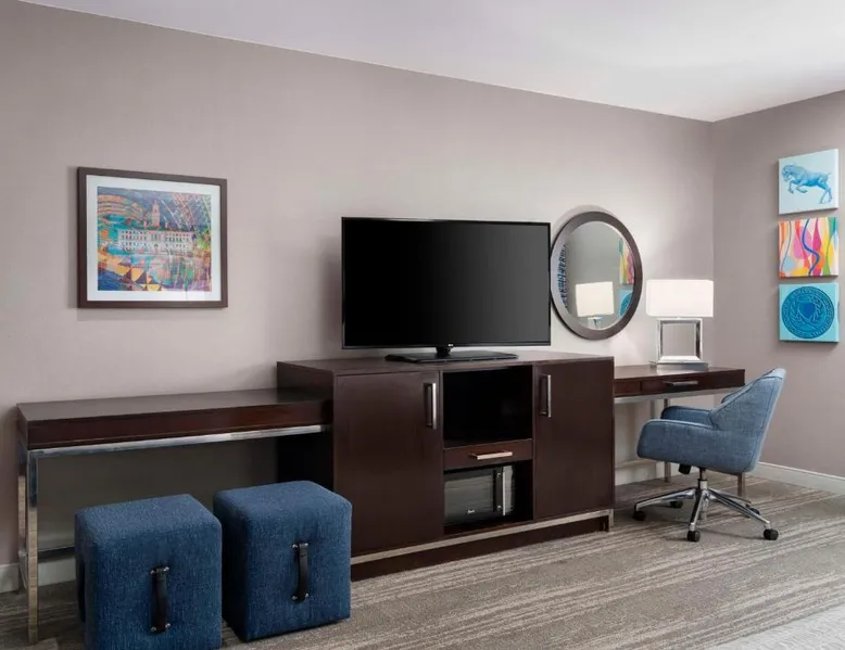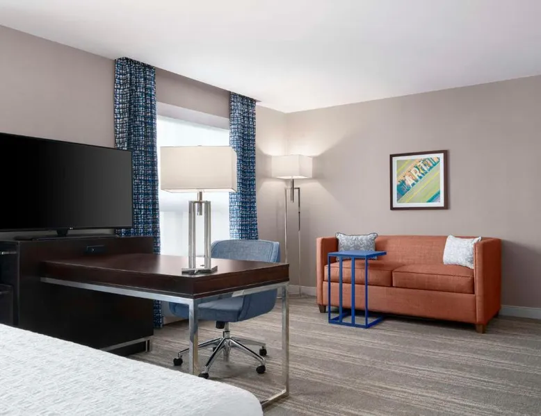 Hampton Inn & Suites-Worcester, MA offers a heated salt water indoor pool. A free hot breakfast buffet is provided daily. All air-conditioned rooms at Hampton Inn feature a flat-screen TV with cable channels, as well as a work desk. A 24-hour market offers snacks and drinks for purchase. Free coffee and tea is available in the lobby. DCU Center Arena & Convention Center is 2953 feet from Hampton Inn & Suites-Worcester, MA, while Mechanics Hall is 0.6 mi away. The nearest airport is Logan Airport, 40 mi from the property. This suite features a refrigerator, a microwave, a flat-screen TV and ironing facilities.