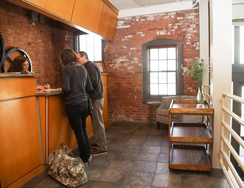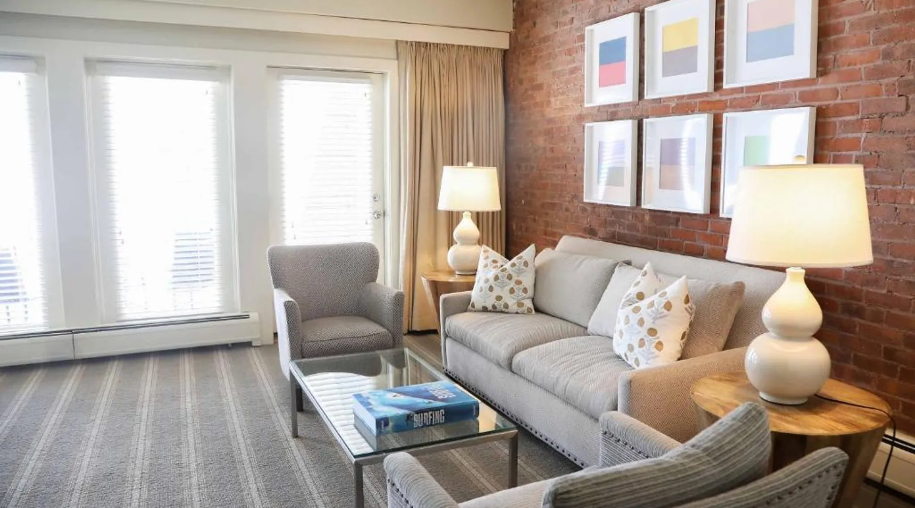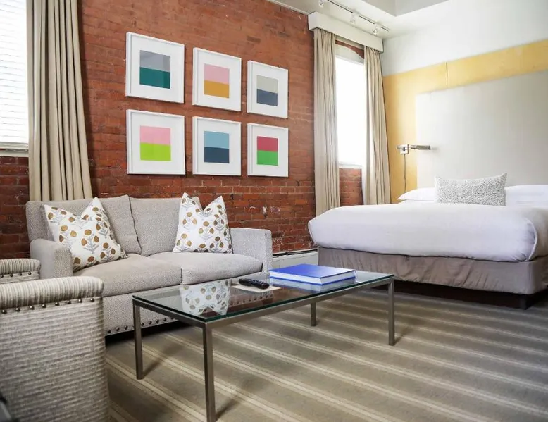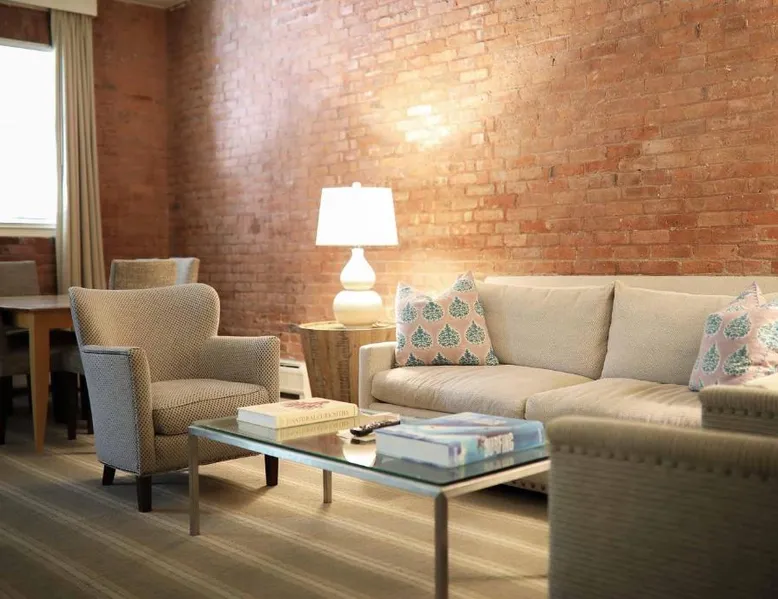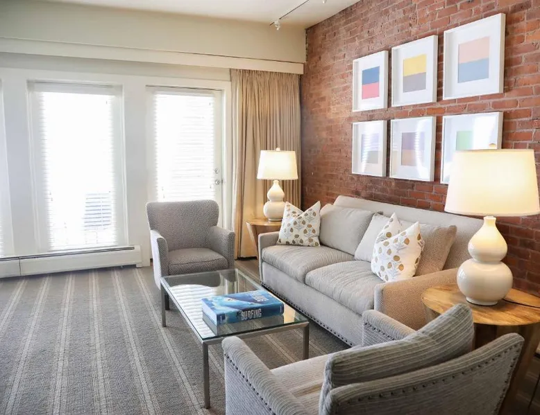 One block from Newport, Rhode Island's vibrant Thames Street and the waterfront, this renovated, 19th century mill offers suites with historic appeal and contemporary amenities. The suites at Mill Street Inn feature original beams and exposed brick walls. Guests will feel pampered with its linens, plush dressing gowns and Lather Spa bath products. After a day of exploring Newport, guests can watch the flat-screen TV and refresh with complimentary in-room fruit and snacks. In good weather, the Mill Street Inn serves a free continental breakfast on the hotel's rooftop deck from Memorial Day to Labor Day, which overlooks Newport city center and the Newport Harbor and in its dining rooms in the off season. Guests will also enjoy the afternoon tea that is served daily in the Inn's dining. Features a separate living area. Please note that the maximum occupancy is 2 guests.