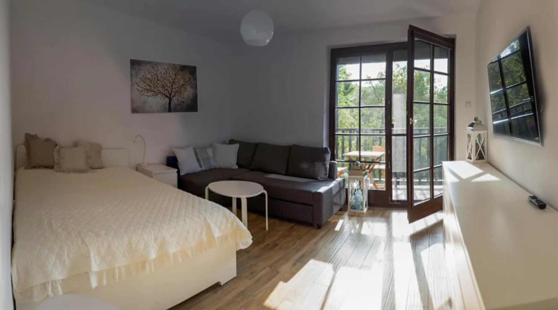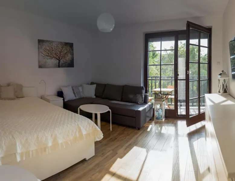 Comfortable Accommodations: Apartament Kameralny in Kazimierz Dolny offers a one-bedroom apartment with a balcony and a fully equipped kitchen. Guests enjoy garden views, a sofa bed, and a dining area. Modern Facilities: The apartment features a sun terrace, free WiFi in public areas, and free on-site parking. Additional amenities include a private check-in and check-out service, outdoor seating, family rooms, bicycle parking, and ski storage. Prime Location: Located 35 mi from Radom-Sadkow Airport, the property is an 8-minute walk from Kazimierz Dolny Castle. Nearby attractions include walking tours, cycling, skiing, and film nights. Guest Satisfaction: Highly rated for its convenient location, room cleanliness, and fully equipped kitchen. Featuring a private entrance, this apartment also is consisted of of 1 bedroom, a seating area and 1 bathroom with a walk-in shower and a hairdryer. In the well-fitted kitchen, guests will find a stovetop, a refrigerator, kitchenware and a microwave. Boasting a balcony with garden views, this apartment also offers a tea and coffee maker and a flat-screen TV with cable channels. The unit offers 2 beds.