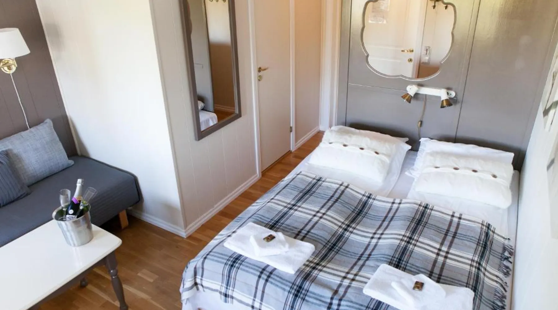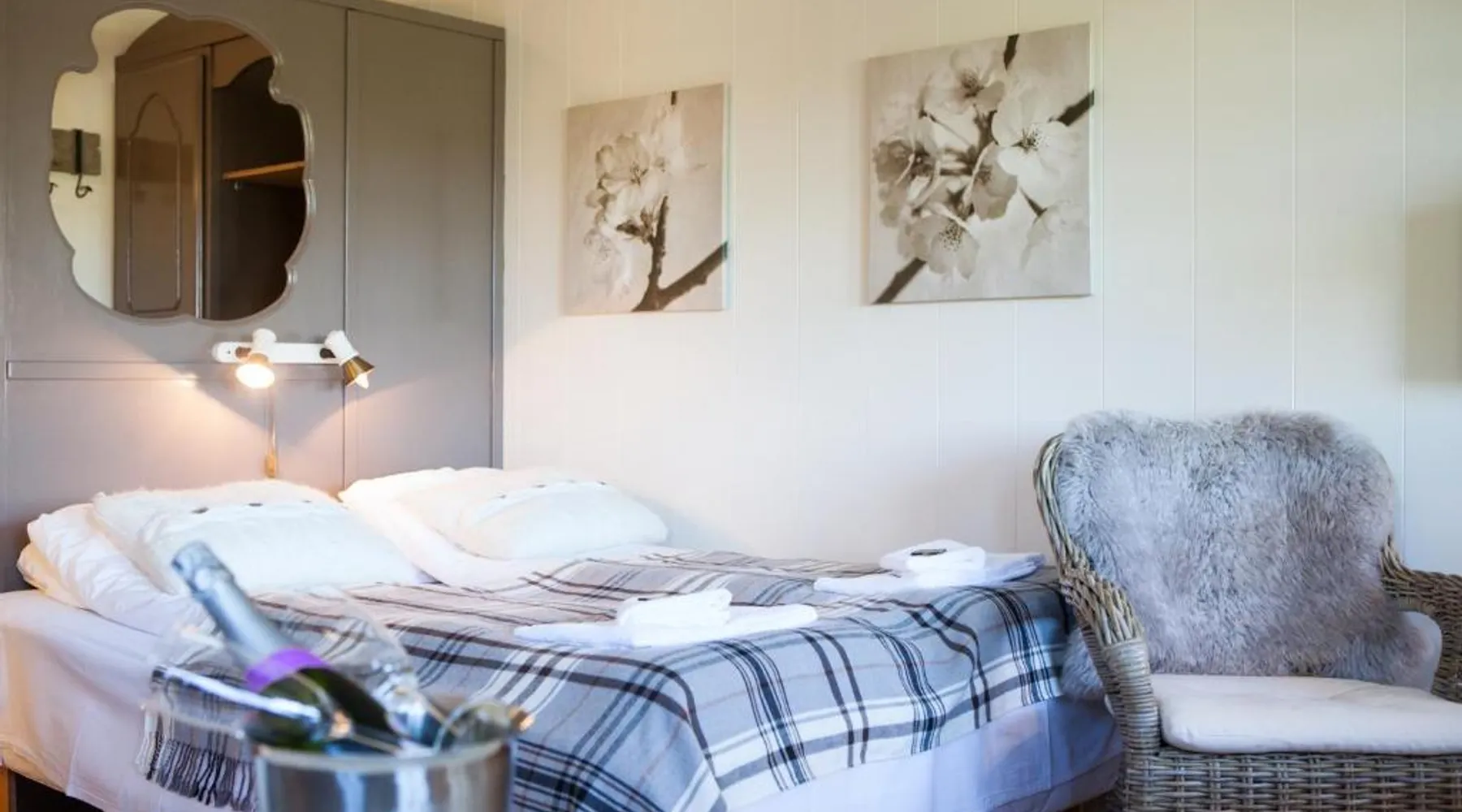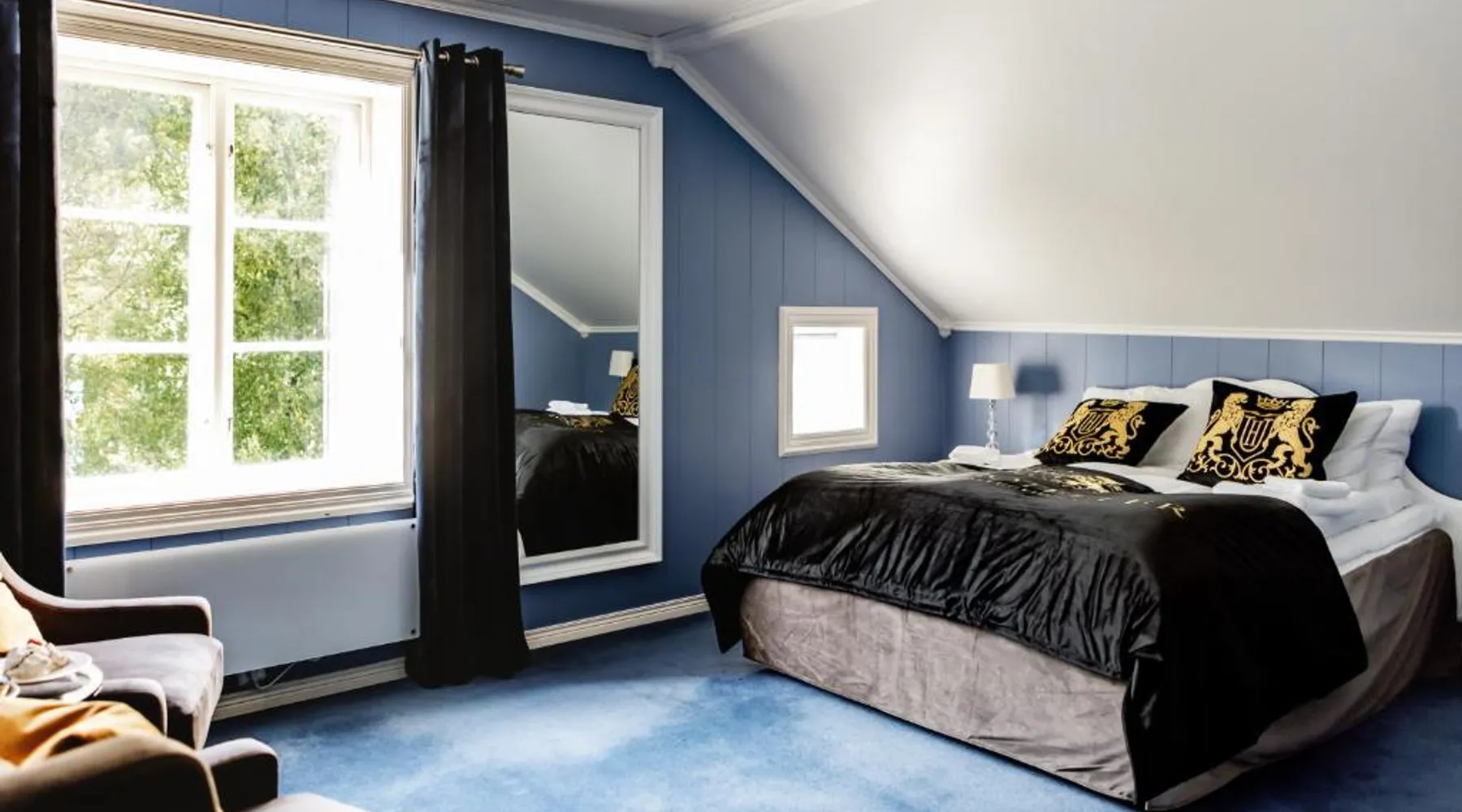 Historic Setting: Fjordslottet Hotel in Fotlandsvåg offers a unique stay within a historic building. Guests enjoy garden views and a sun terrace, complemented by a lush garden. Comfortable Accommodations: Rooms feature private bathrooms with walk-in showers, garden or sea views, and modern amenities such as free WiFi, flat-screen TVs, and work desks. Family rooms and ground-floor units cater to all needs. Dining Experience: The family-friendly restaurant serves local specialties, seafood, European cuisine, and barbecue grill. Breakfast includes continental, buffet, and gluten-free options with local cheeses, fruits, and juices. Convenient Location: Located 35 mi from Bergen Flesland Airport, the hotel is near attractions like Old Bergen Museum (31 mi) and Norwegian School of Economics (30 mi). Walking tours and hiking are available. The double room features a wardrobe, a sofa, as well as a private bathroom boasting a walk-in shower and a hairdryer. The double room provides a carpeted floor, heating and garden views. The unit has 1 bed.