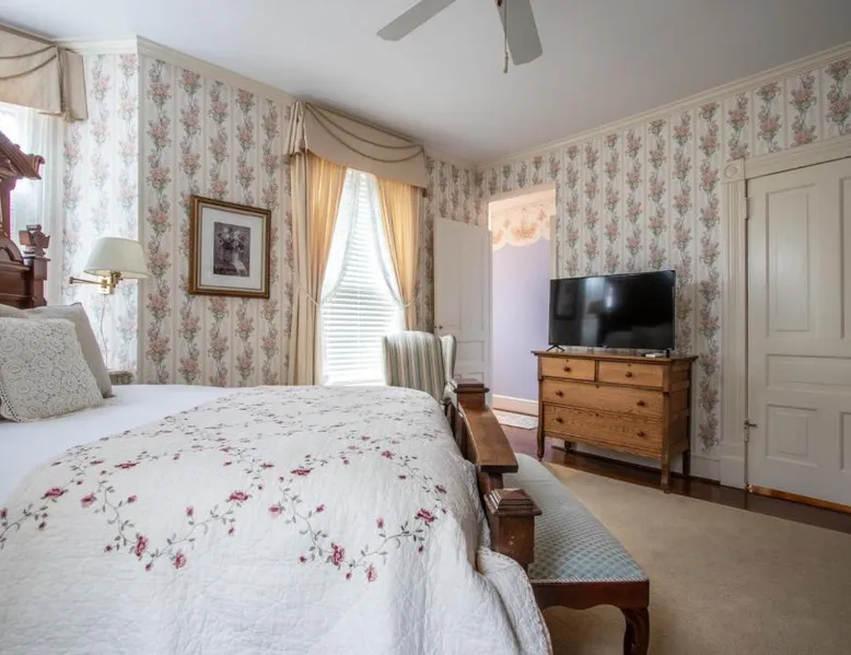 Historic Setting: The Oaks Victorian Inn in Christiansburg offers a unique stay within a historic building. Guests enjoy a sun terrace and a beautiful garden, complemented by free WiFi throughout the property. Comfortable Accommodations: Rooms feature air-conditioning, private bathrooms, and garden views. Additional amenities include bathrobes, hypoallergenic bedding, and free toiletries, ensuring a comfortable and relaxing stay. Delicious Breakfast: A variety of breakfast options are available, including continental, American, and vegetarian. Guests can enjoy fresh pastries, local specialties, and a selection of warm dishes, catering to diverse dietary needs. Convenient Location: Located 31 mi from Roanoke Airport, the inn is close to attractions such as Lane Stadium (8.1 mi) and Virginia Tech (9.9 mi). Free on-site private parking is provided for guests' convenience. Offering free toiletries and bathrobes, this double room includes a private bathroom with a walk-in shower, a bath and a hairdryer. The spacious air-conditioned double room offers a flat-screen TV with cable channels, a seating area, a dining area, a wardrobe as well as garden views. The unit offers 1 bed.