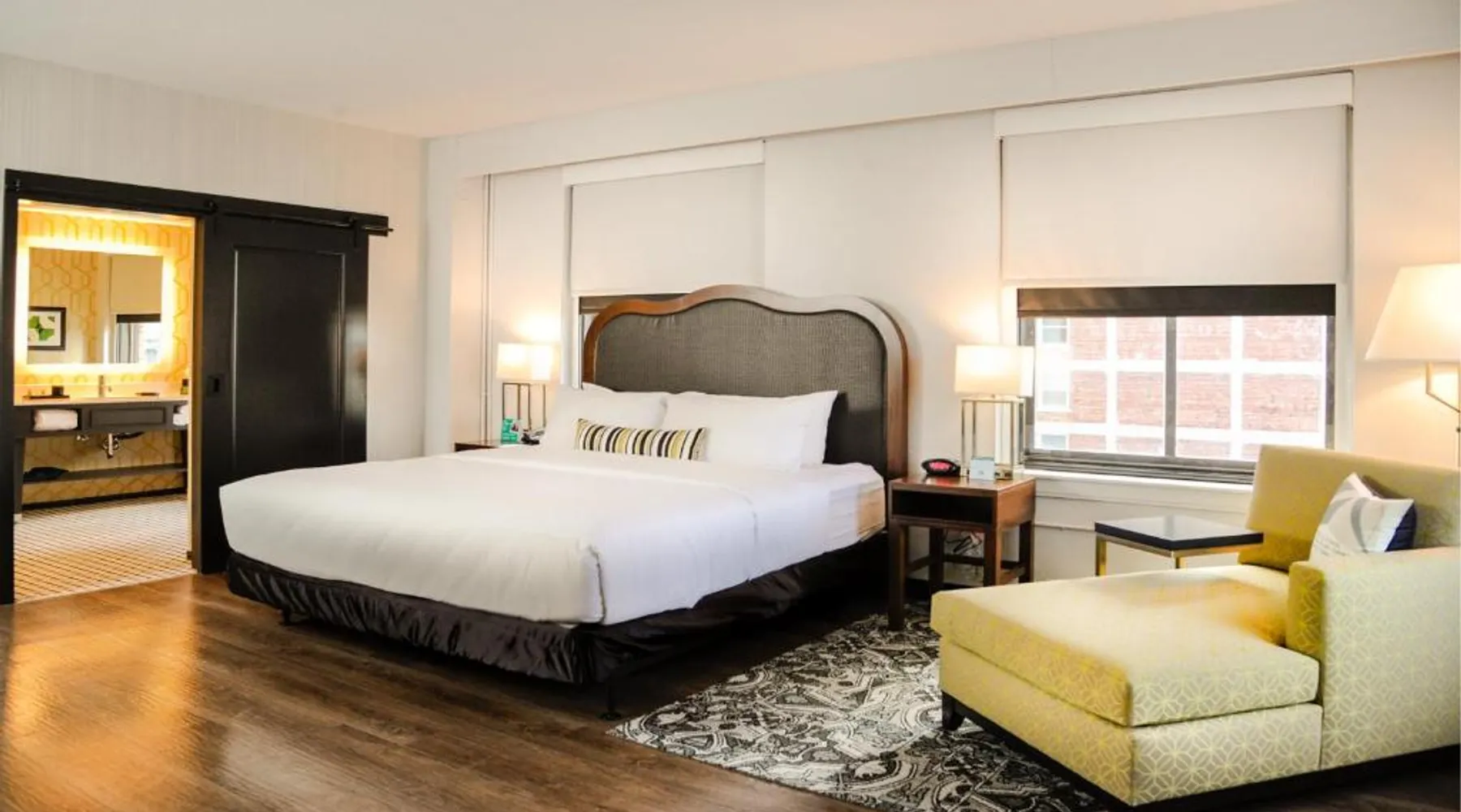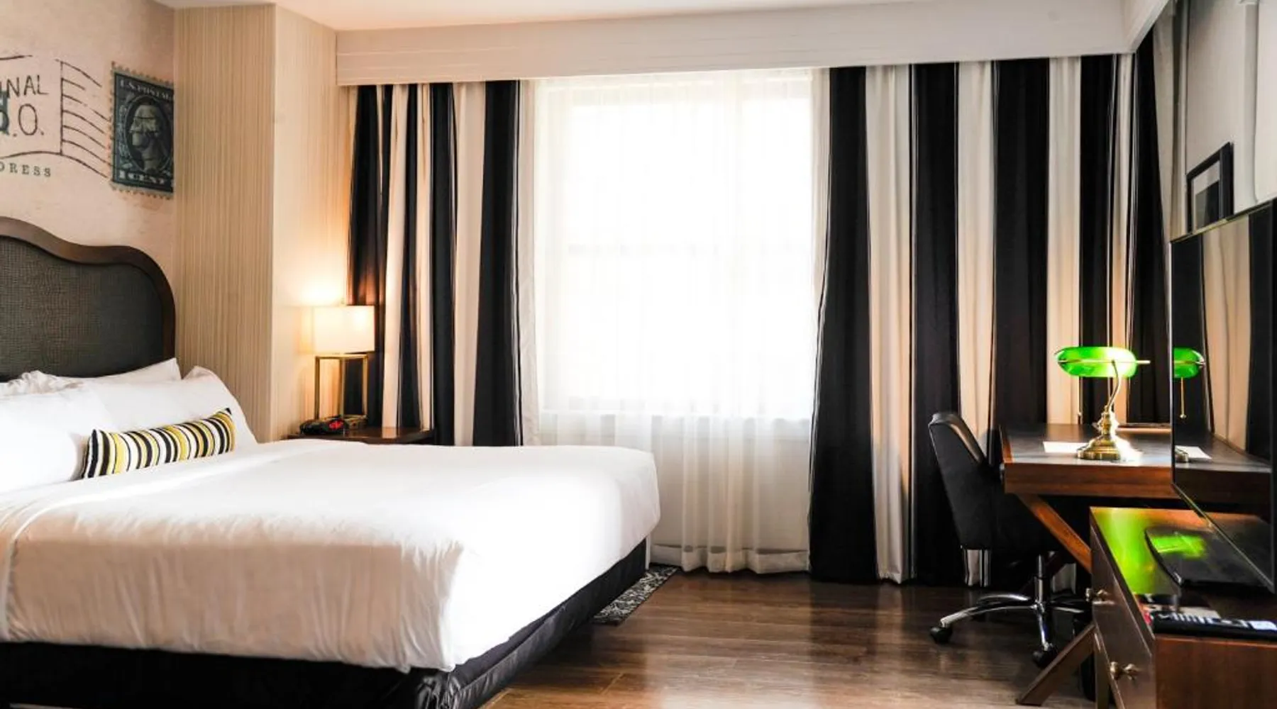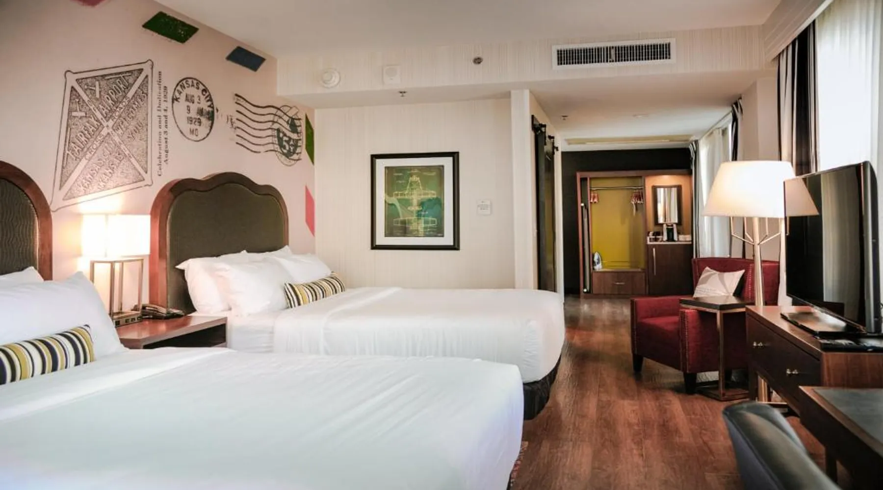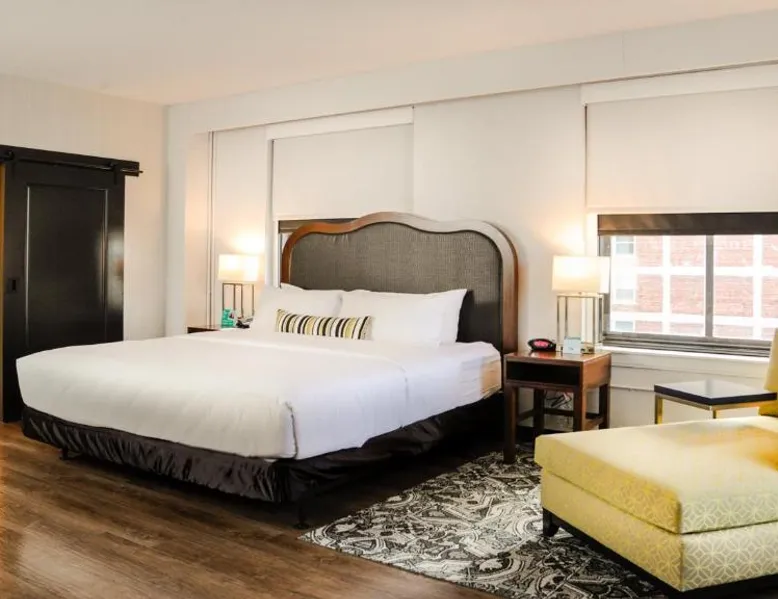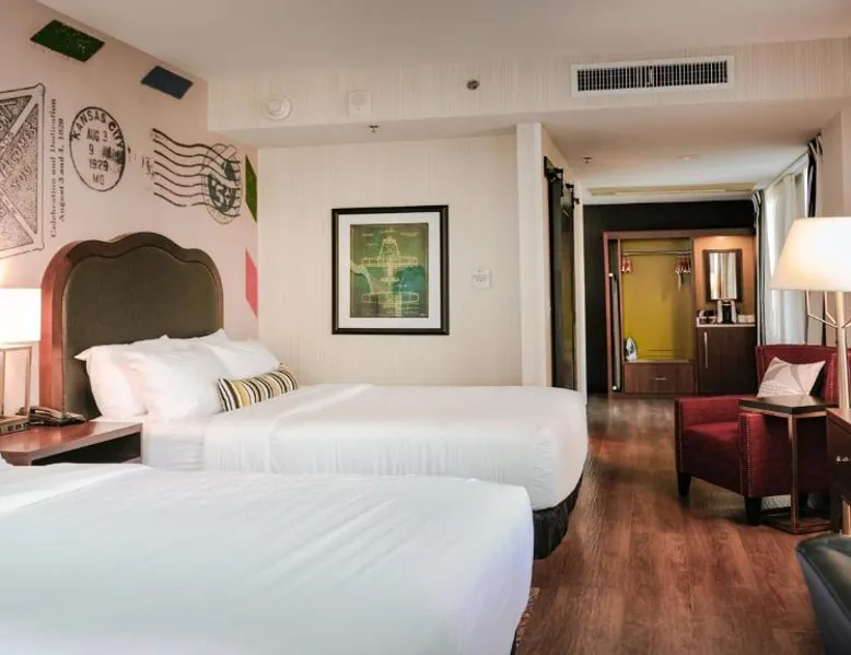 Comfortable Accommodations: Hotel Indigo - Kansas City Downtown by IHG in Kansas City offers comfortable rooms with air-conditioning, free WiFi, and modern amenities. Each room includes a work desk, soundproofing, and a seating area. Dining and Leisure: Guests can enjoy a fitness center, restaurant, and bar. The traditional restaurant serves American cuisine with vegetarian and gluten-free options. Additional facilities include a coffee shop, live music, and an ice-skating rink. Convenient Location: Located 16 mi from Kansas City International Airport, the hotel is a short walk from Kansas City Convention Center and Union Station. Nearby attractions include the National World War I Museum and Legoland Discovery Center. Guest Satisfaction: Highly rated for its attentive staff, convenient location, and room cleanliness. The spacious air-conditioned double room offers a TV with satellite channels, soundproof walls, a tea and coffee maker and a seating area. The unit has 1 bed.