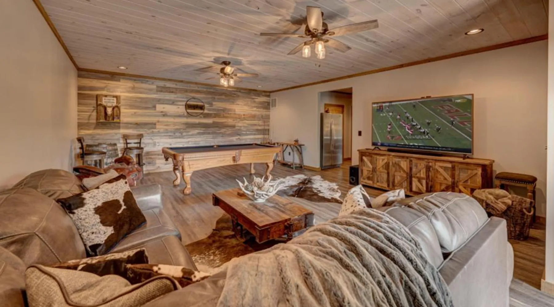 Comfortable Accommodations: Unplug in Ellijay offers a holiday home with four bedrooms and three bathrooms. The property features a spacious balcony with mountain views, a fully equipped kitchen, and a cozy fireplace. Modern Amenities: Guests enjoy free WiFi, air-conditioning, and a washing machine. The home includes a games room, barbecue area, and a dining table. Additional amenities include a spa bath, dishwasher, and a 24-hour front desk. Convenient Location: Located 63 mi from Chattanooga Metropolitan Airport, Unplug provides free on-site parking. The surrounding area offers scenic mountain views and various activities such as hiking and fishing. This holiday home's standout features are the spa bath and fireplace. Featuring a private entrance, this air-conditioned holiday home consists of a kitchen, 4 bedrooms and 3 bathrooms with a shower and a hairdryer. Guests will find a stovetop, a refrigerator, a dishwasher and kitchenware in the well-fitted kitchen. The holiday home also provides guests with a barbecue. Boasting a balcony with mountain views, this holiday home also provides a washing machine and a flat-screen TV. The unit offers 4 beds.