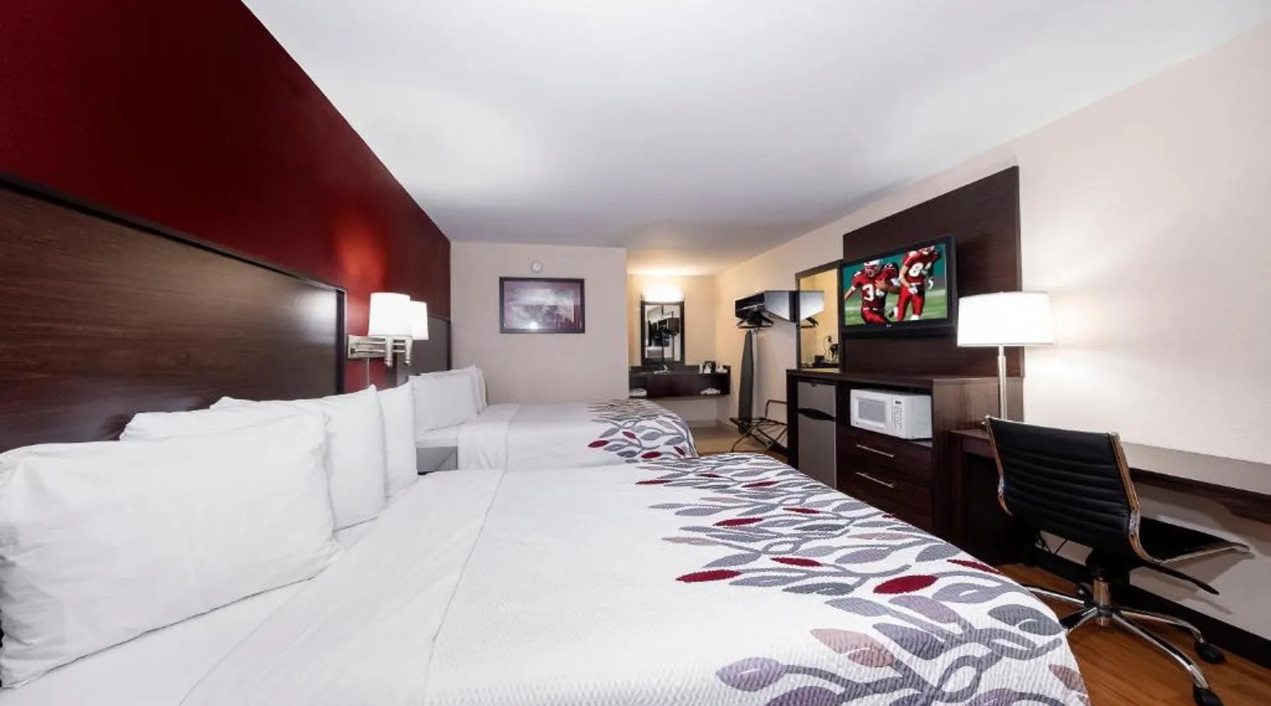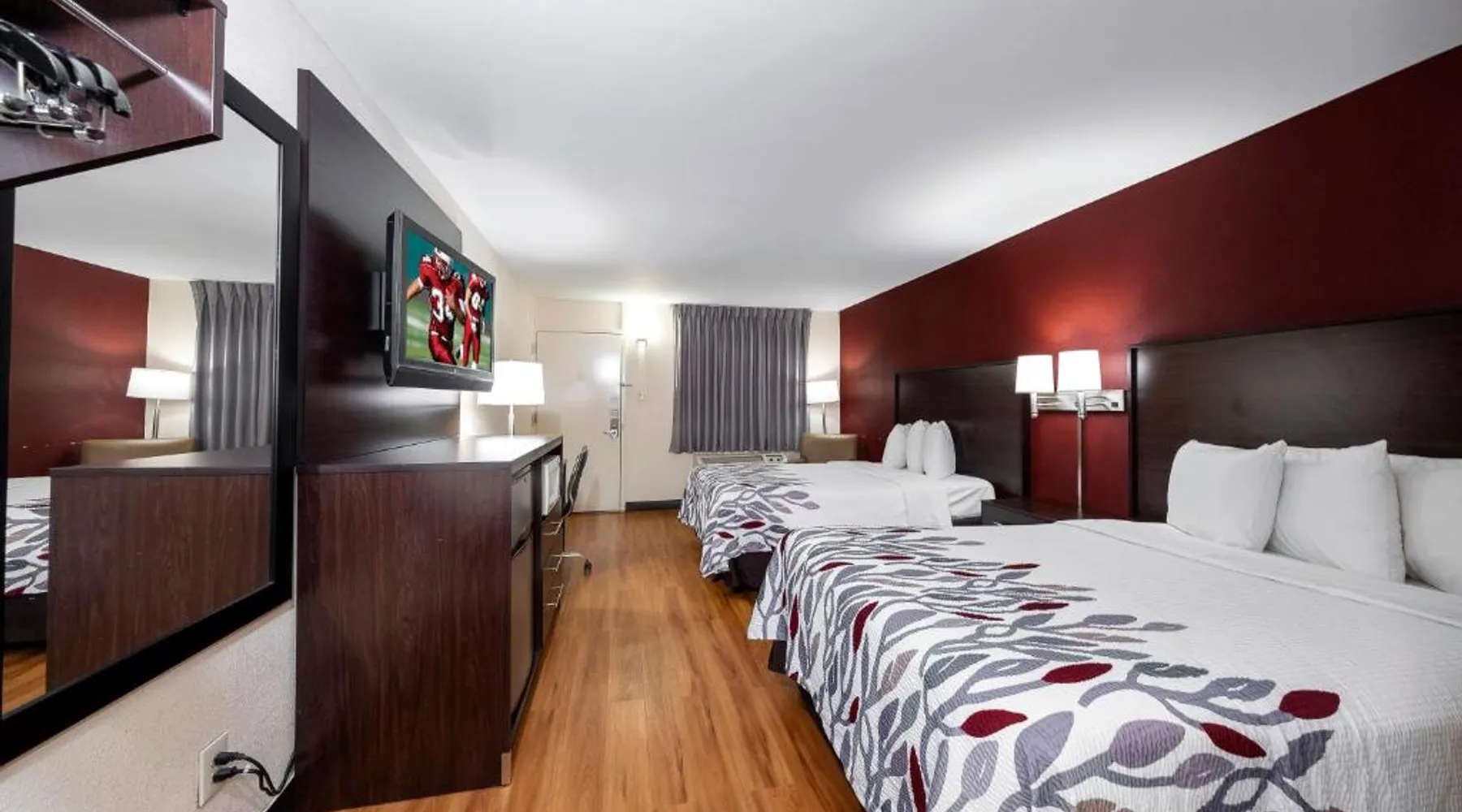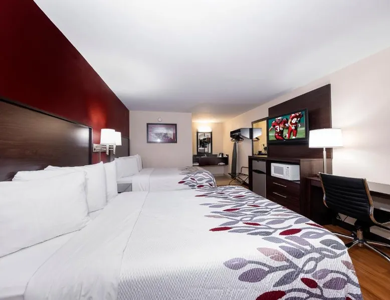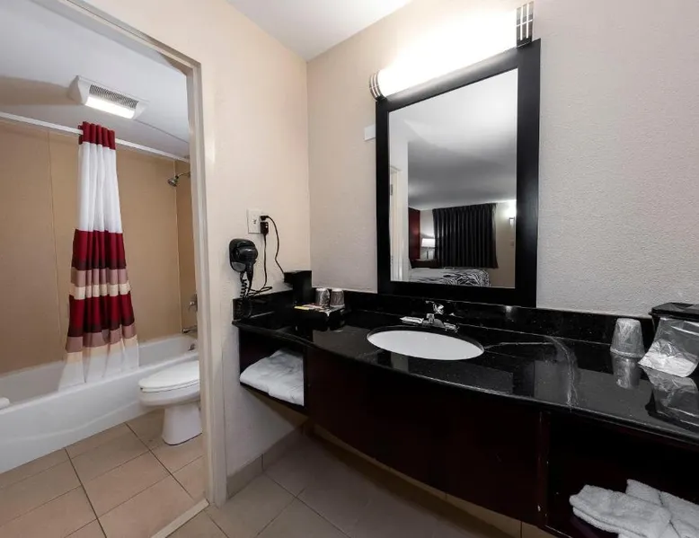Red Roof Inn Bordentown - McGuire AFB is located in Bordentown. Free WiFi access is available. Each room here will provide you with air conditioning. Complete with a microwave, the dining area also has a refrigerator. Featuring a bath or shower, private bathrooms also come with a hairdryer. At Red Roof Inn Bordentown - McGuire AFB you will find a 24-hour front desk. Other facilities offered at the property are laundry facilities. An array of activities can be enjoyed on site or in the surroundings, including golfing. The property offers free parking. This hotel offers a conference room that can seat up to 60 guests. Newark Liberty International Airport is 48 mi away. This double room's standout feature is the pool with a view. Offering free toiletries, this double room includes a private bathroom with a bath, a shower and a hairdryer. The spacious air-conditioned double room offers a flat-screen TV with cable channels, a private entrance, a tea and coffee maker, parquet floors as well as pool views. The unit has 2 beds.